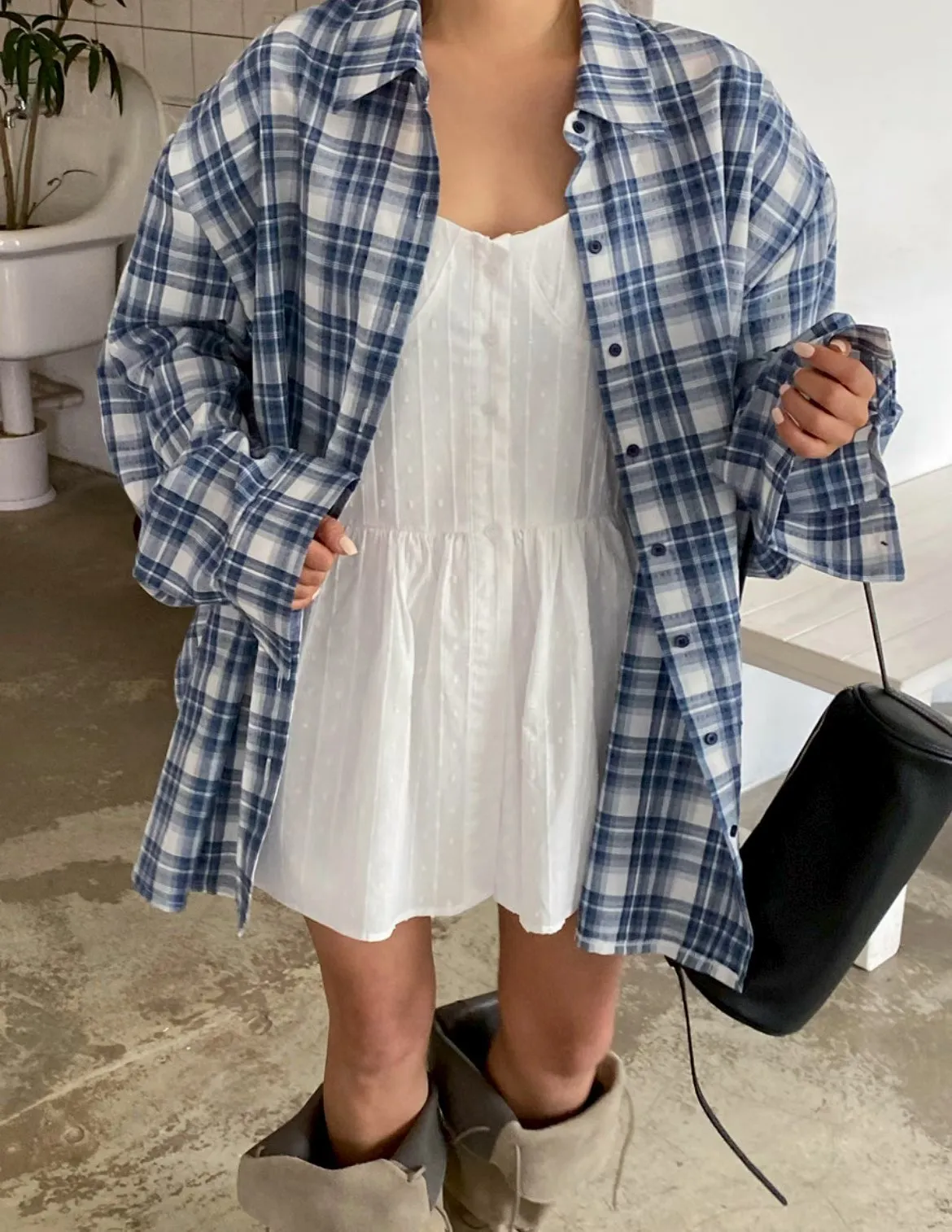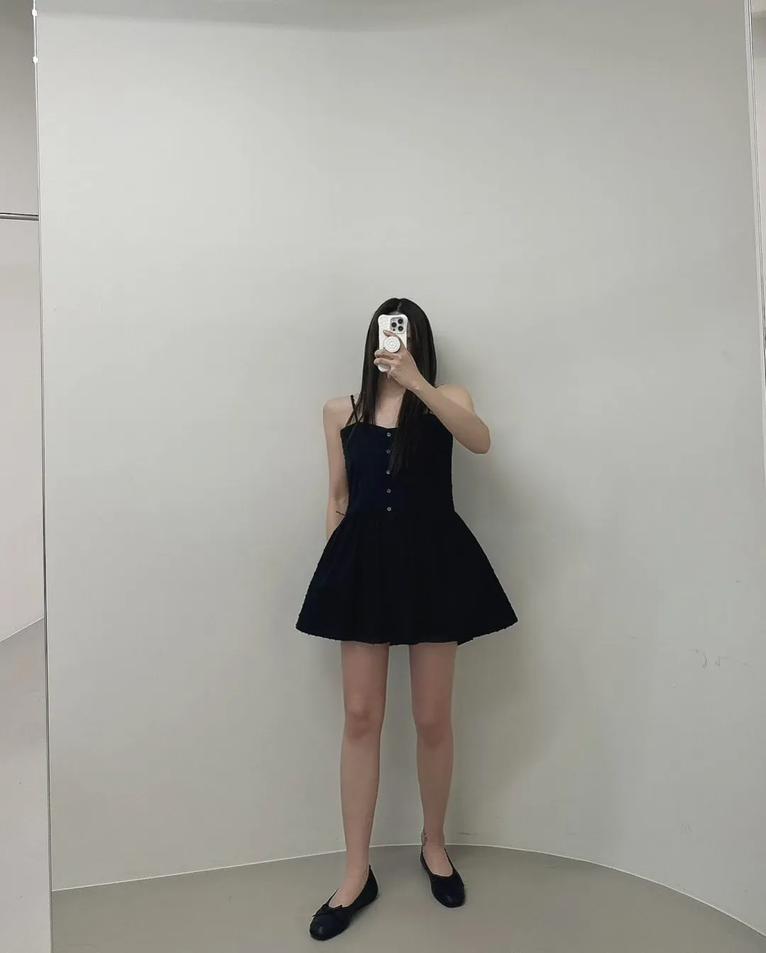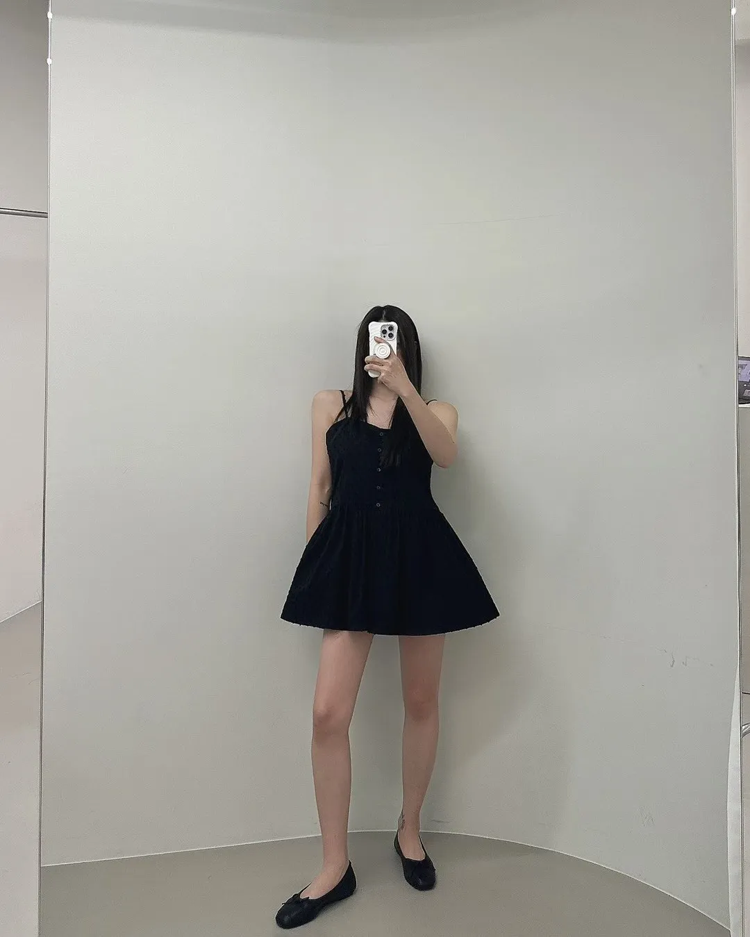 26EC15 點點布蕾絲連身背心短洋裝褲裙 2色