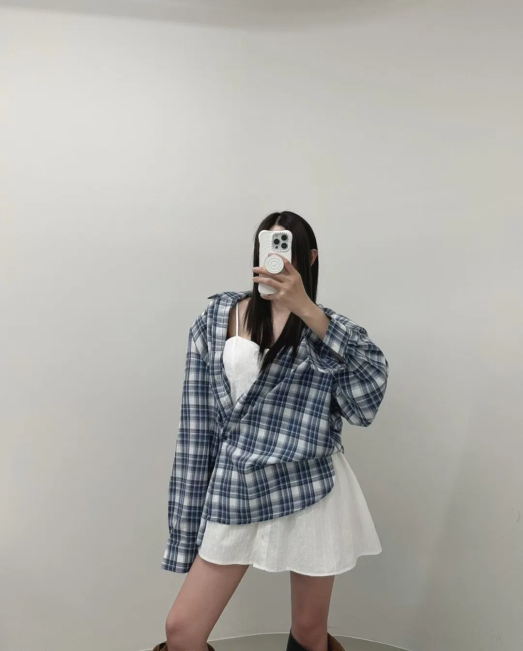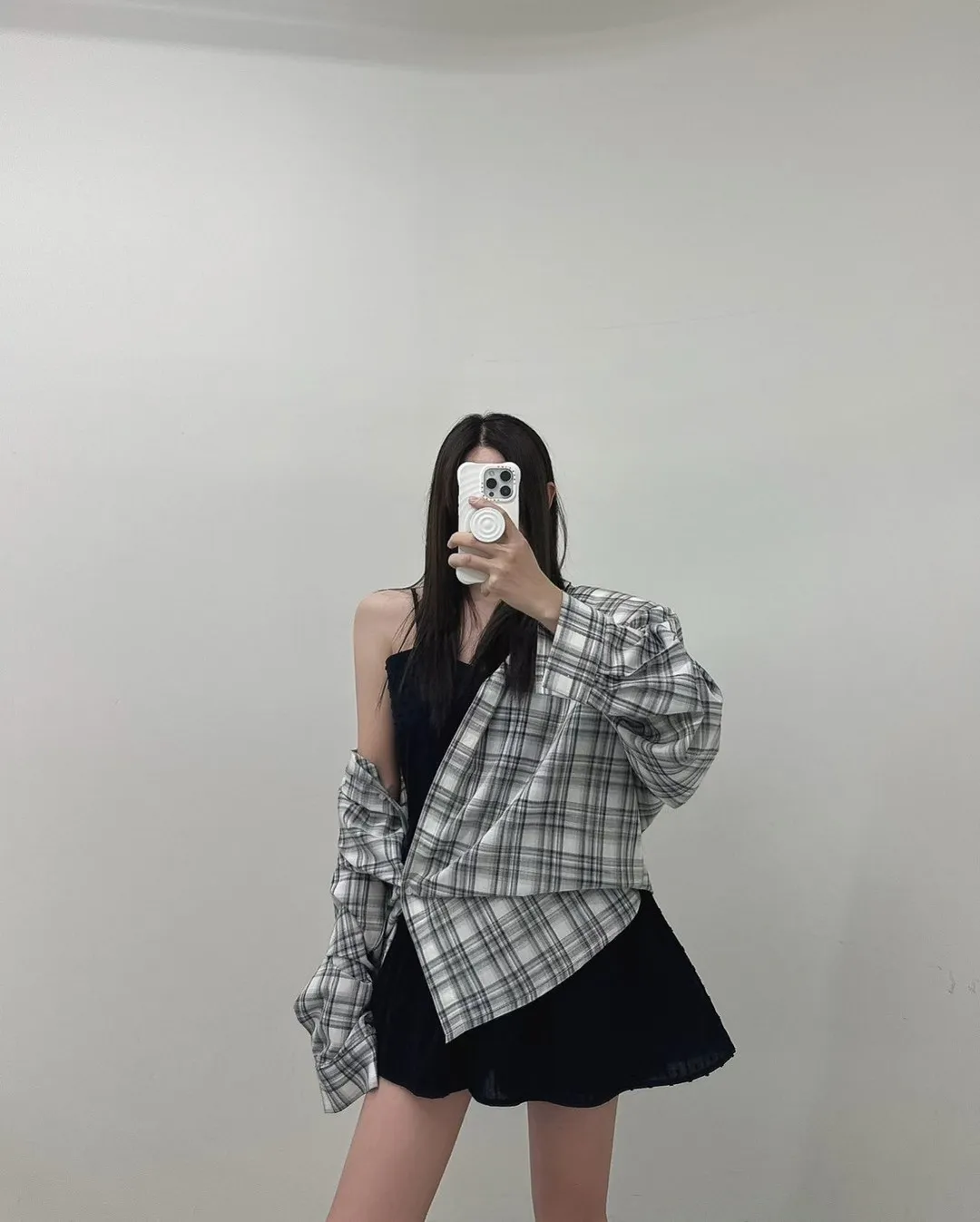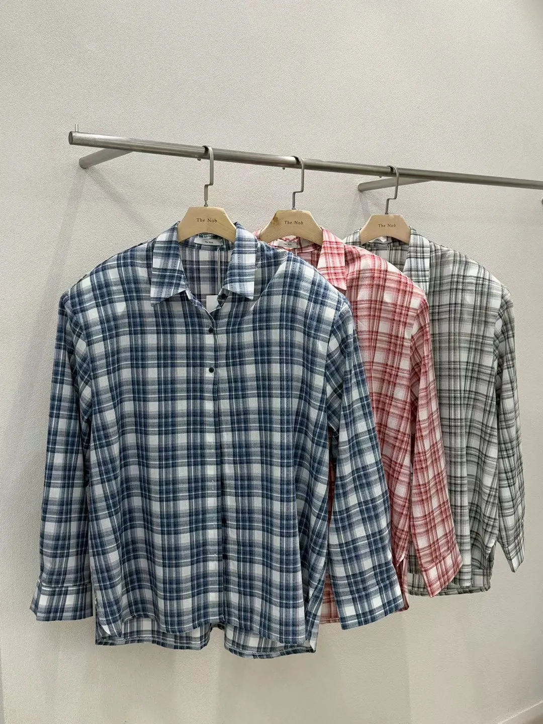 26EC16 凹凸滑料格紋防曬多扣襯衫 3色