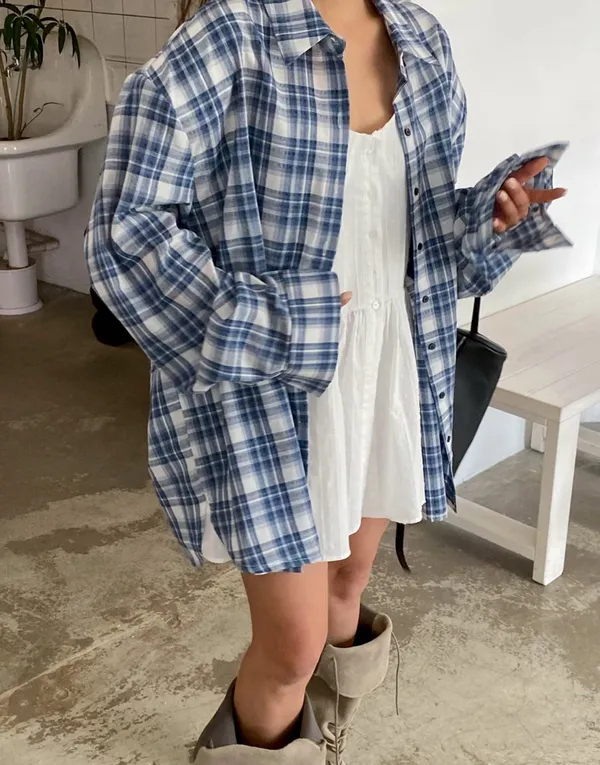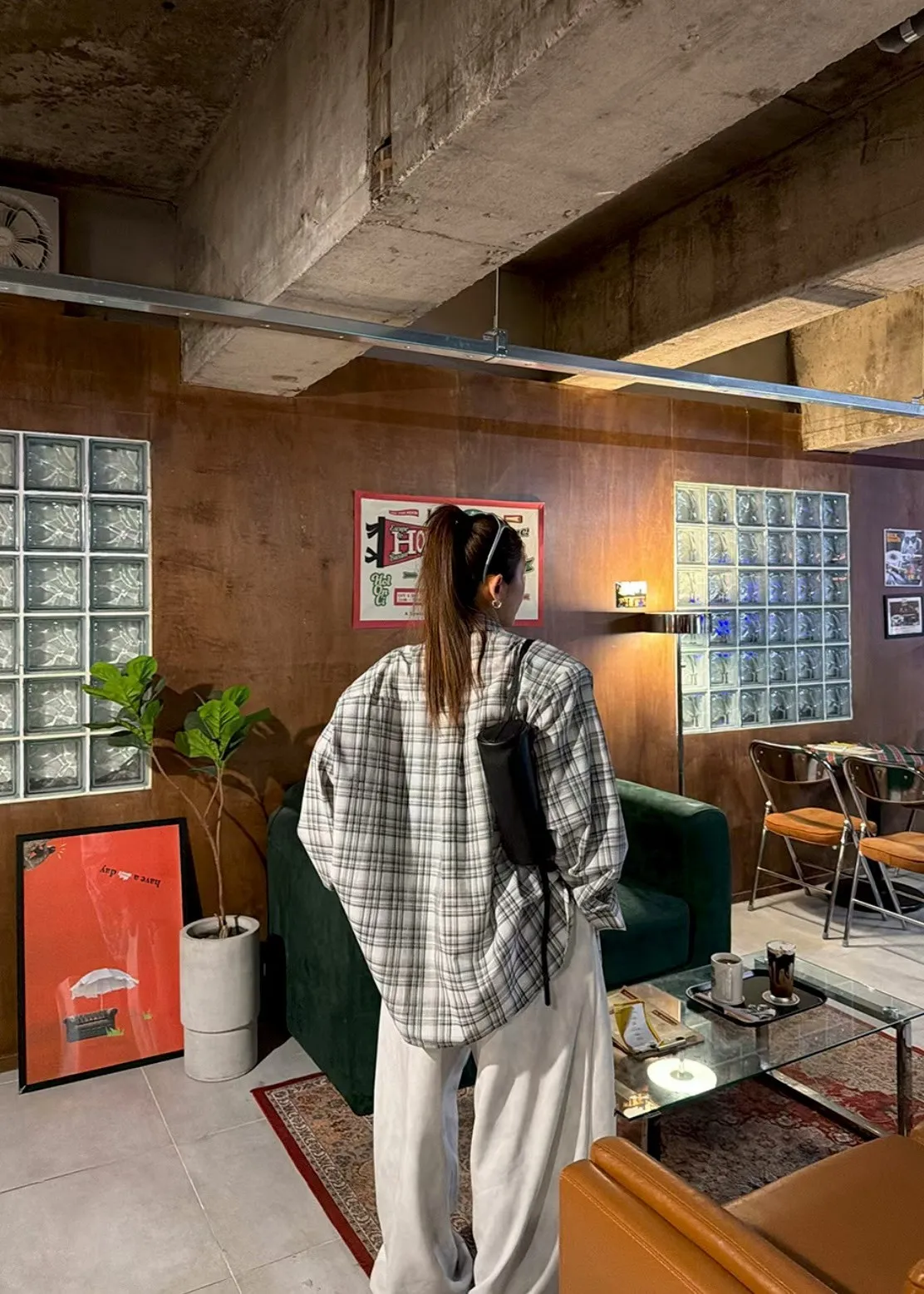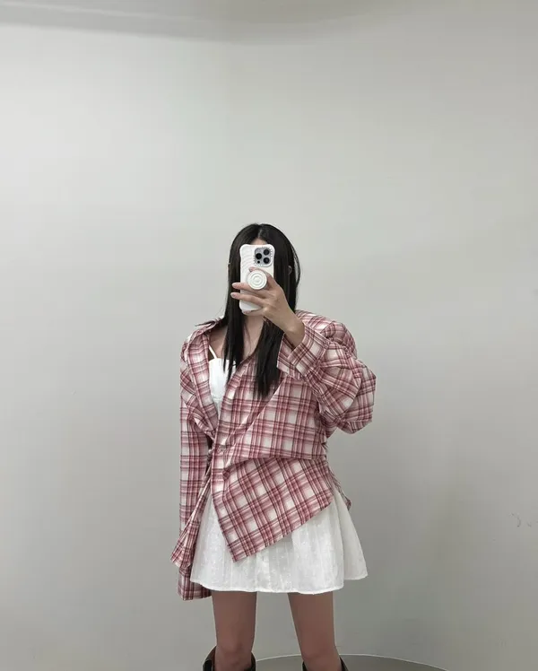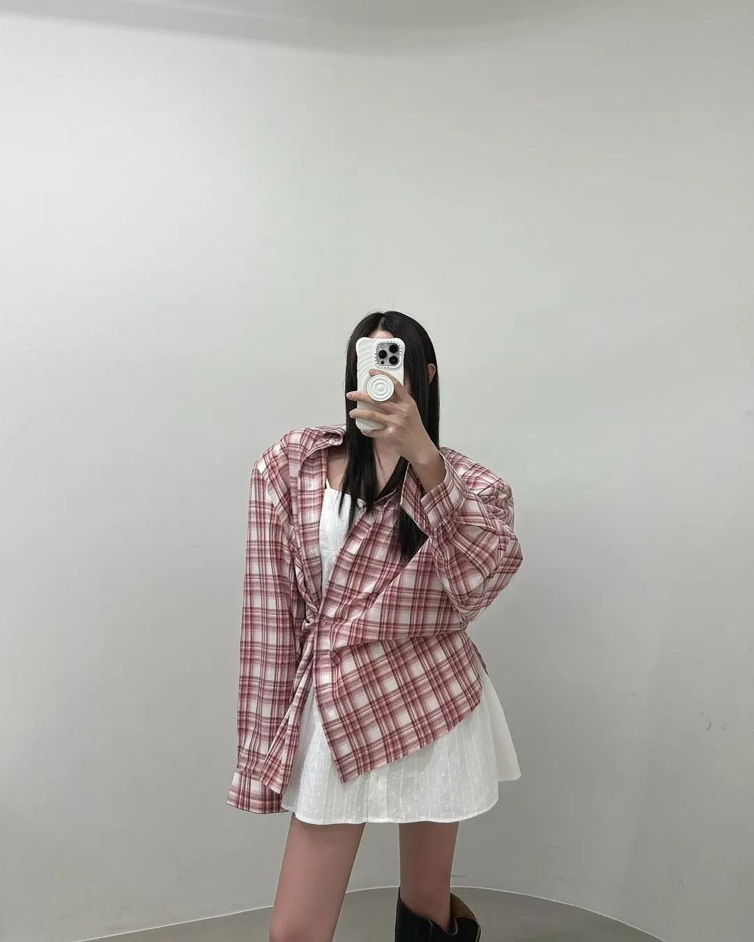 26EC16 凹凸滑料格紋防曬多扣襯衫 3色