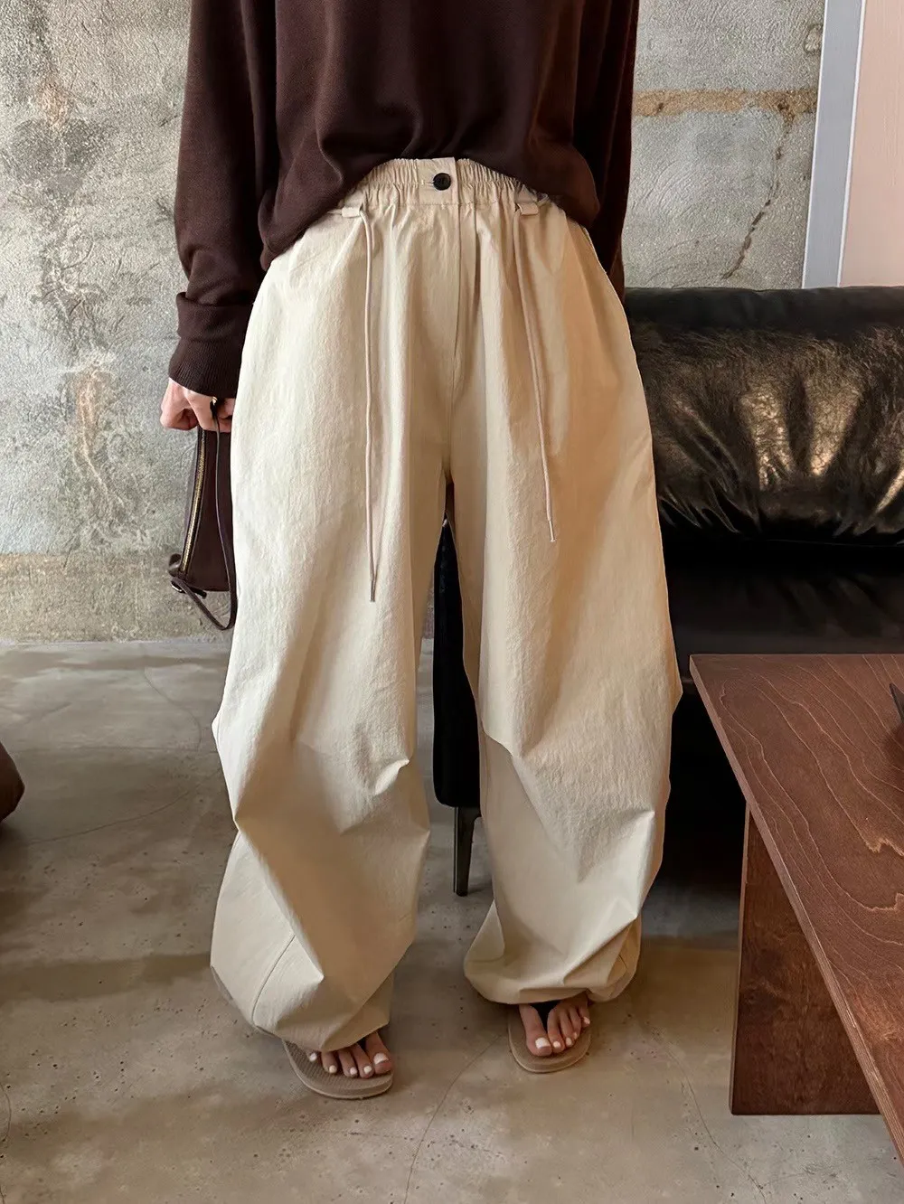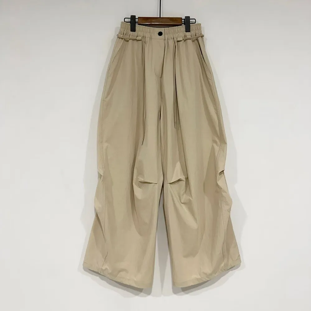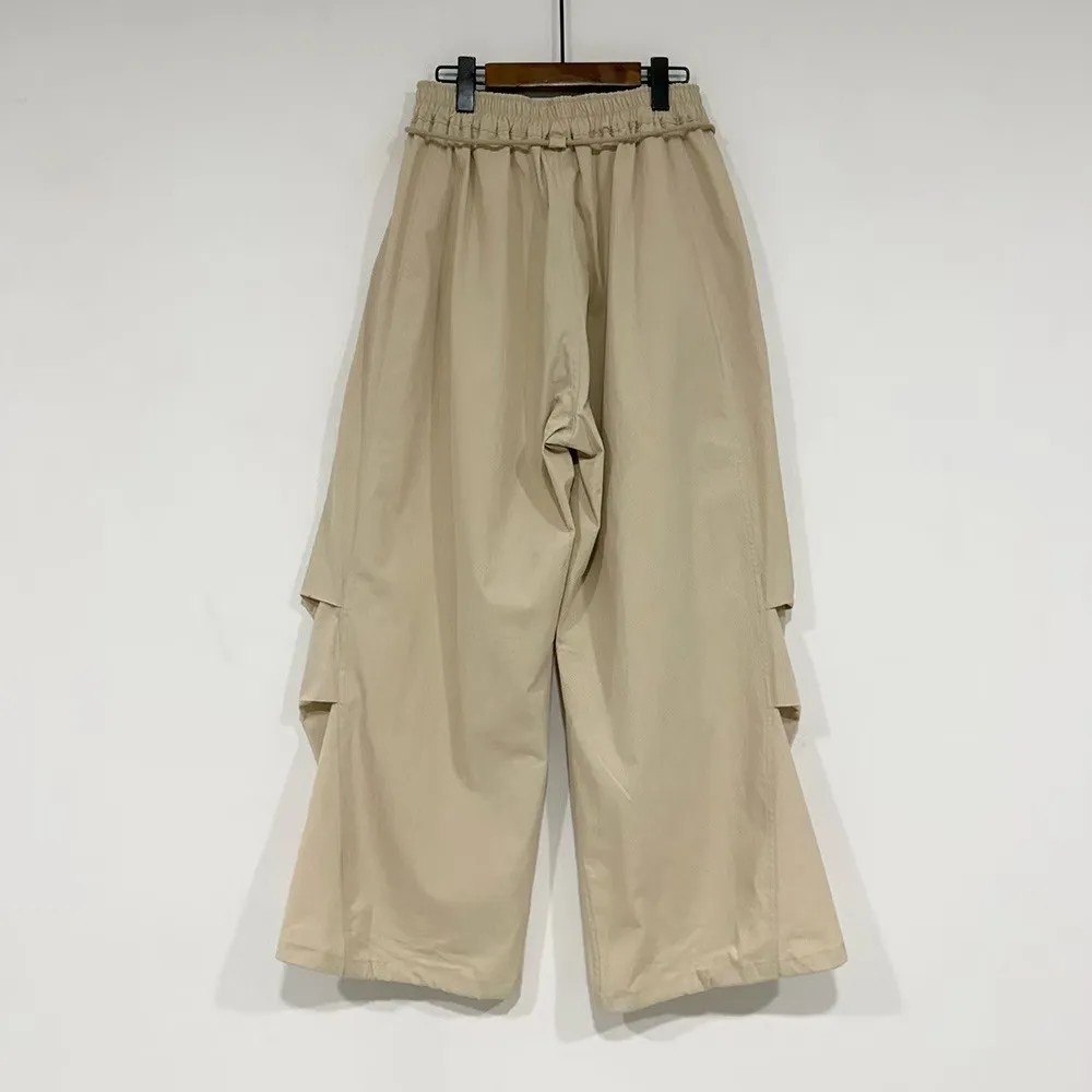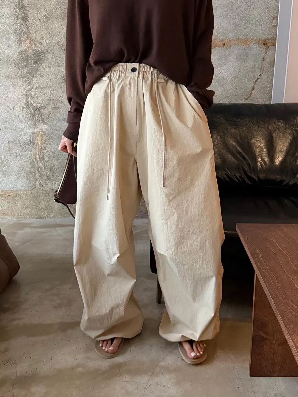 26EC23 腰繩卡其棉打褶兩穿縮腳長褲 3色