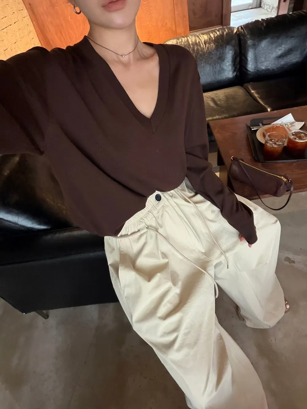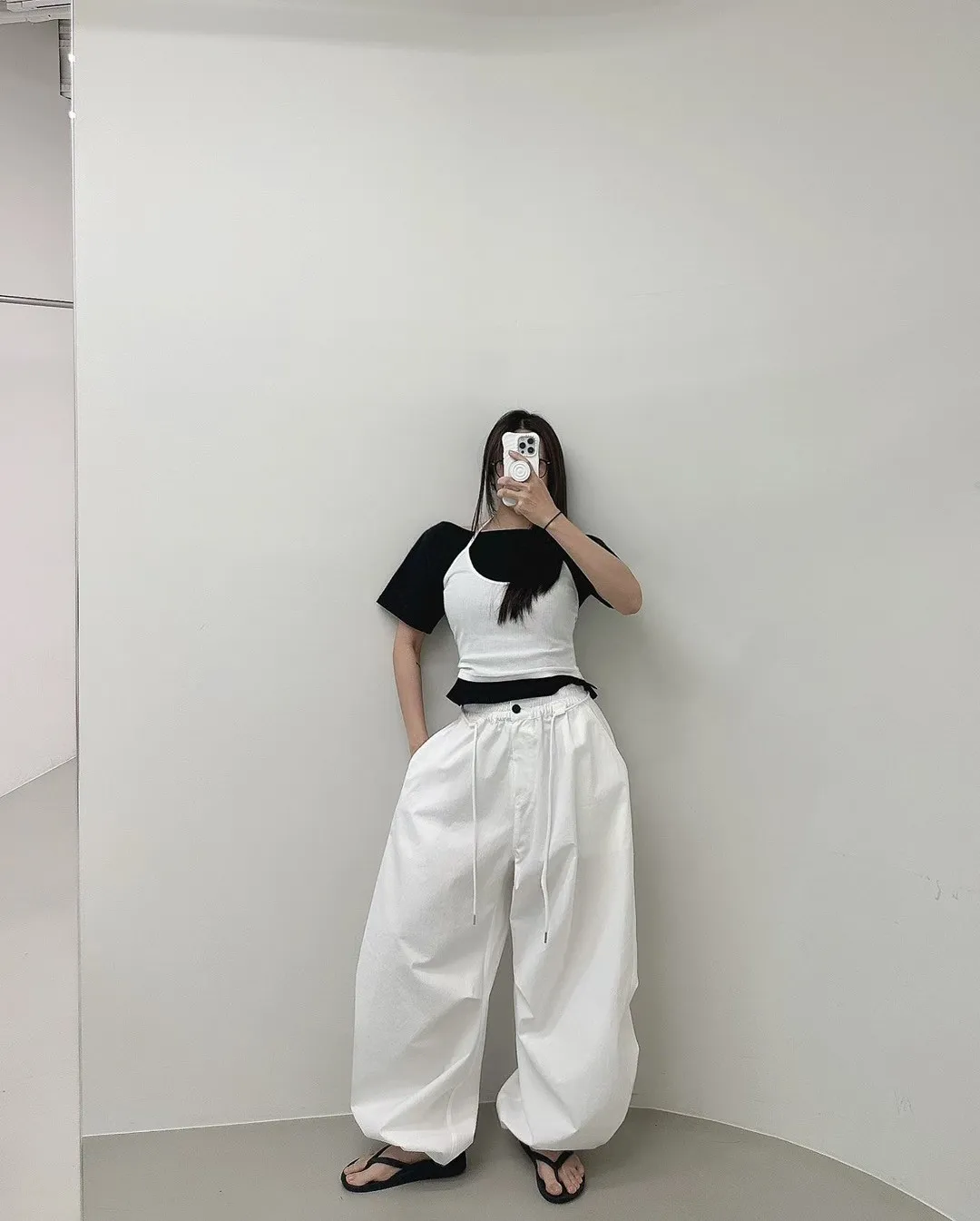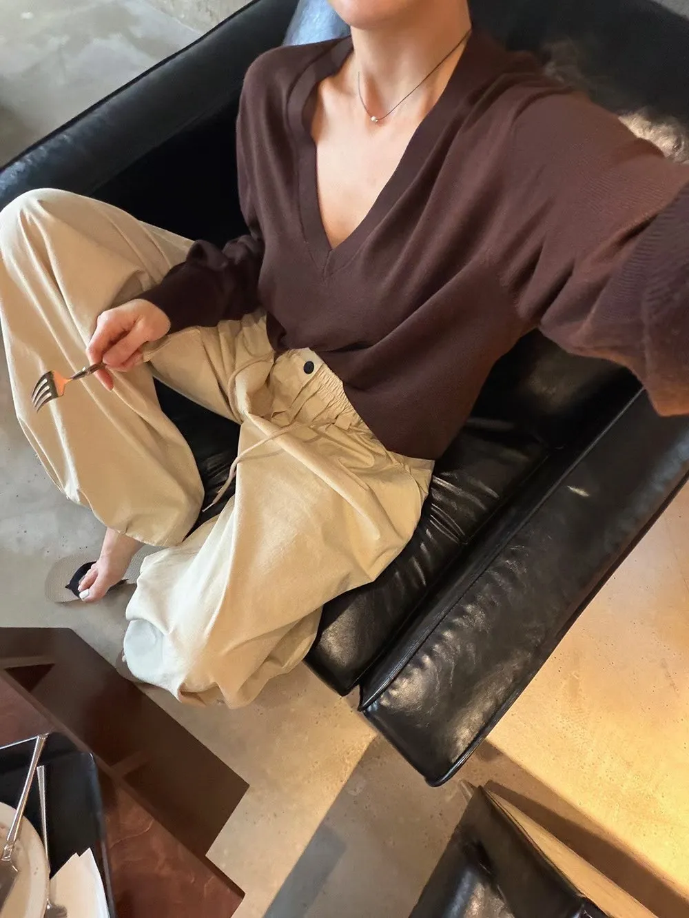 26EC23 腰繩卡其棉打褶兩穿縮腳長褲 3色