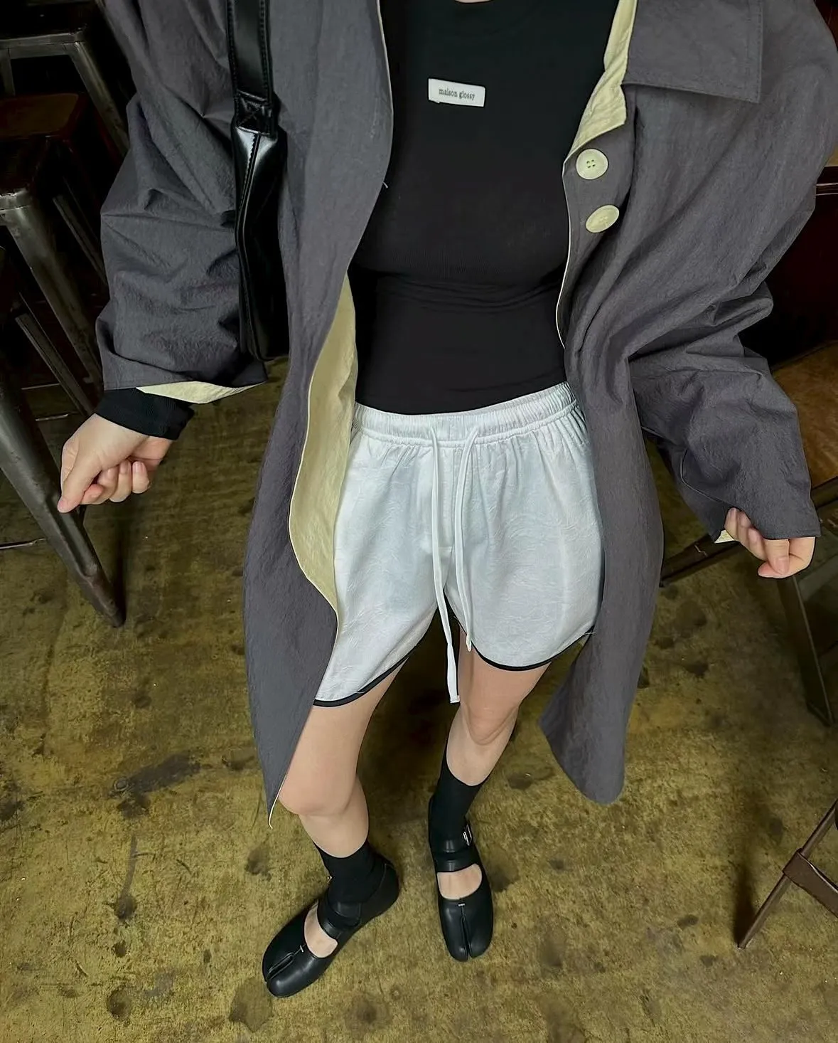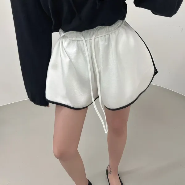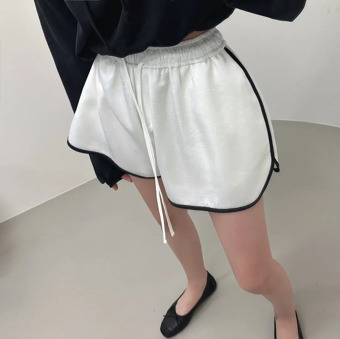 26EC25 滾邊緞面鬆緊短褲 2色