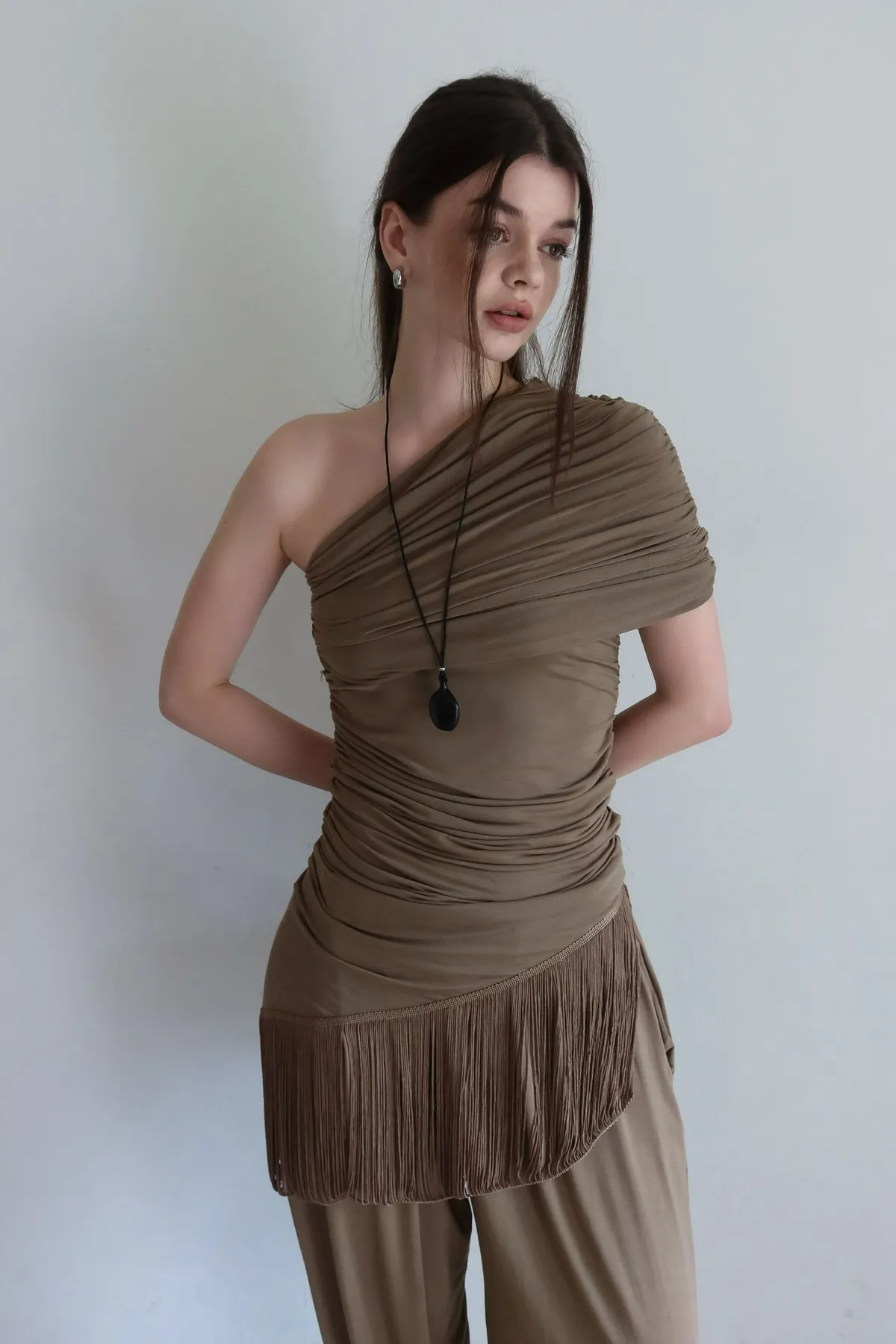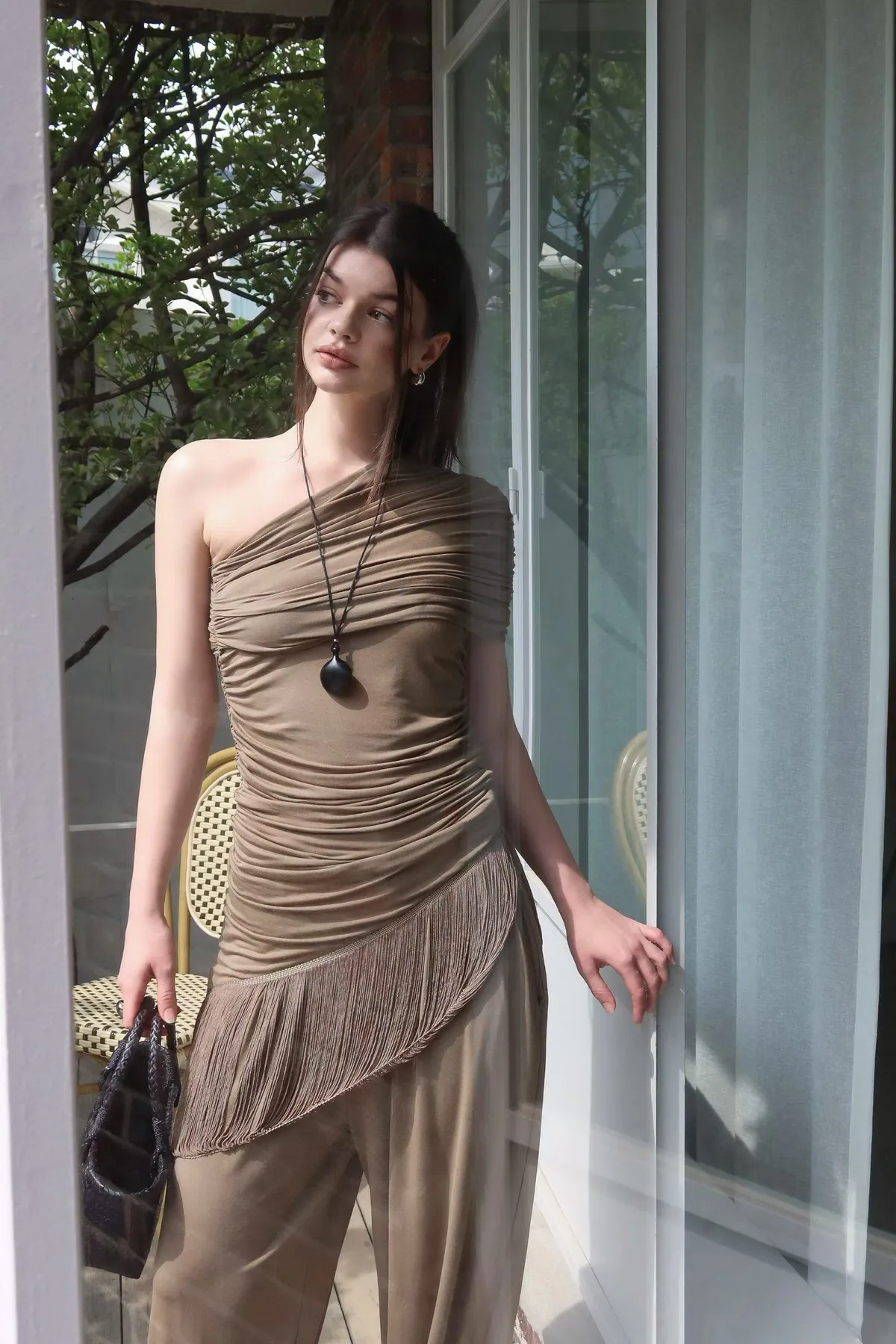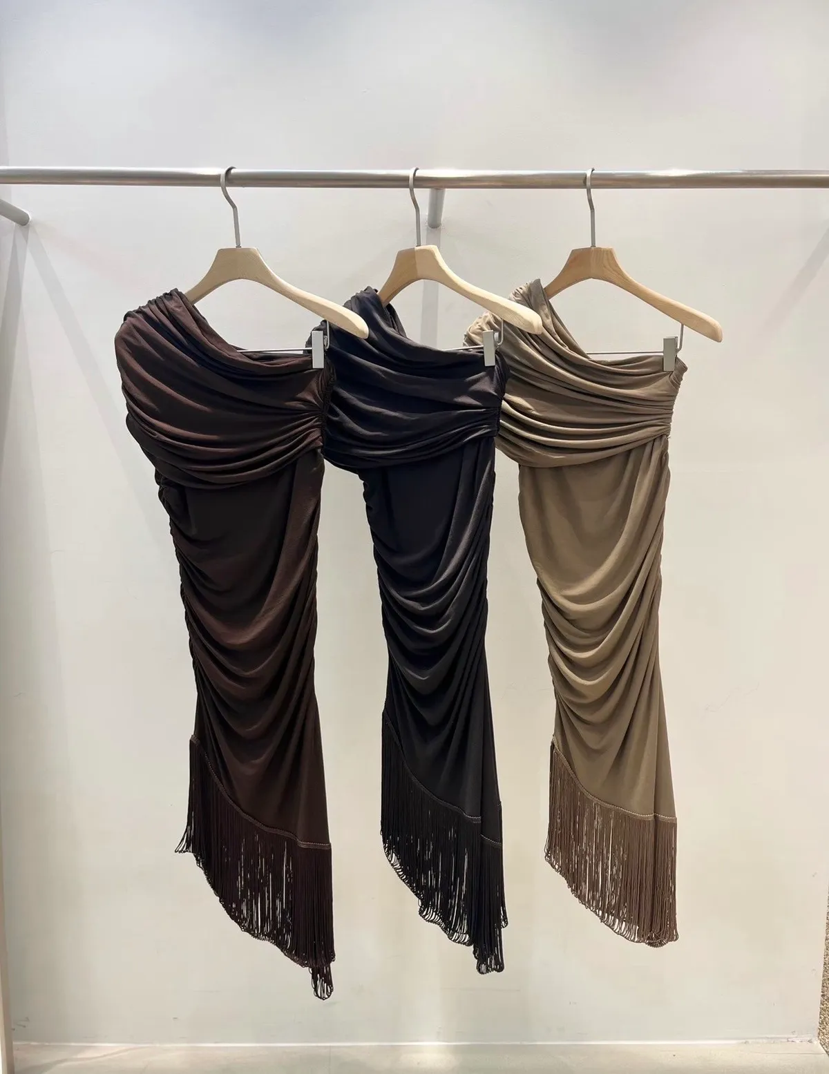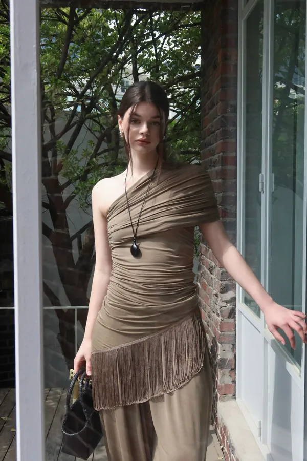 26ED13 堆堆斜領流蘇中長版上衣 3色