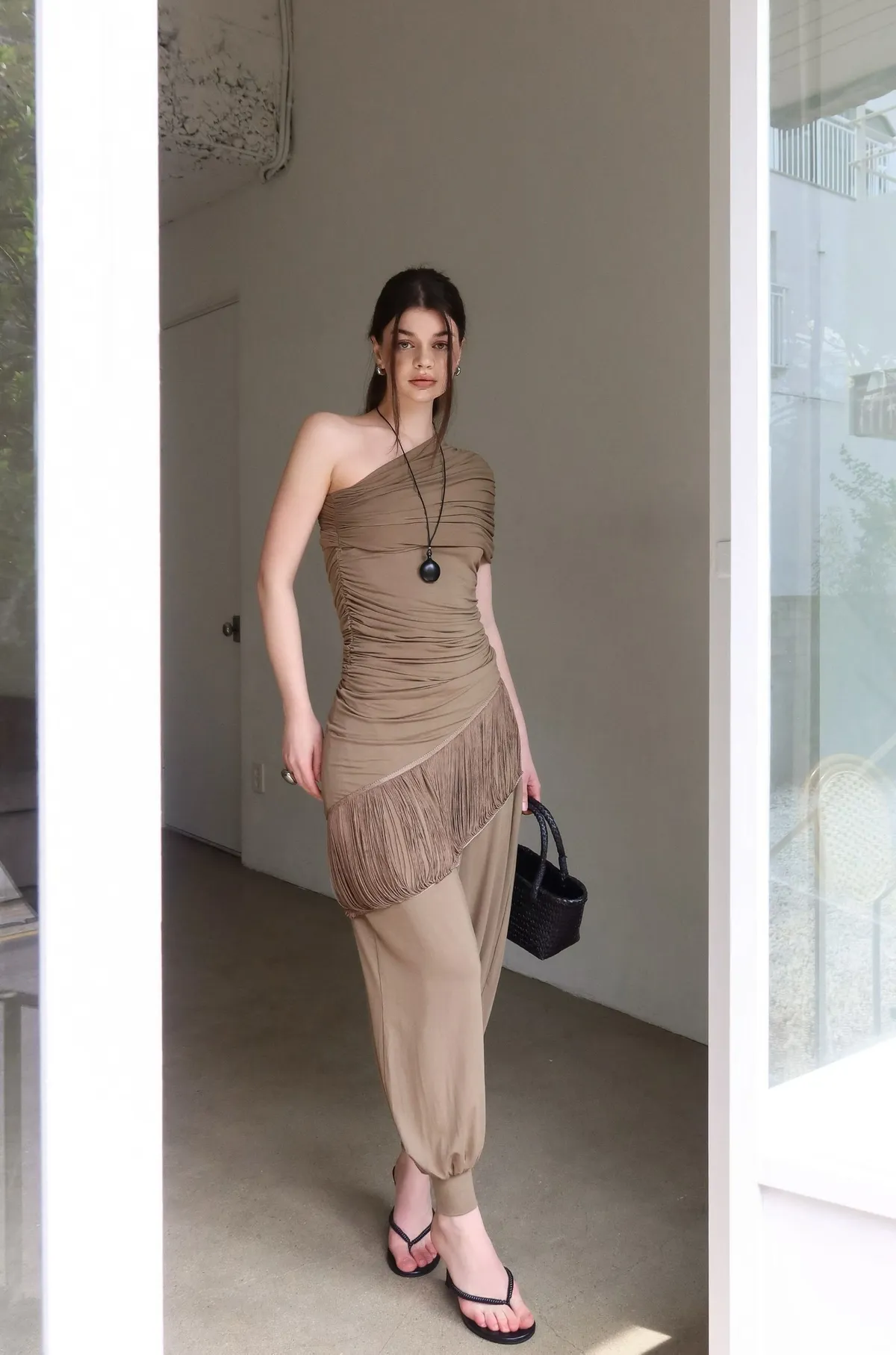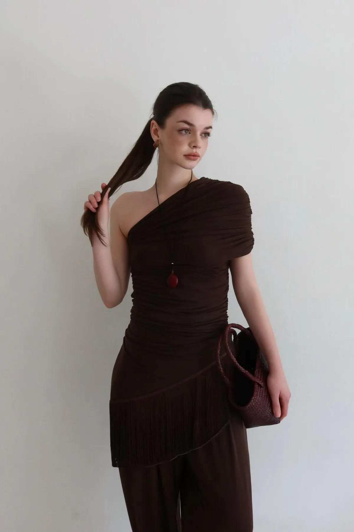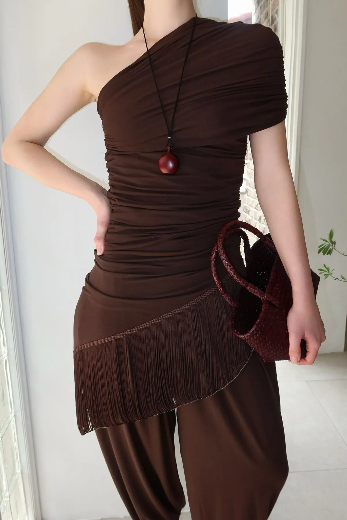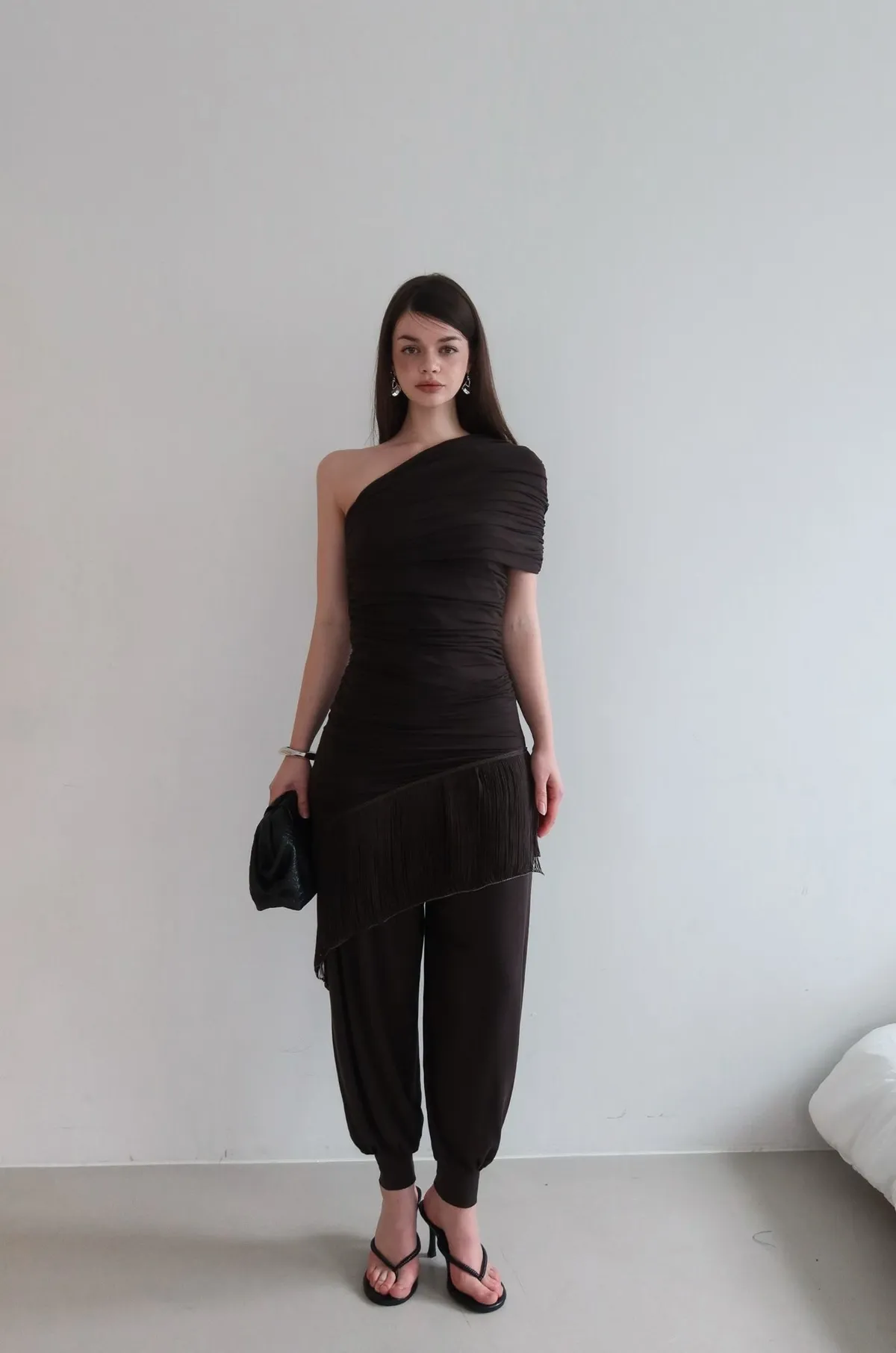 26ED13 堆堆斜領流蘇中長版上衣 3色
