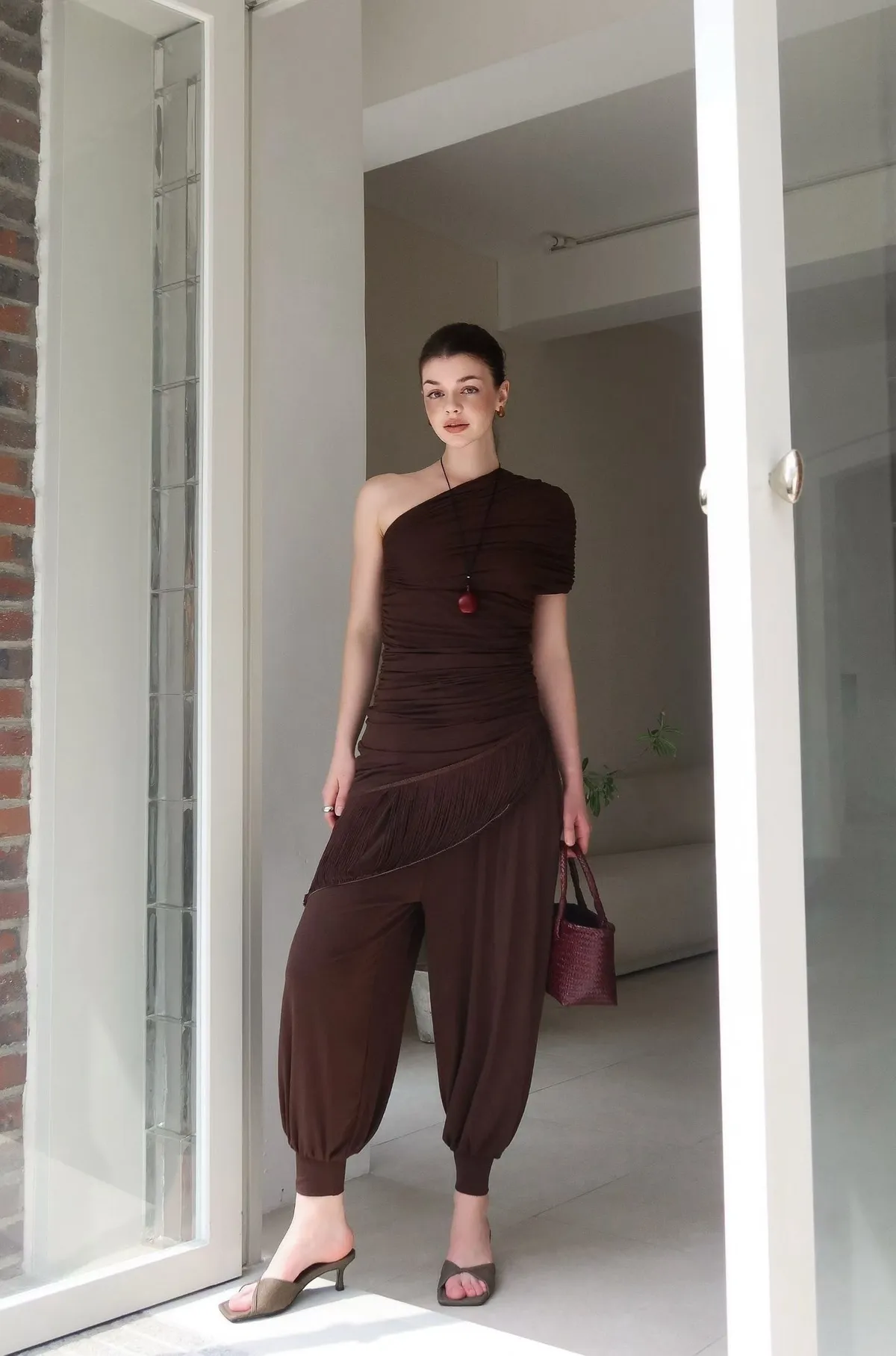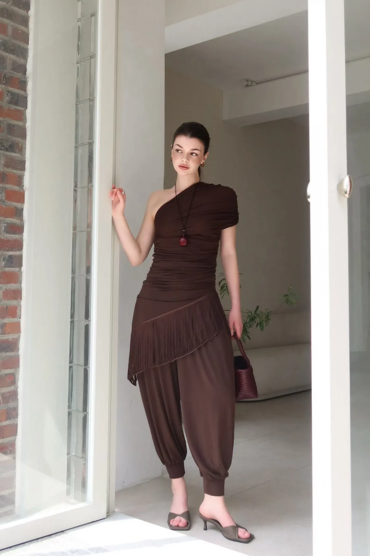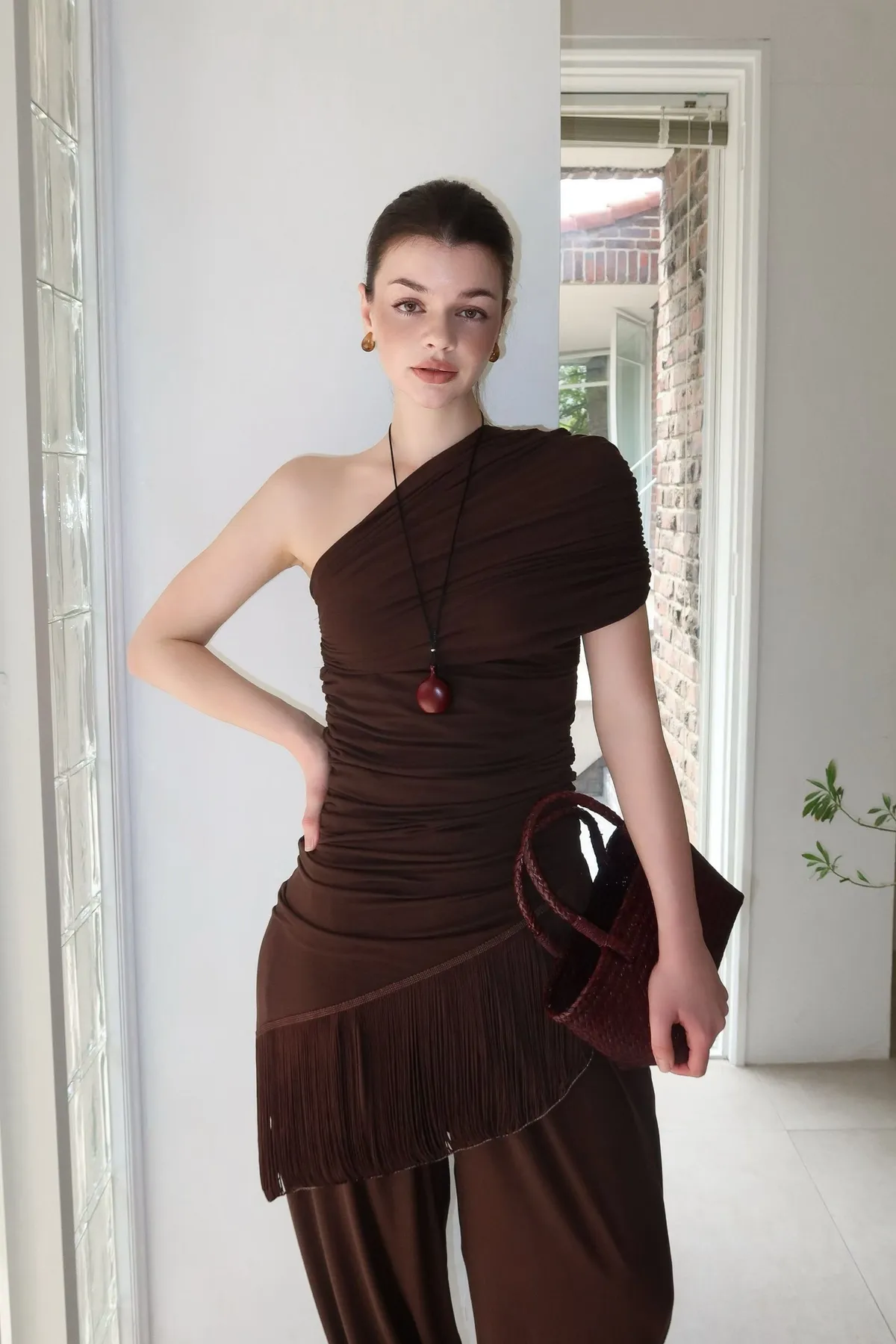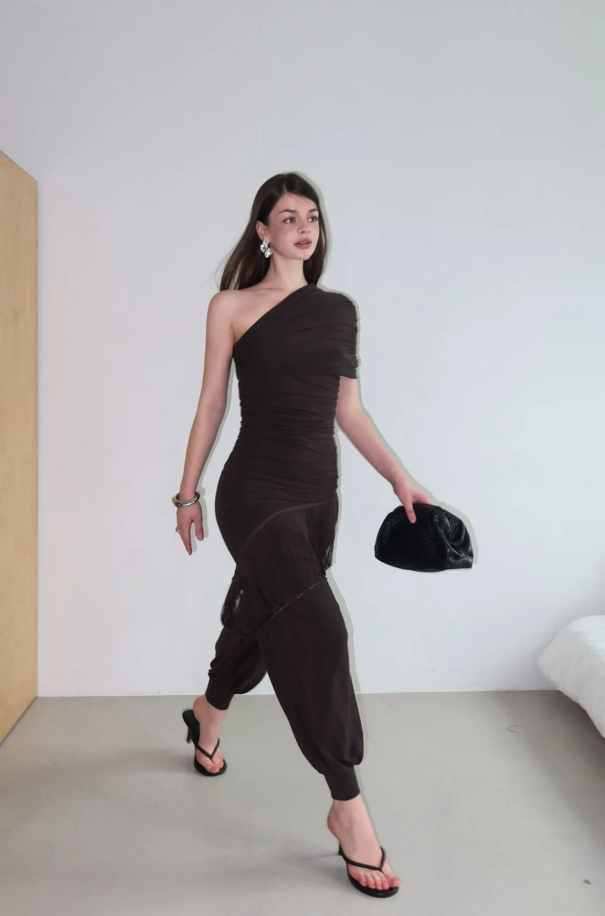 26ED13 堆堆斜領流蘇中長版上衣 3色