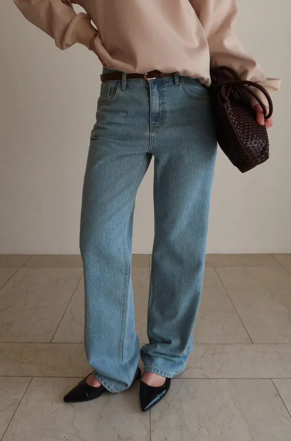 26ED16 小直筒淺洗色牛仔長褲 SM
