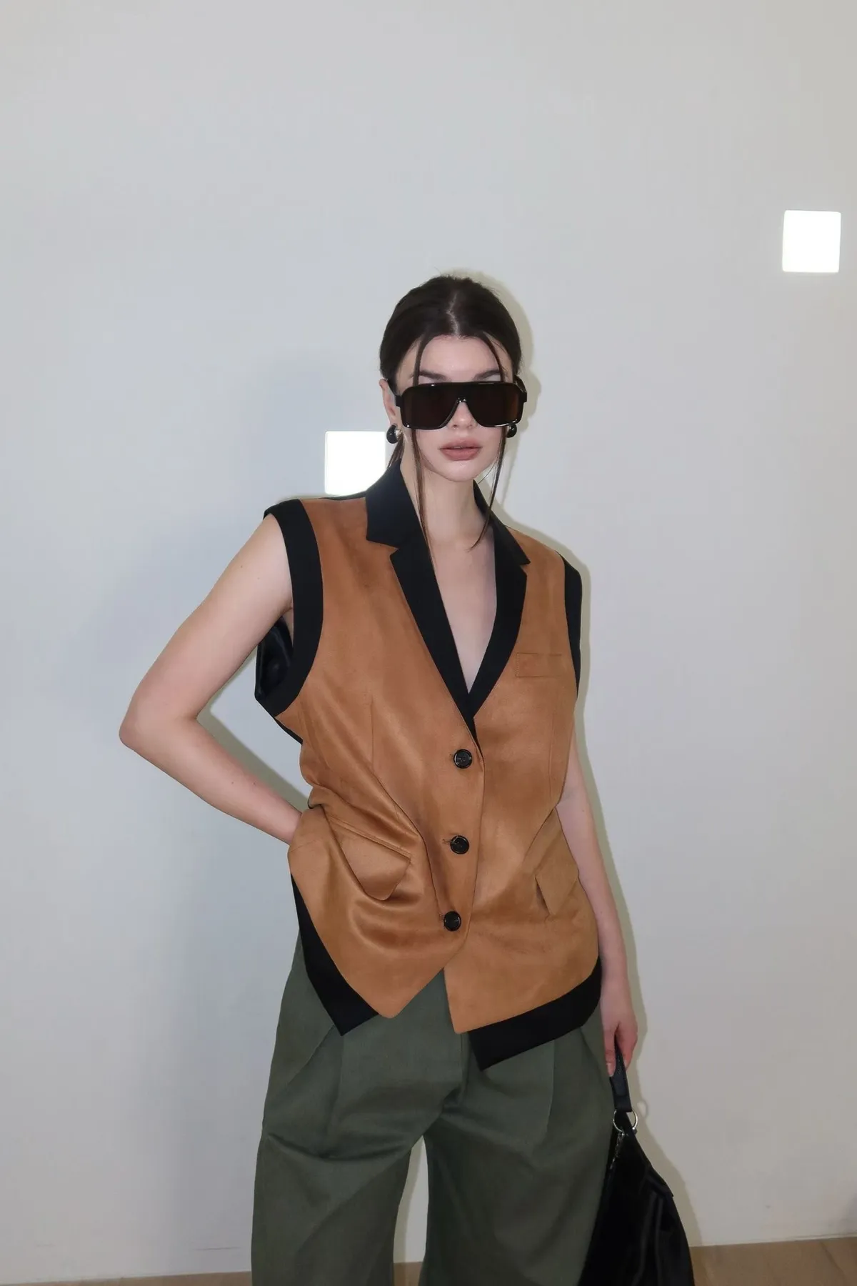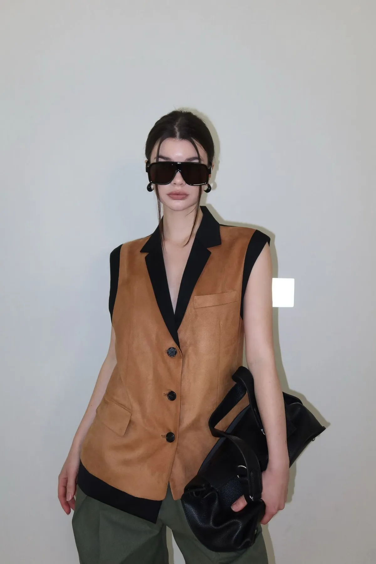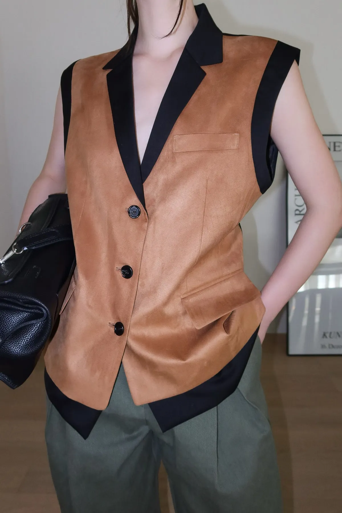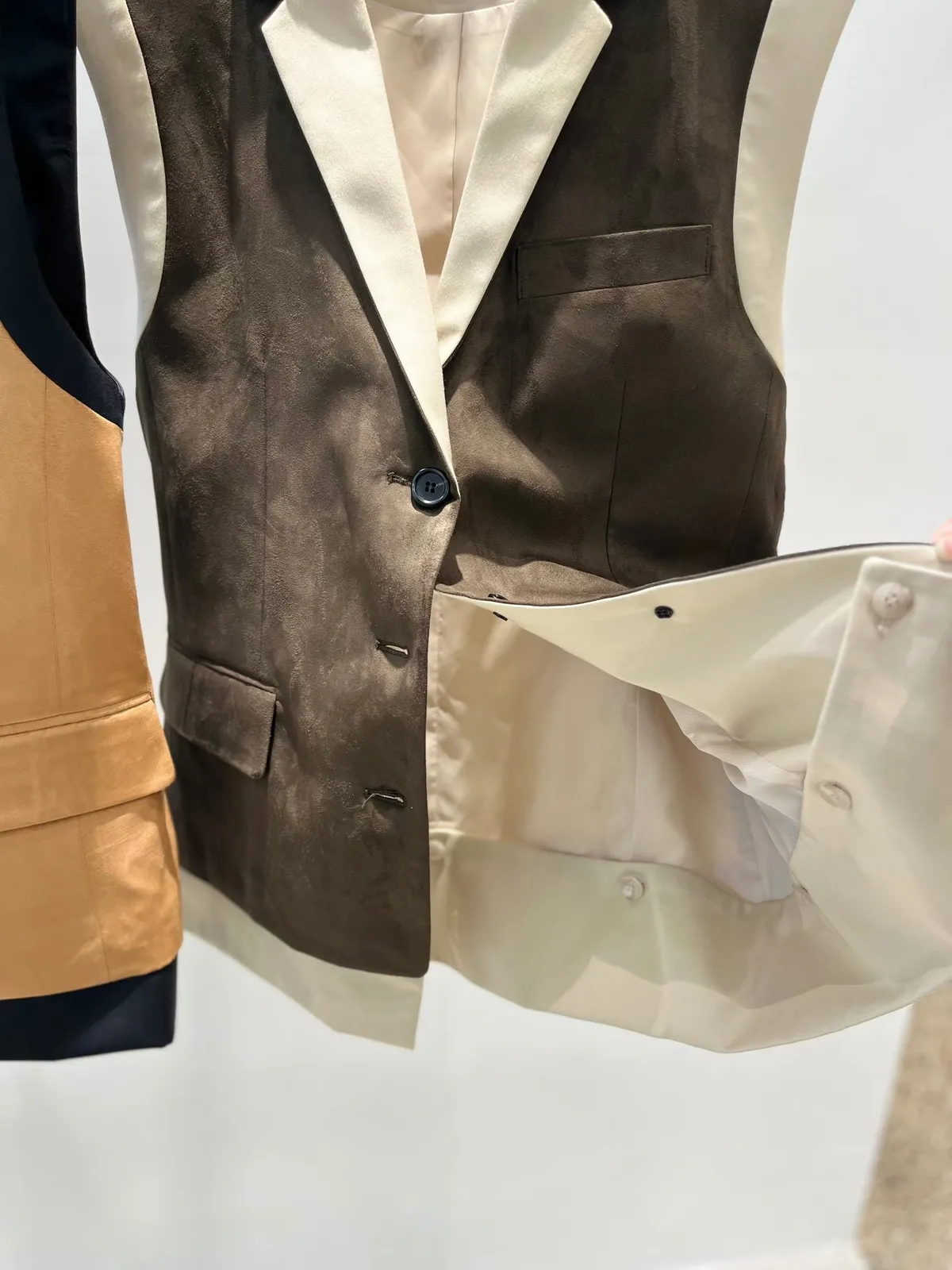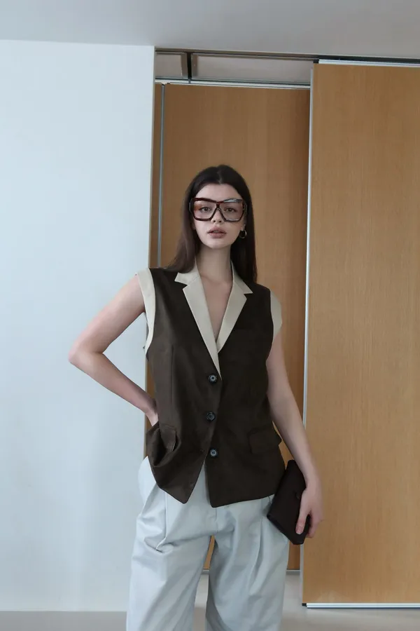 26ED17 後收腰可拆下擺麂皮絨西裝背心 2色