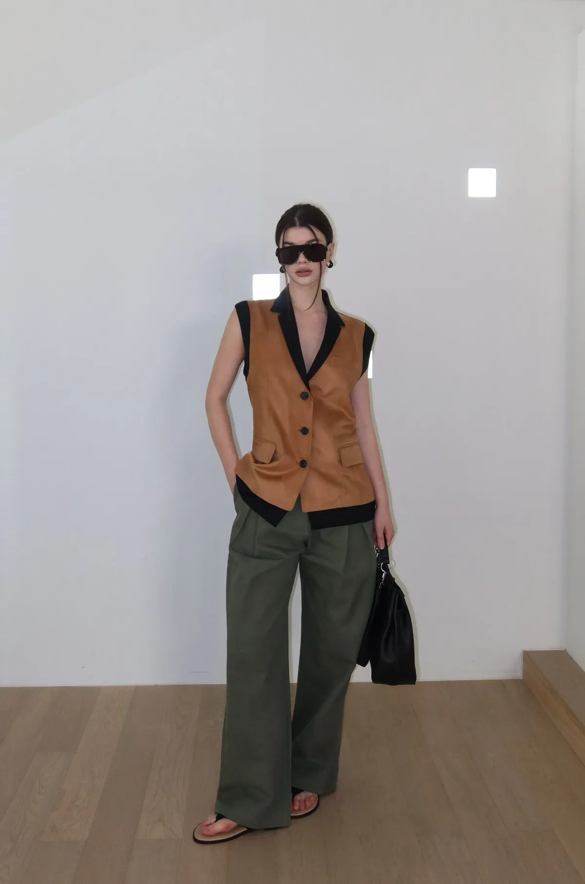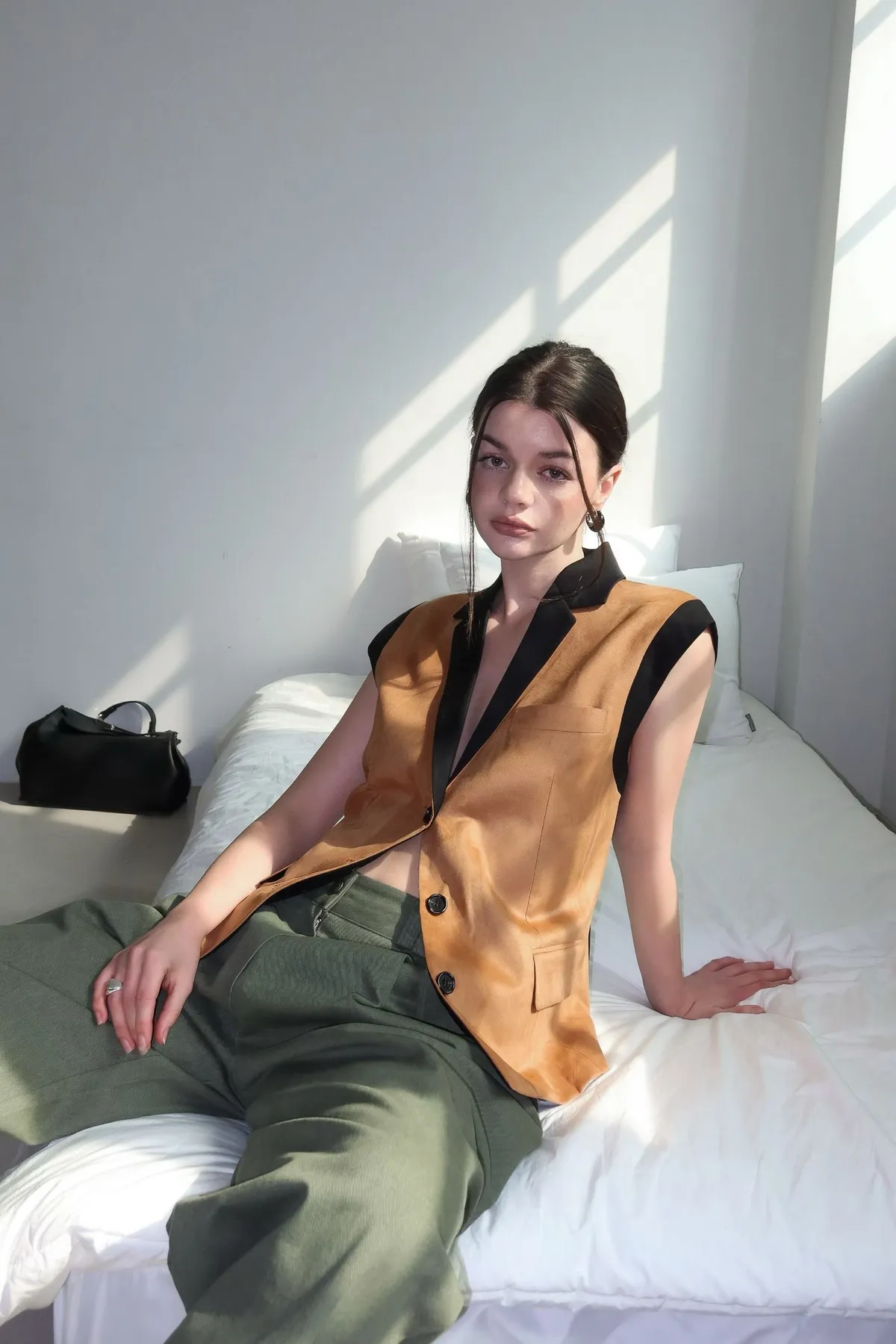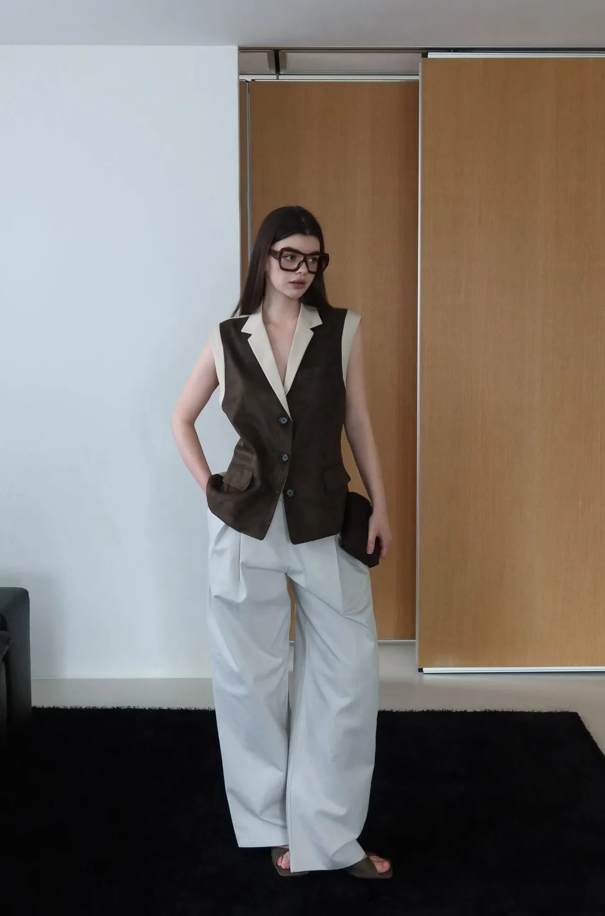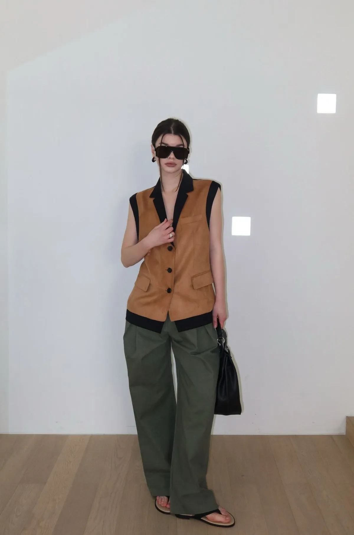 26ED17 後收腰可拆下擺麂皮絨西裝背心 2色
