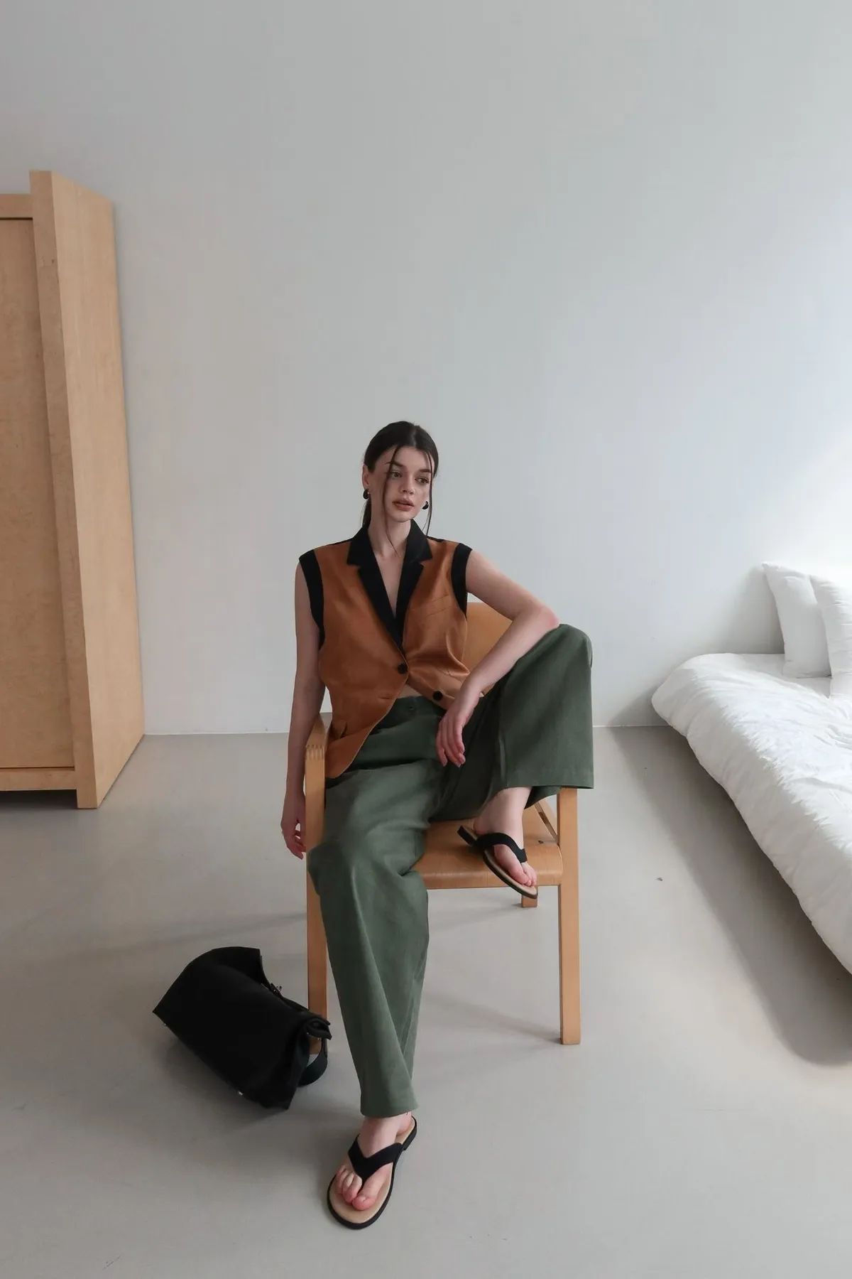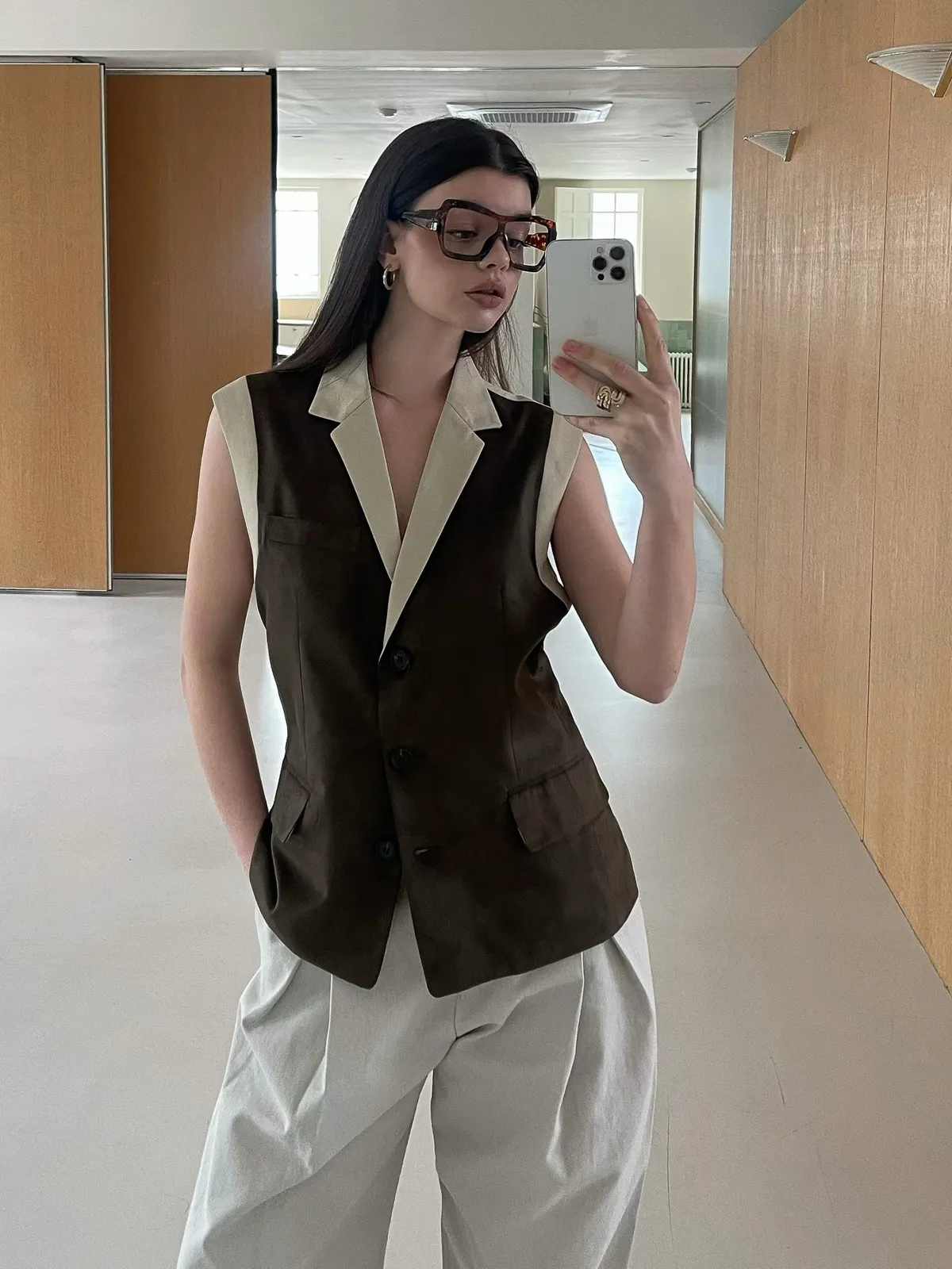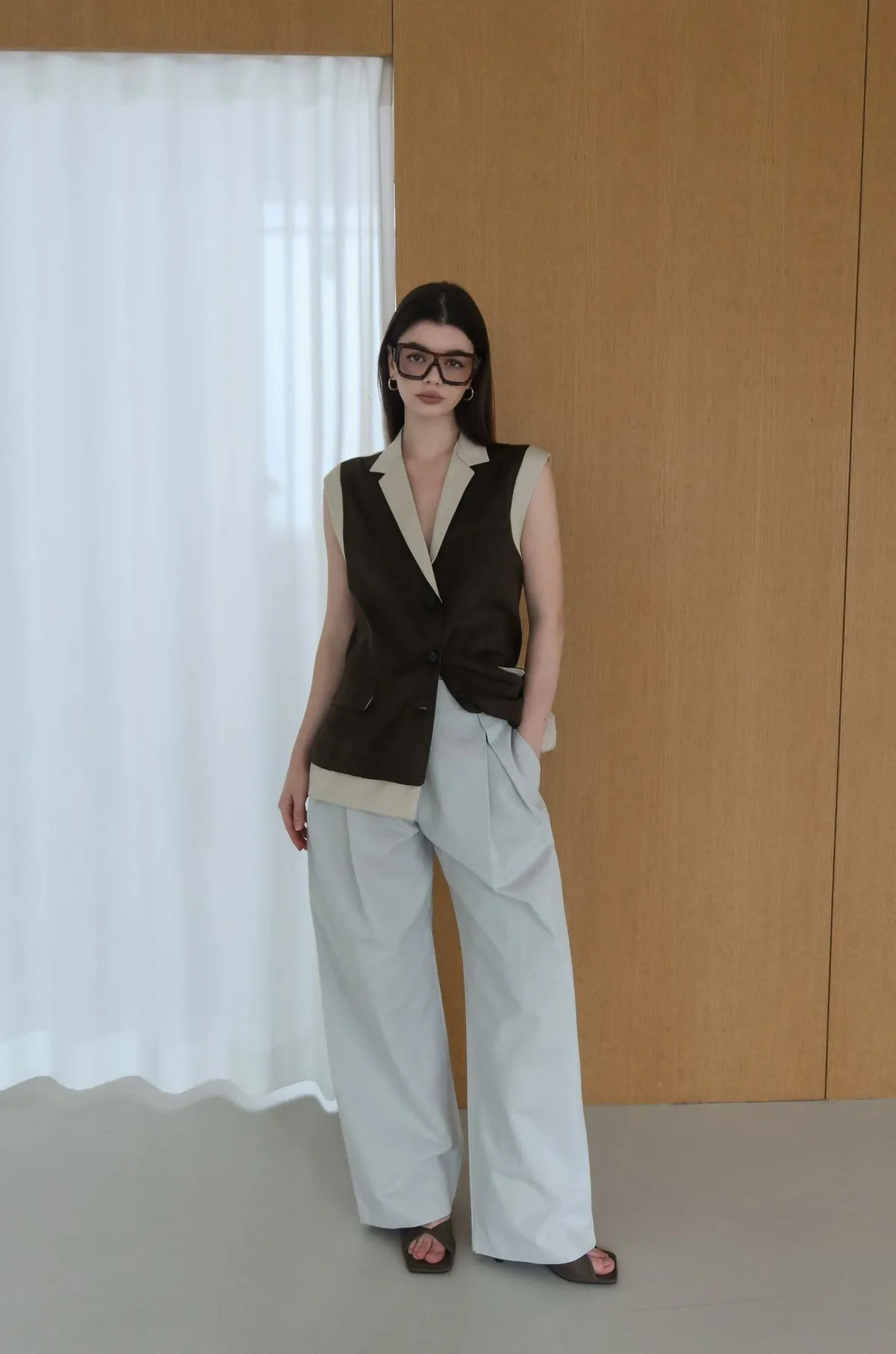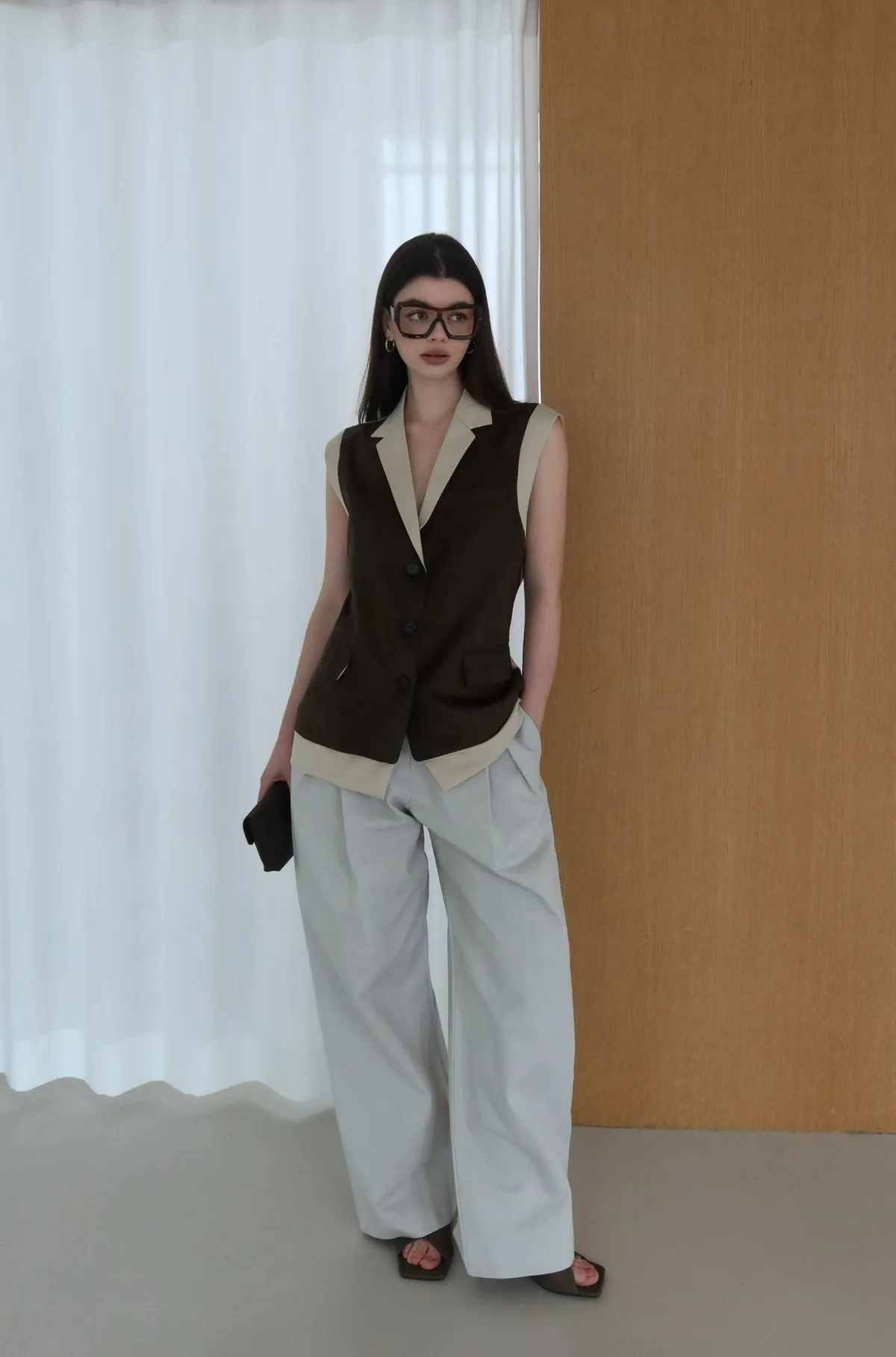 26ED17 後收腰可拆下擺麂皮絨西裝背心 2色