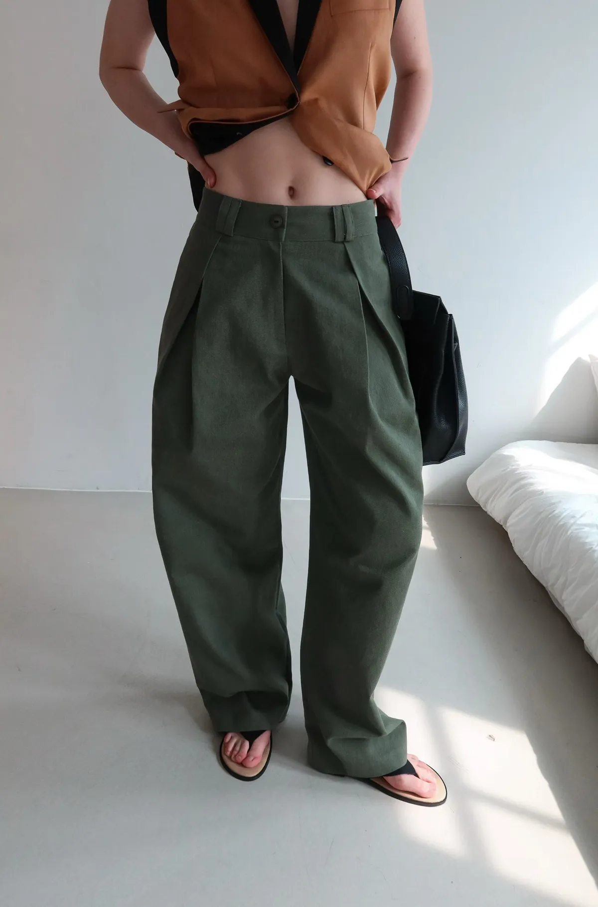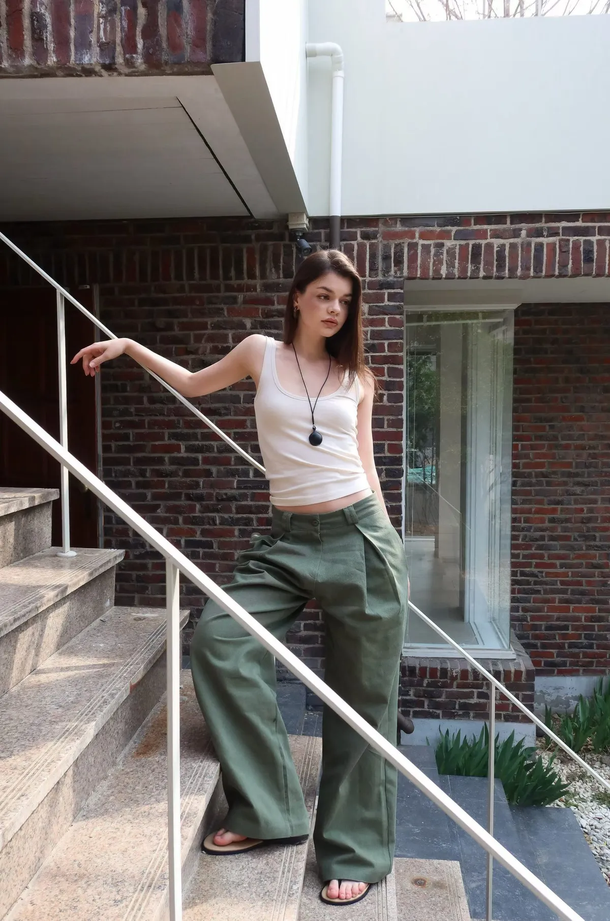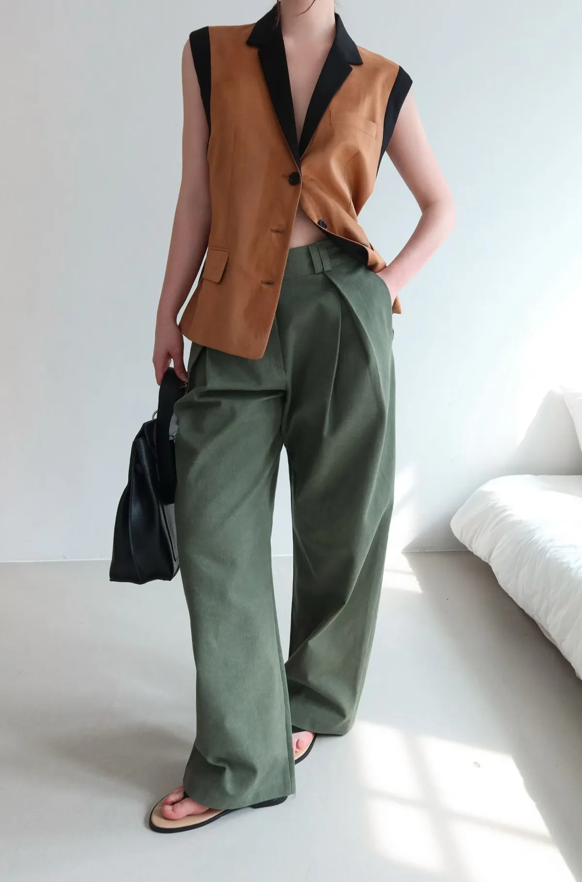 26ED18 斜紋洗色倒V打褶長褲 3色 SM