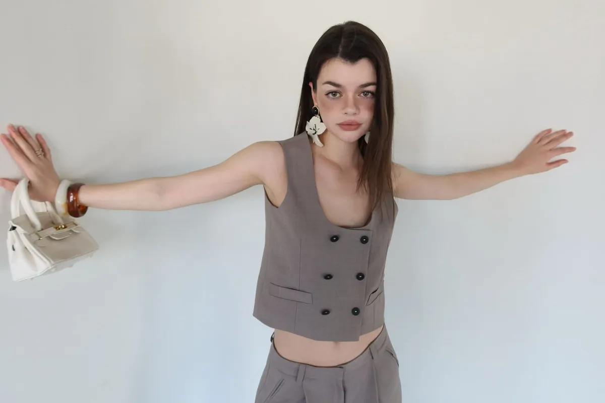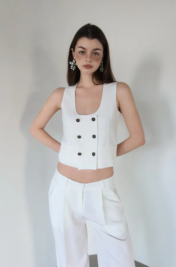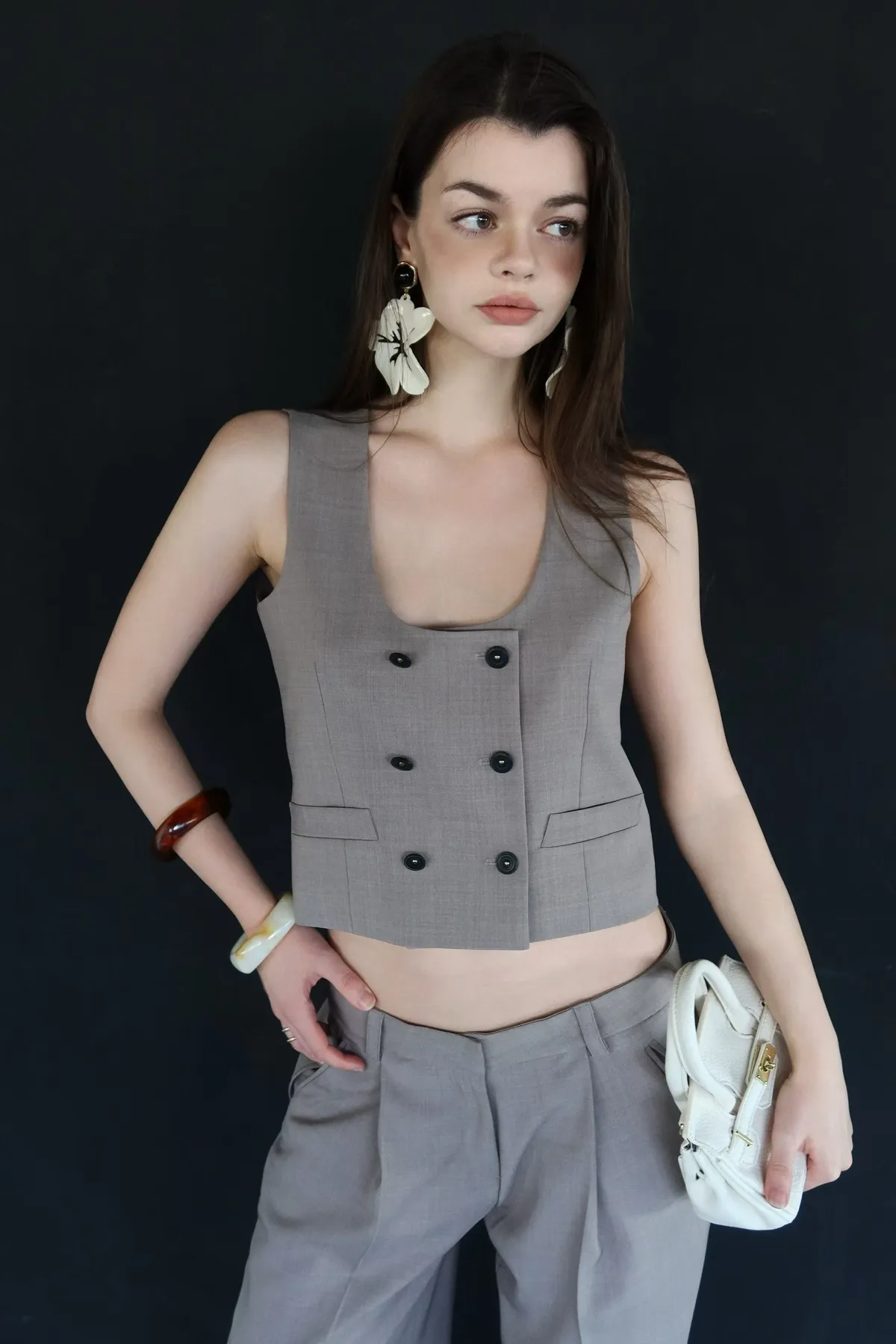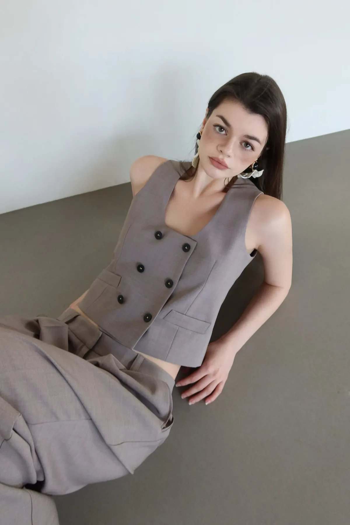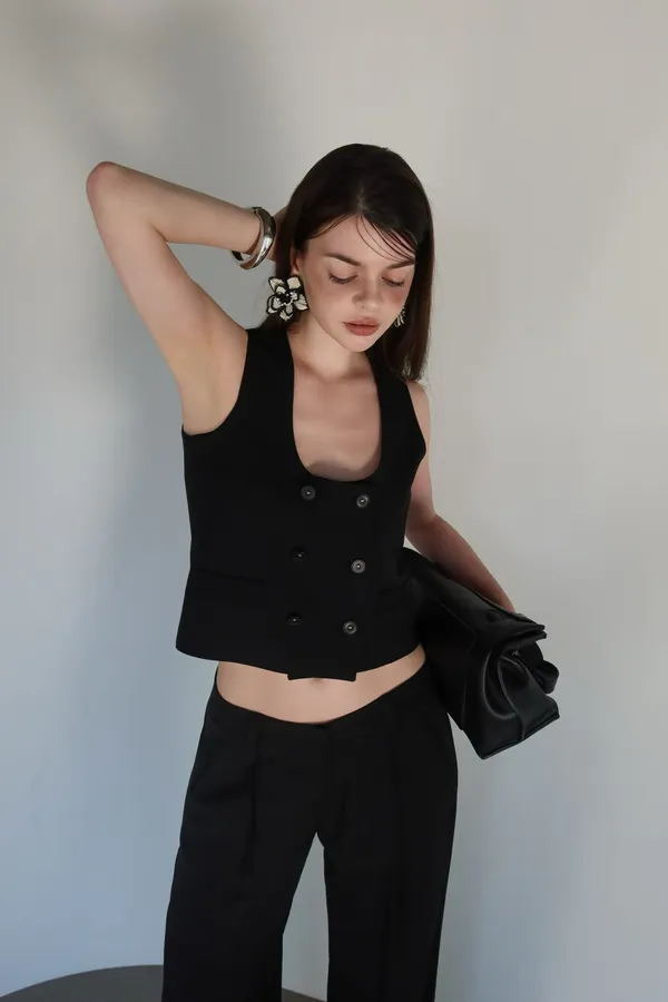 26ED22 雙排扣短版西料雙排扣背心 3色
