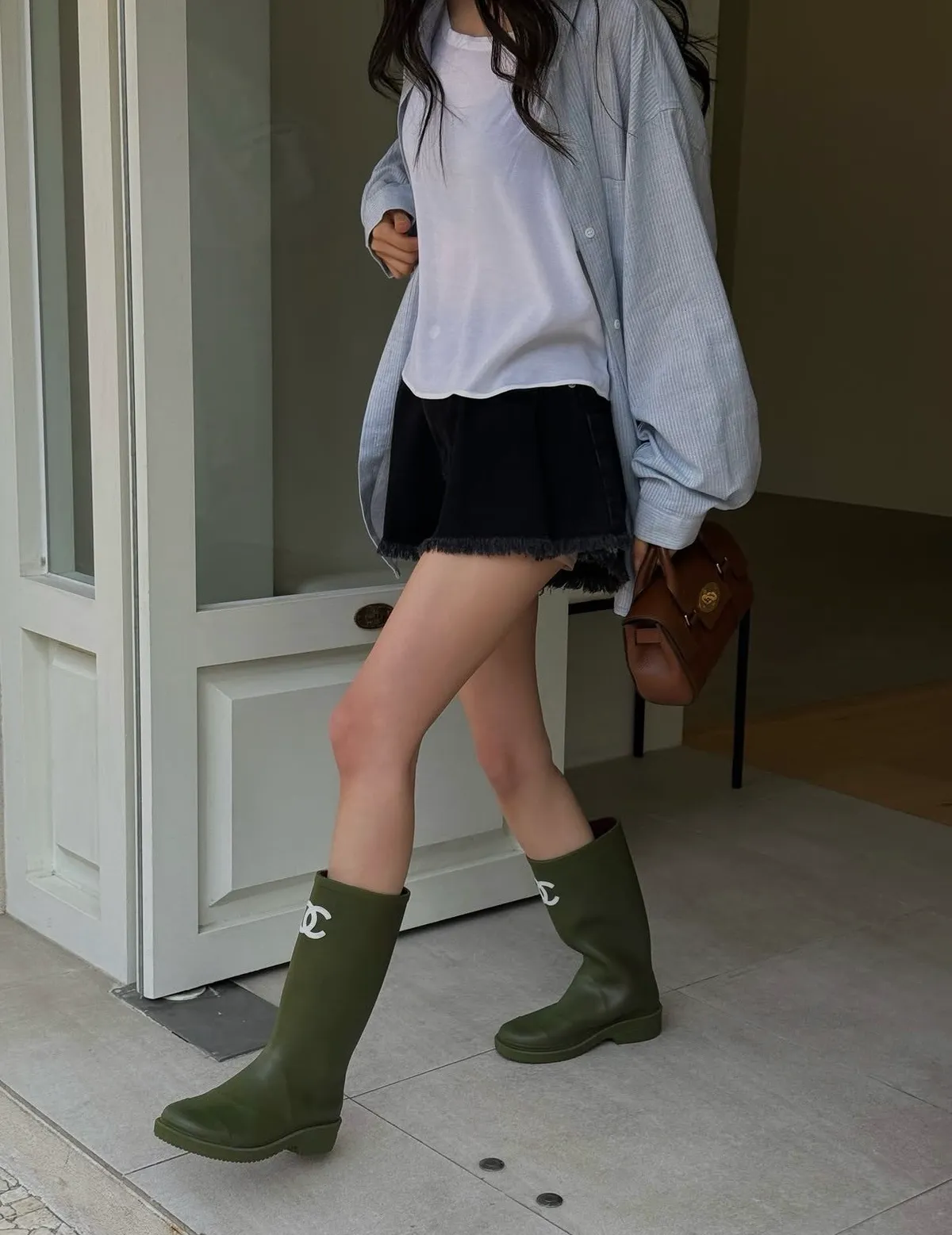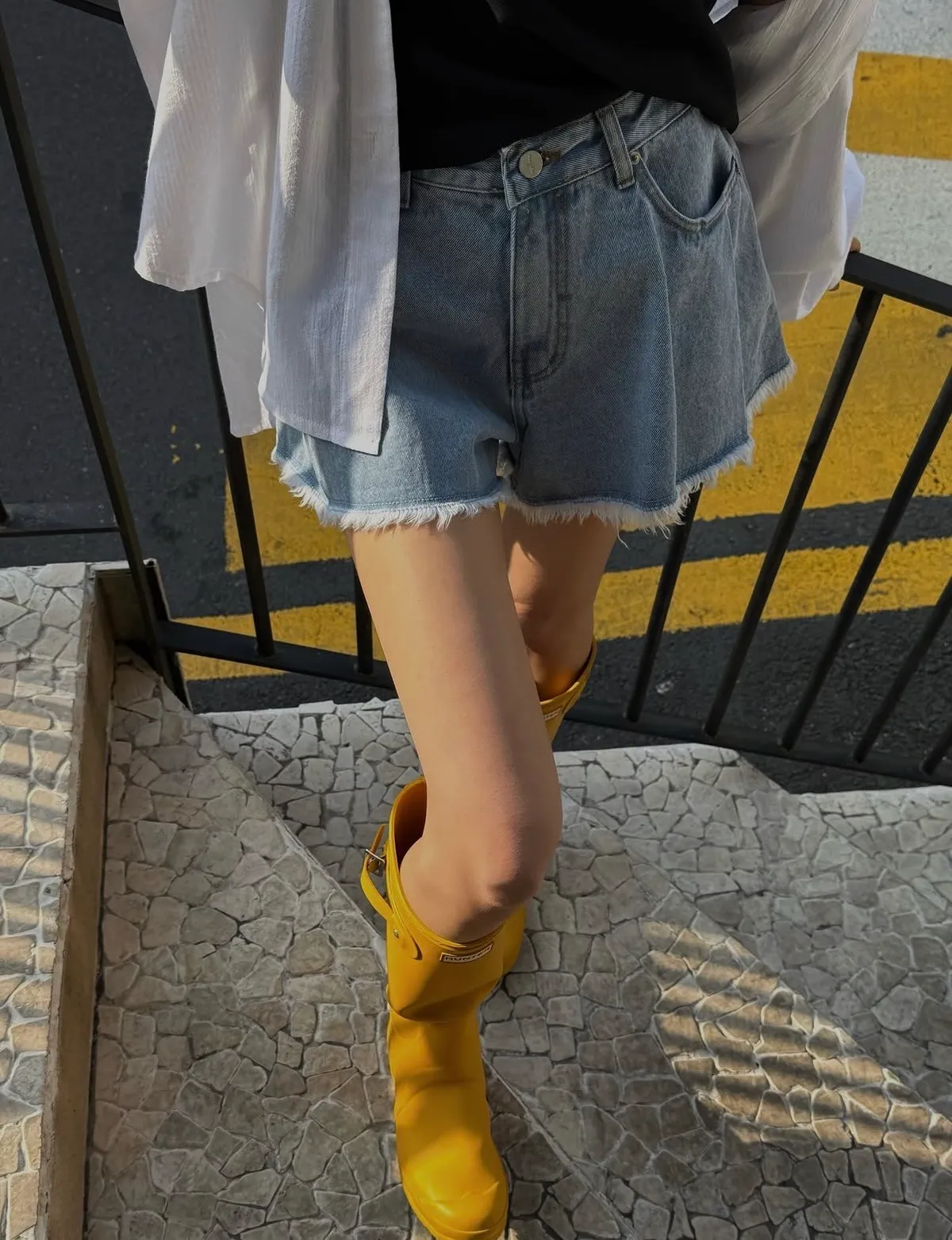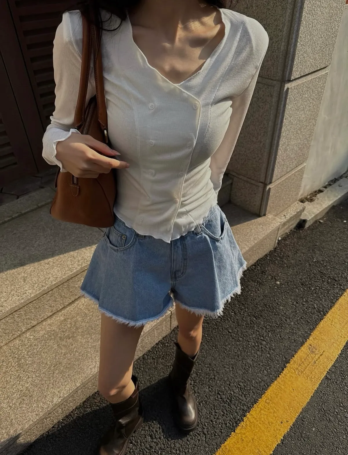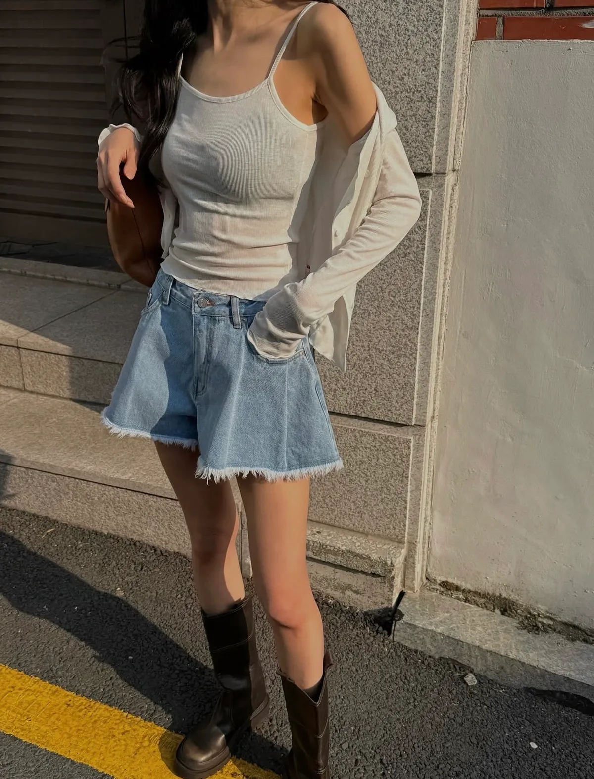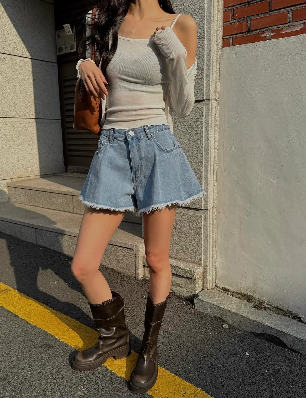 26EE03 鬚鬚打褶牛仔短褲 2色 SML