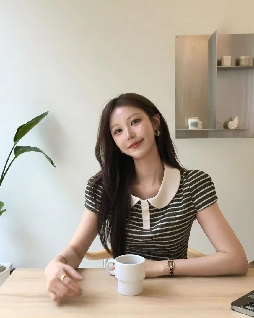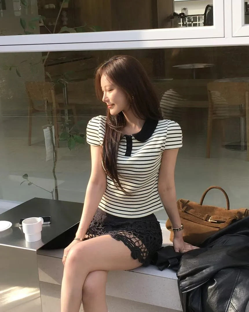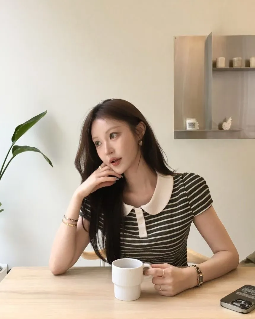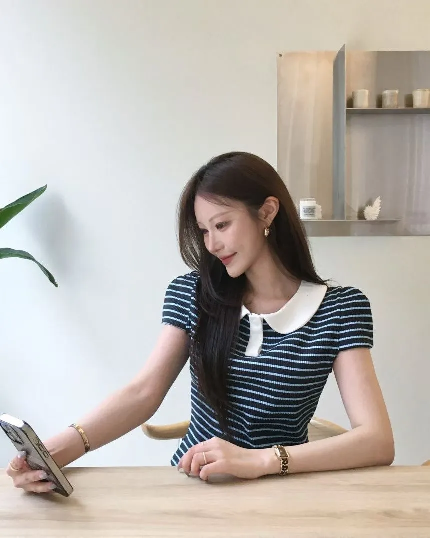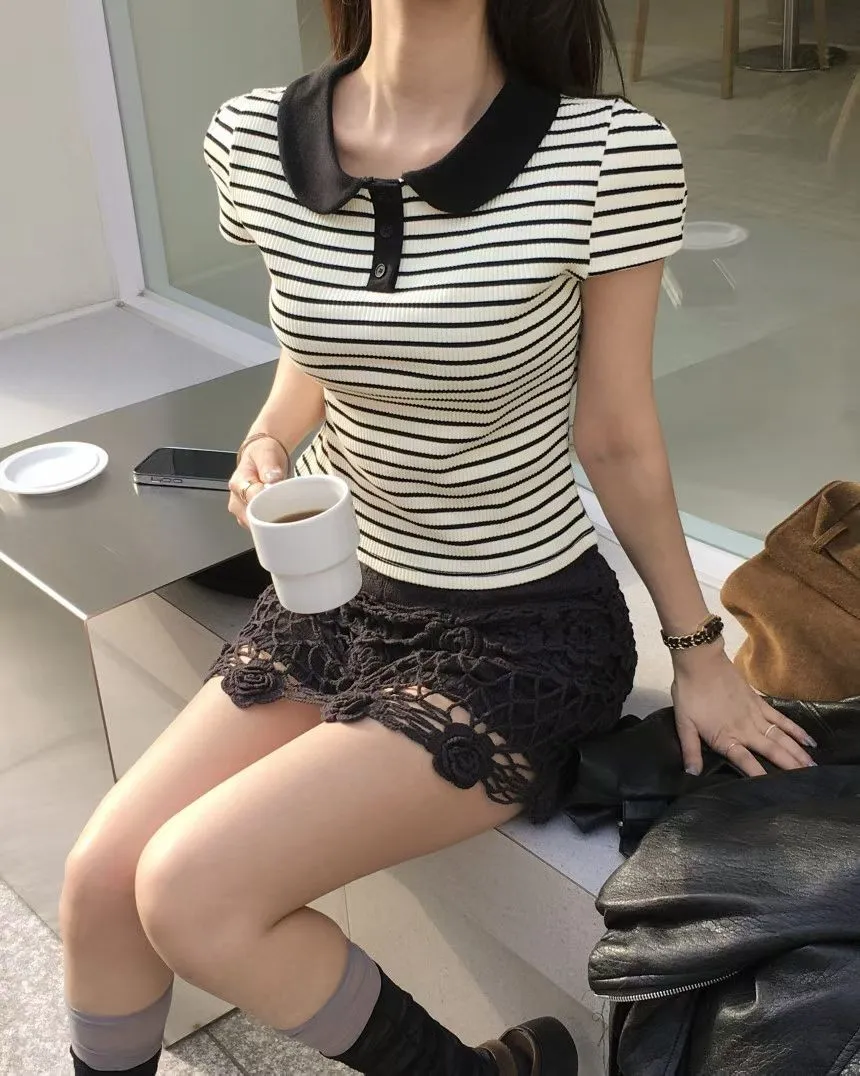 26EE35 圓領POLO條紋坑條鬱金袖上衣 3色