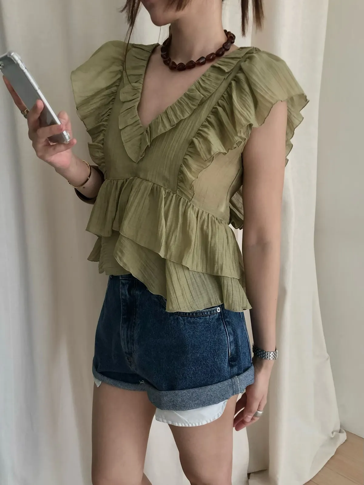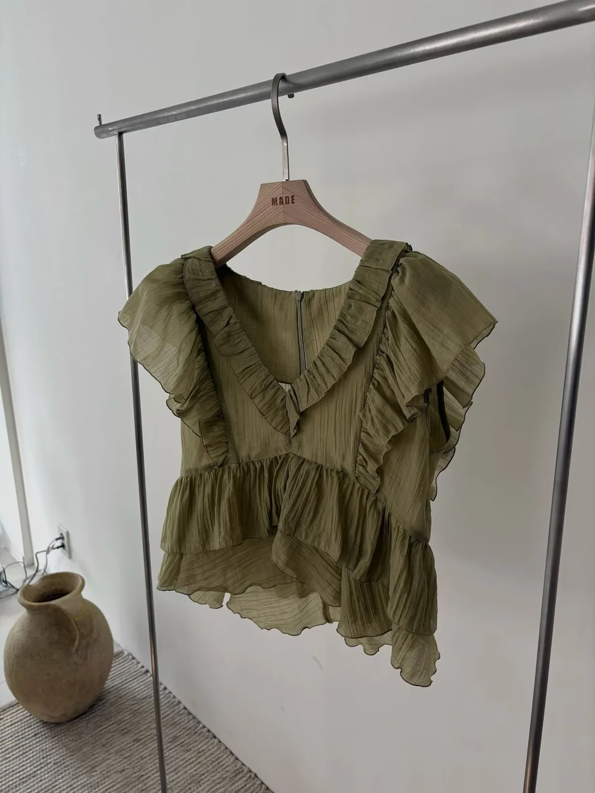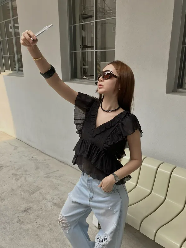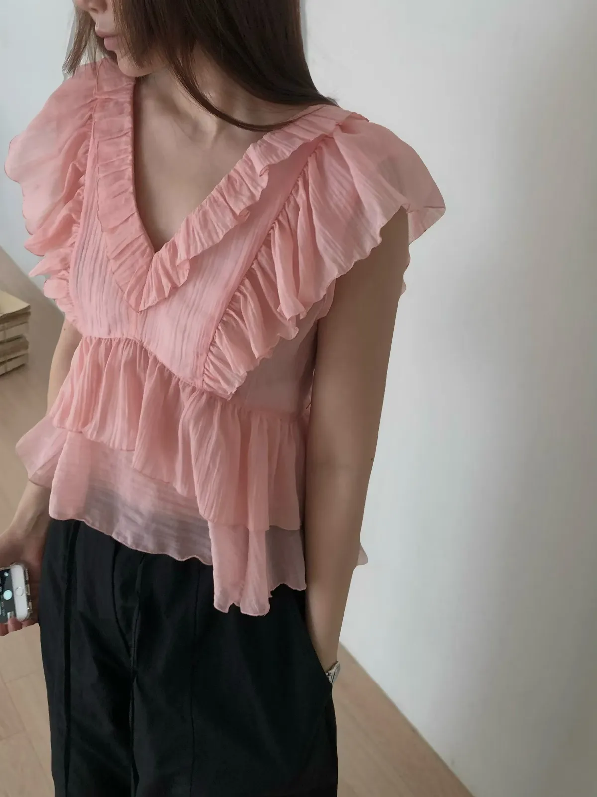26EF16 V領層次荷葉背心上衣 4色