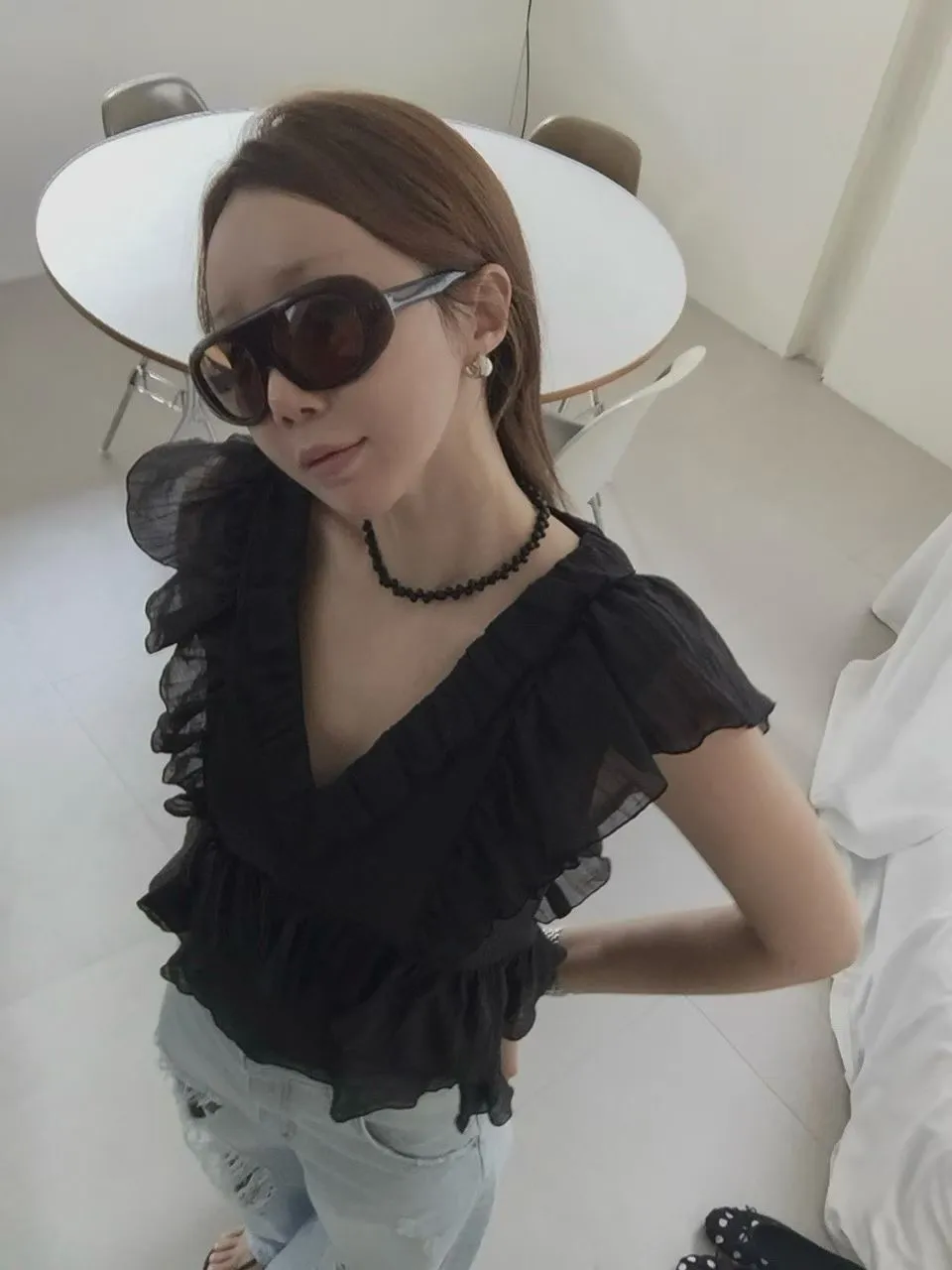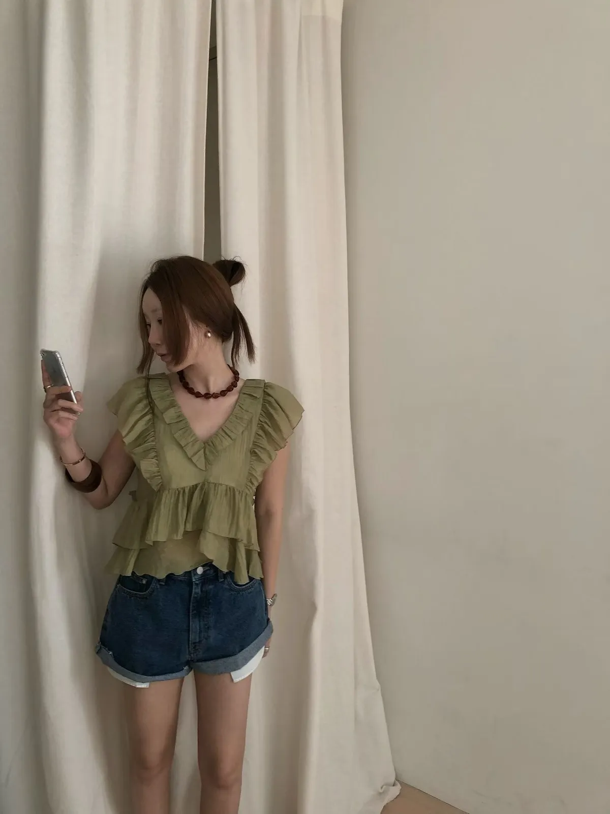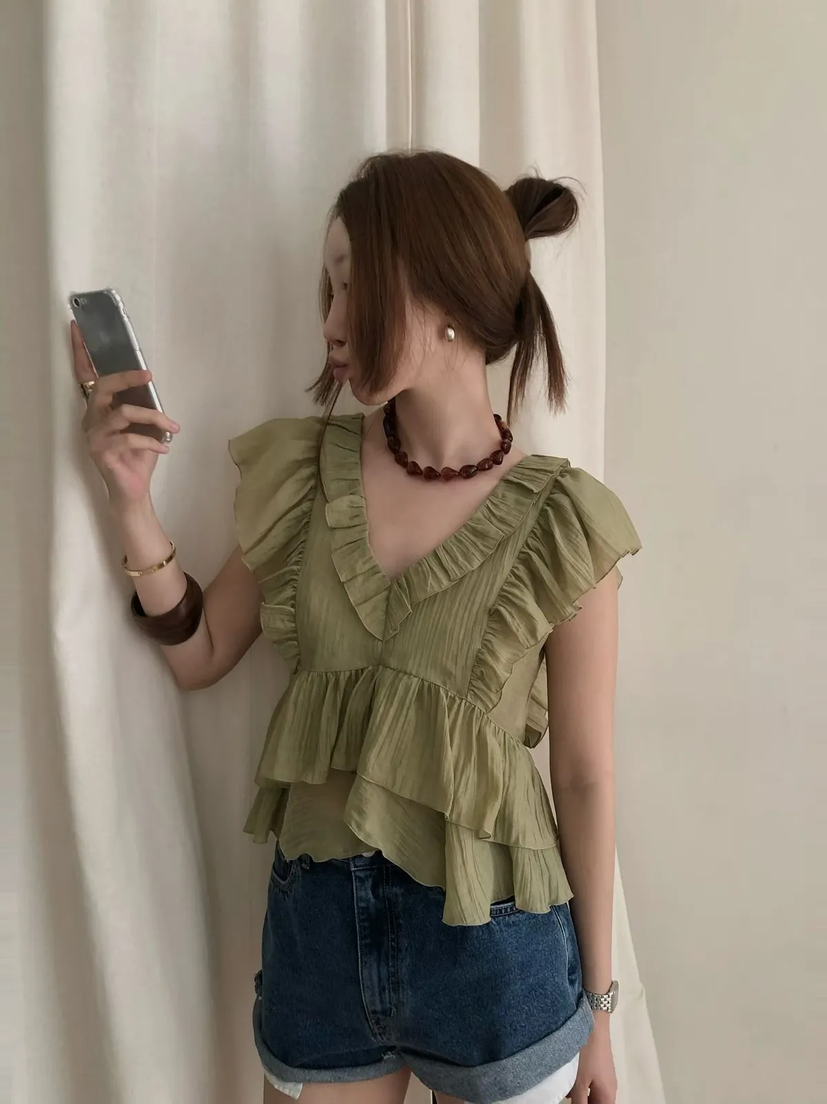 26EF16 V領層次荷葉背心上衣 4色
