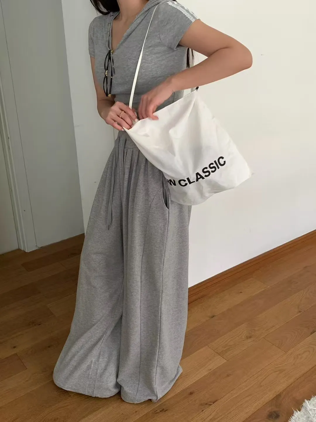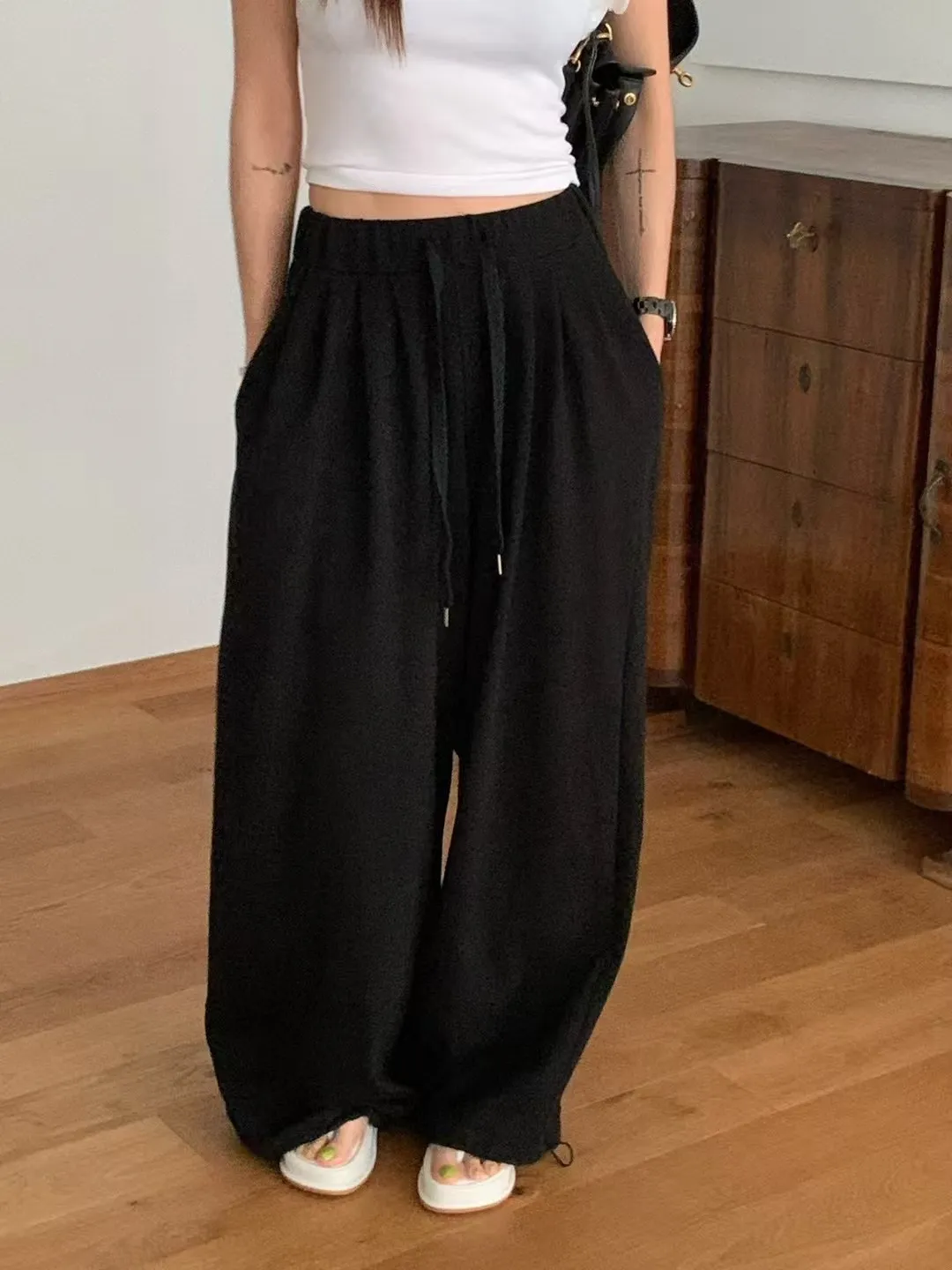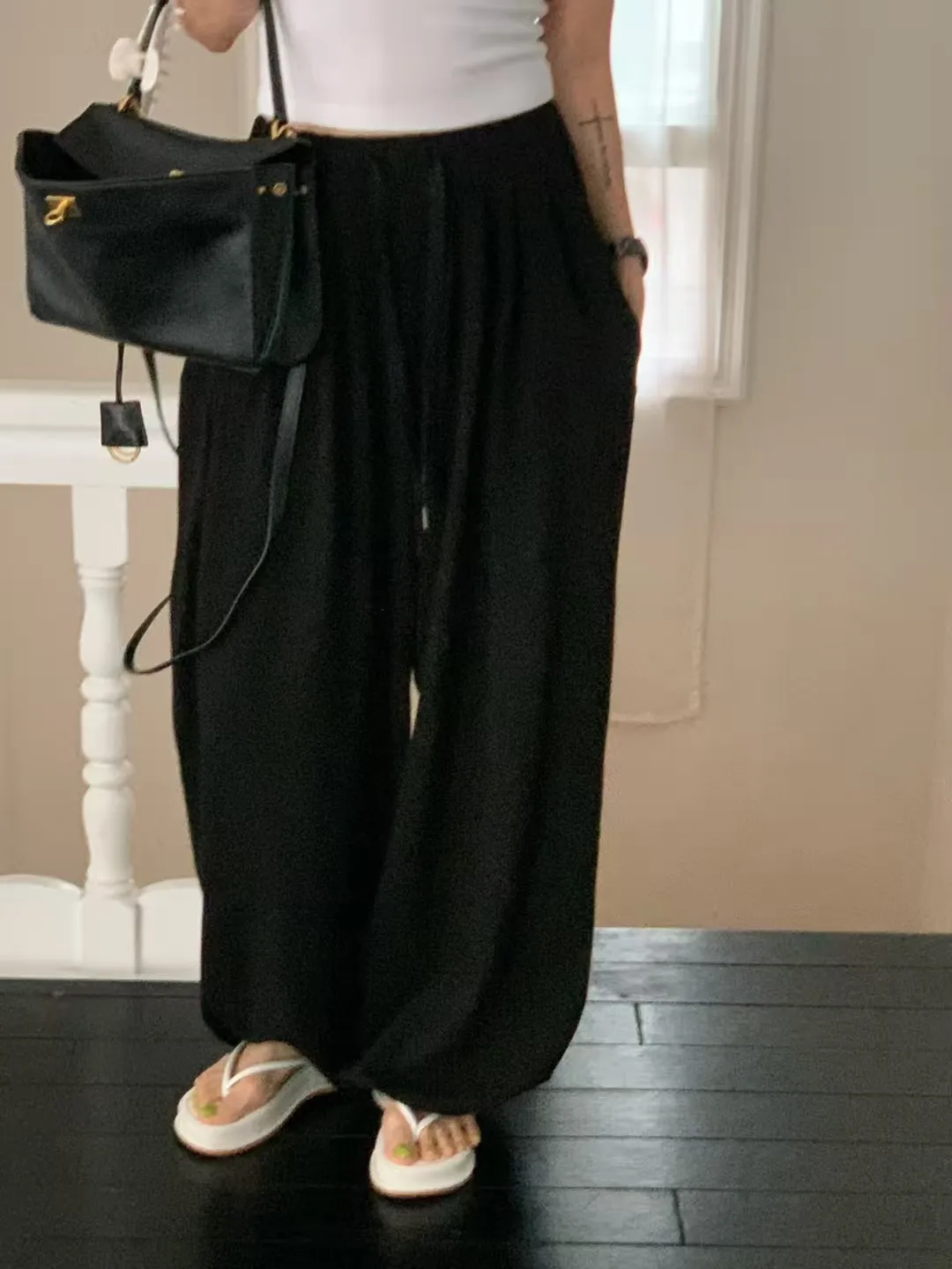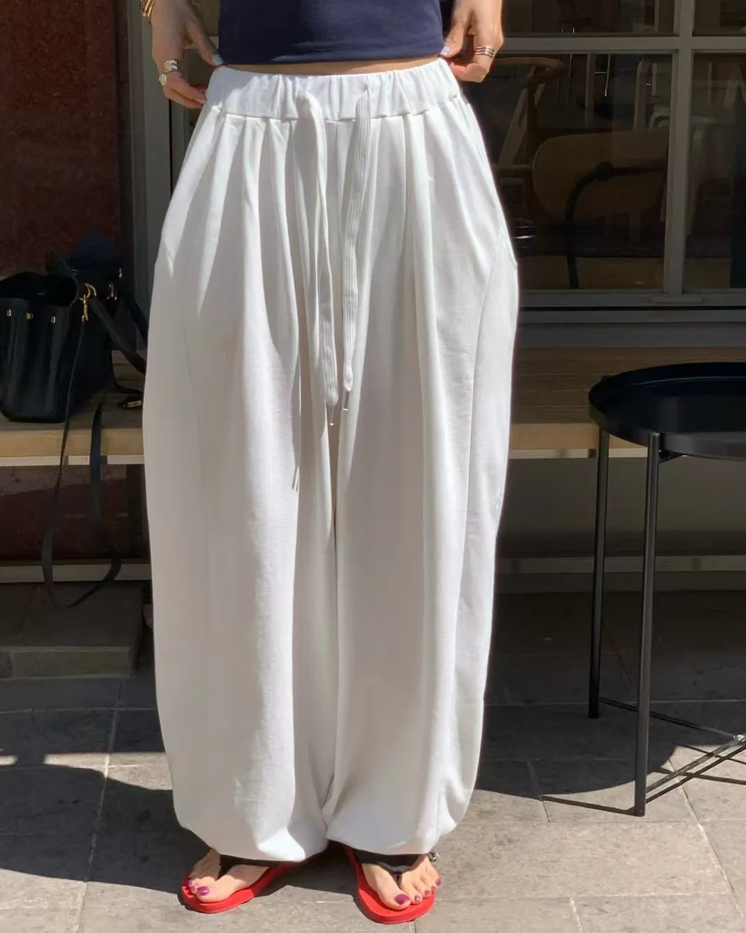 26EG03 薄毛巾兩穿縮口棉長褲 3色