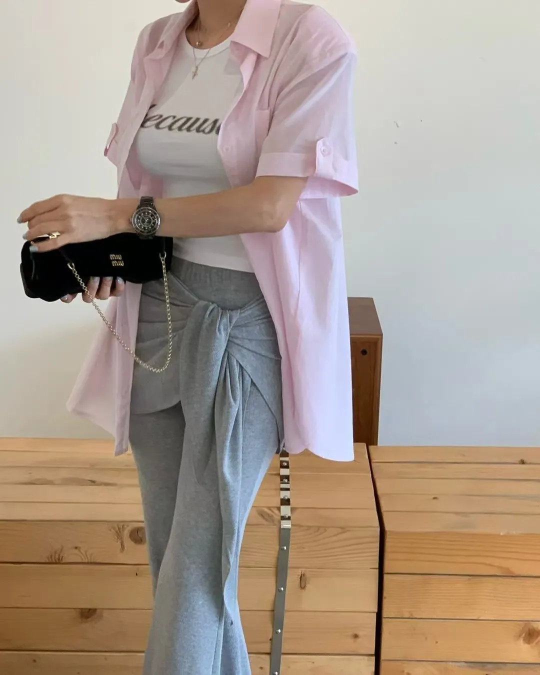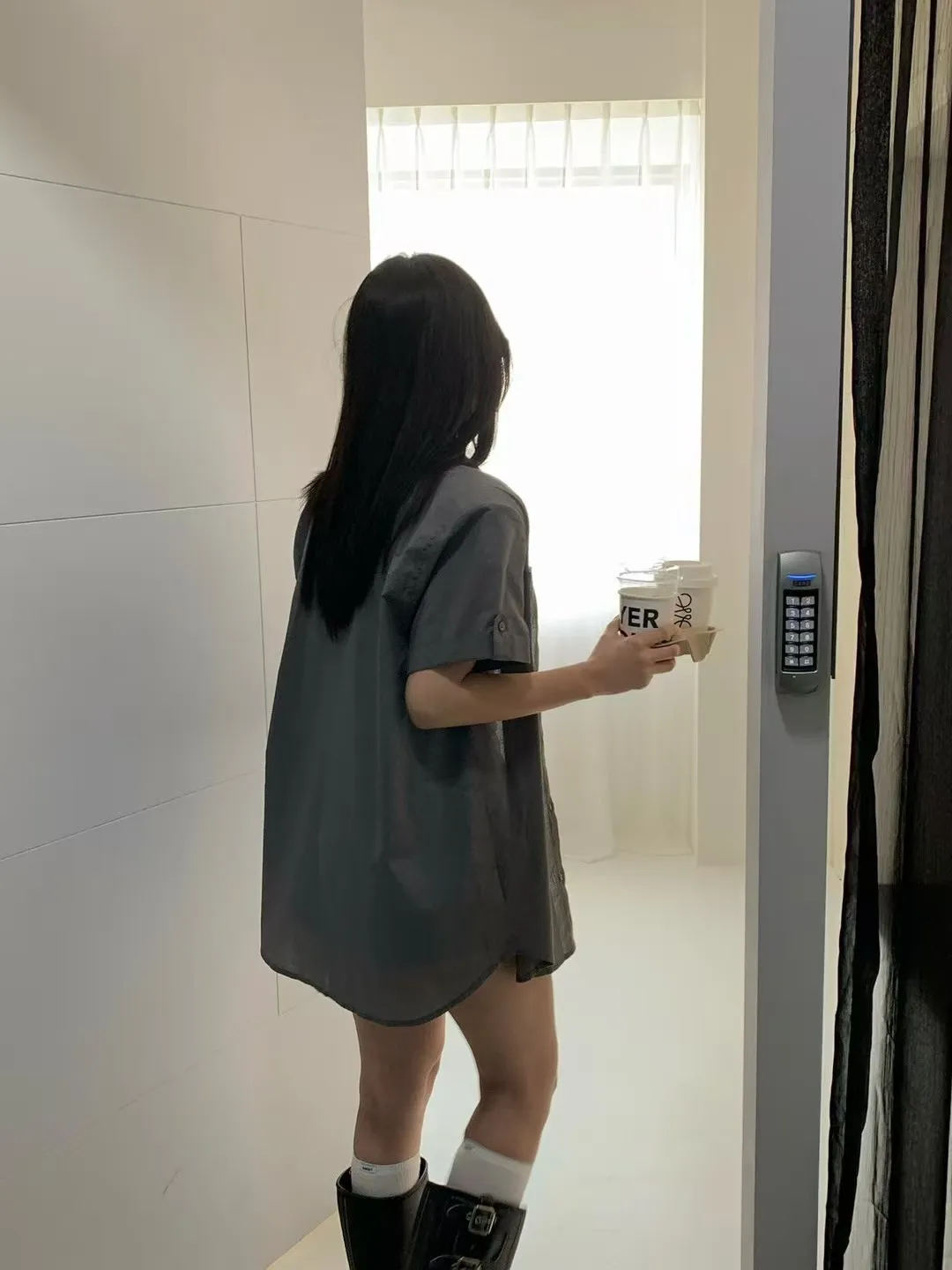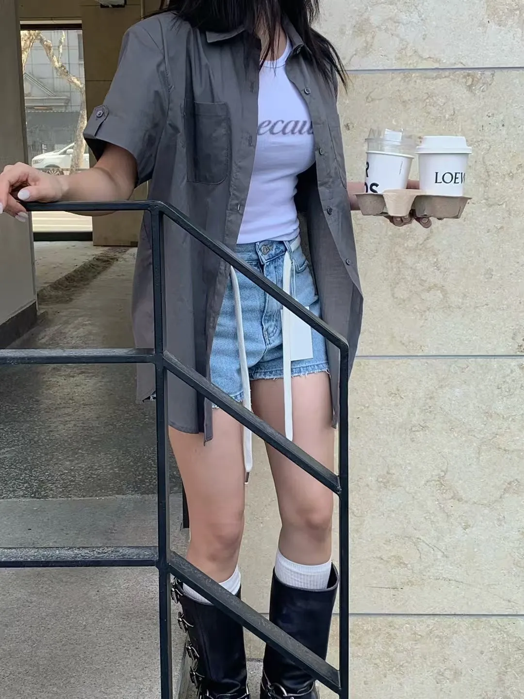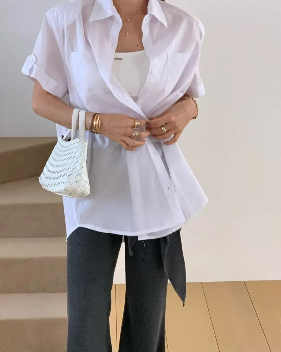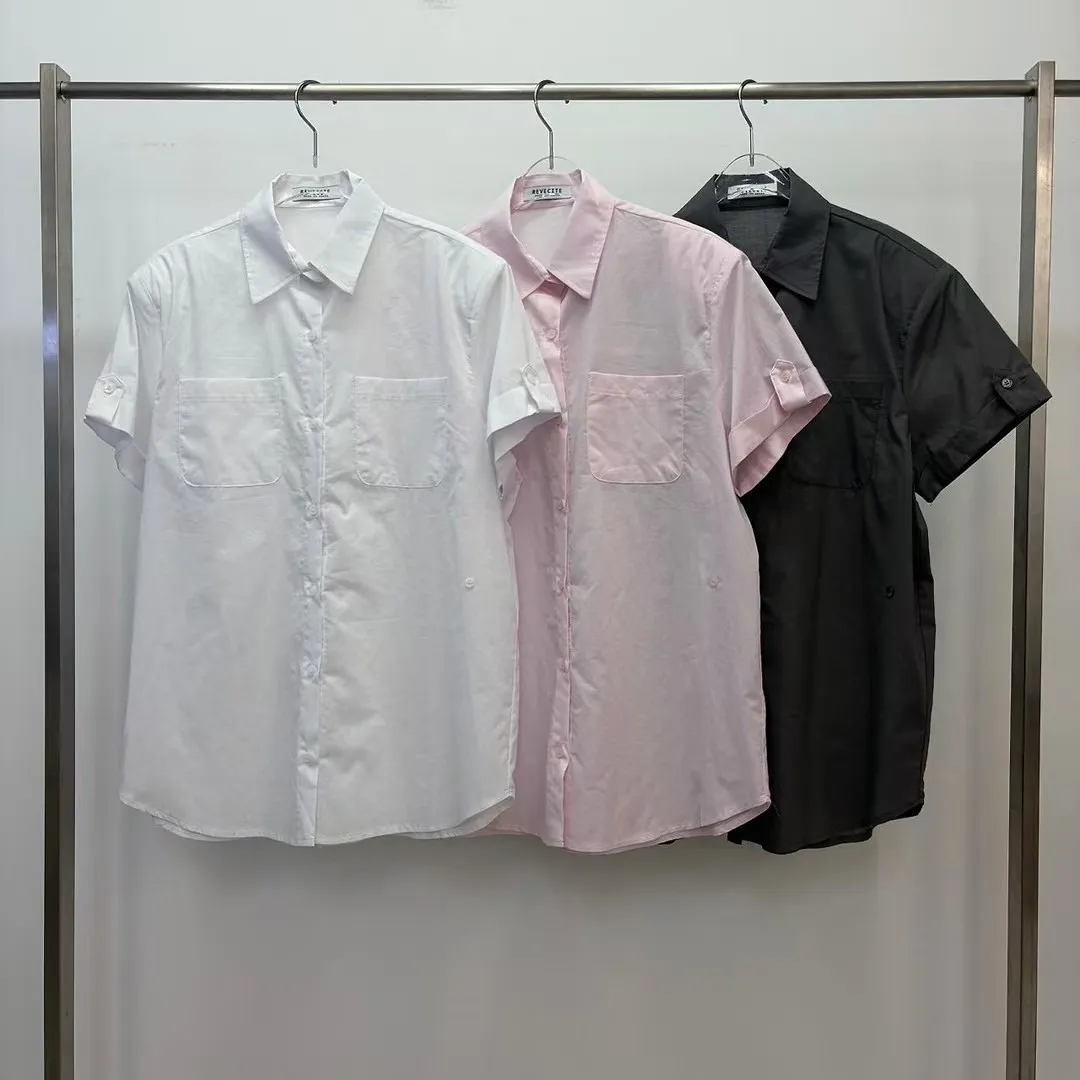 26EG09 短袖透氣棉中長版多扣襯衫 3色