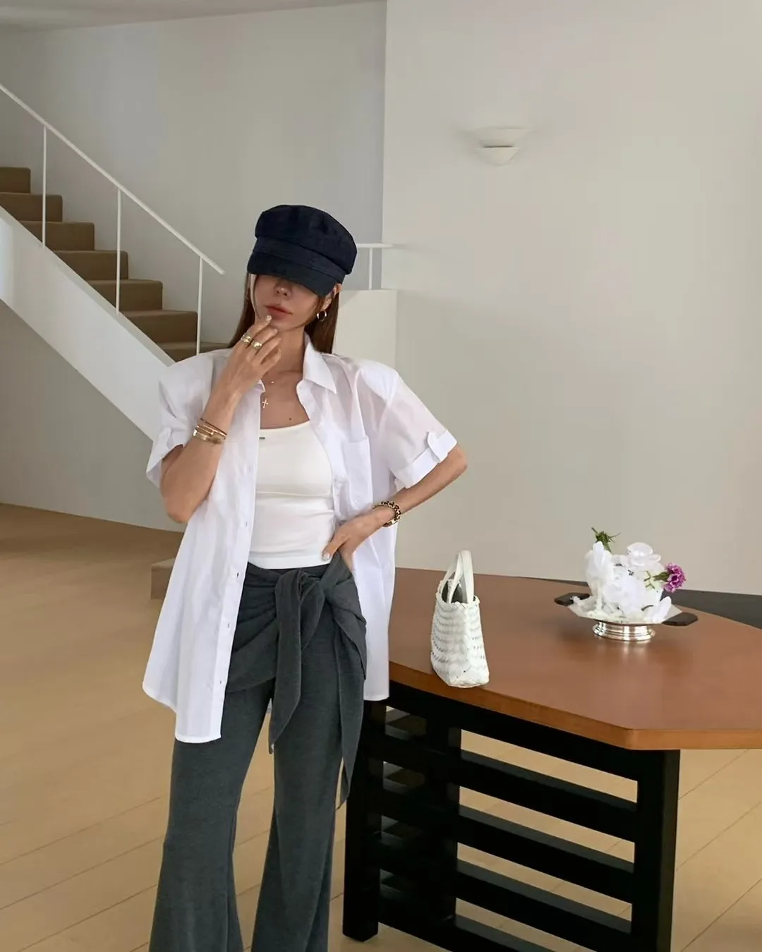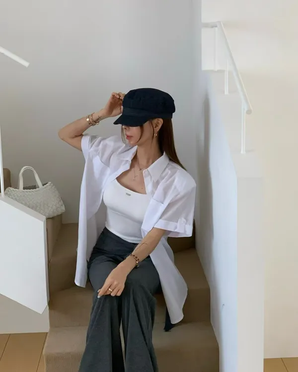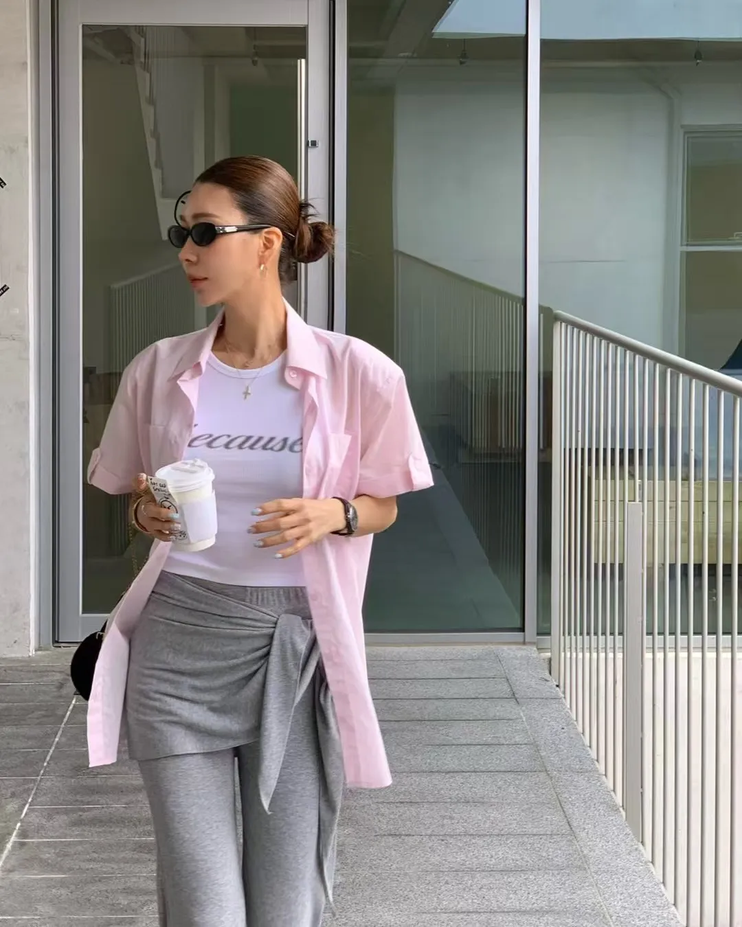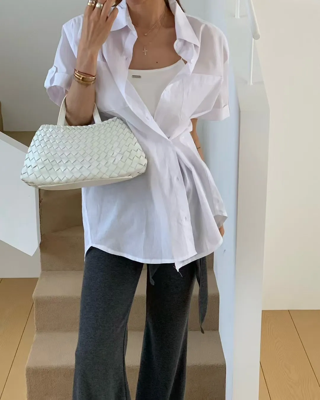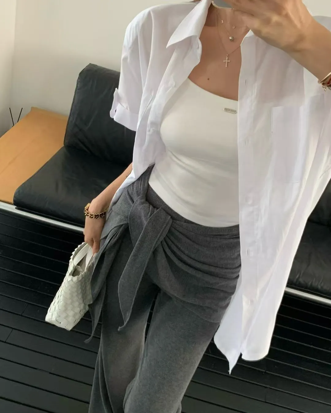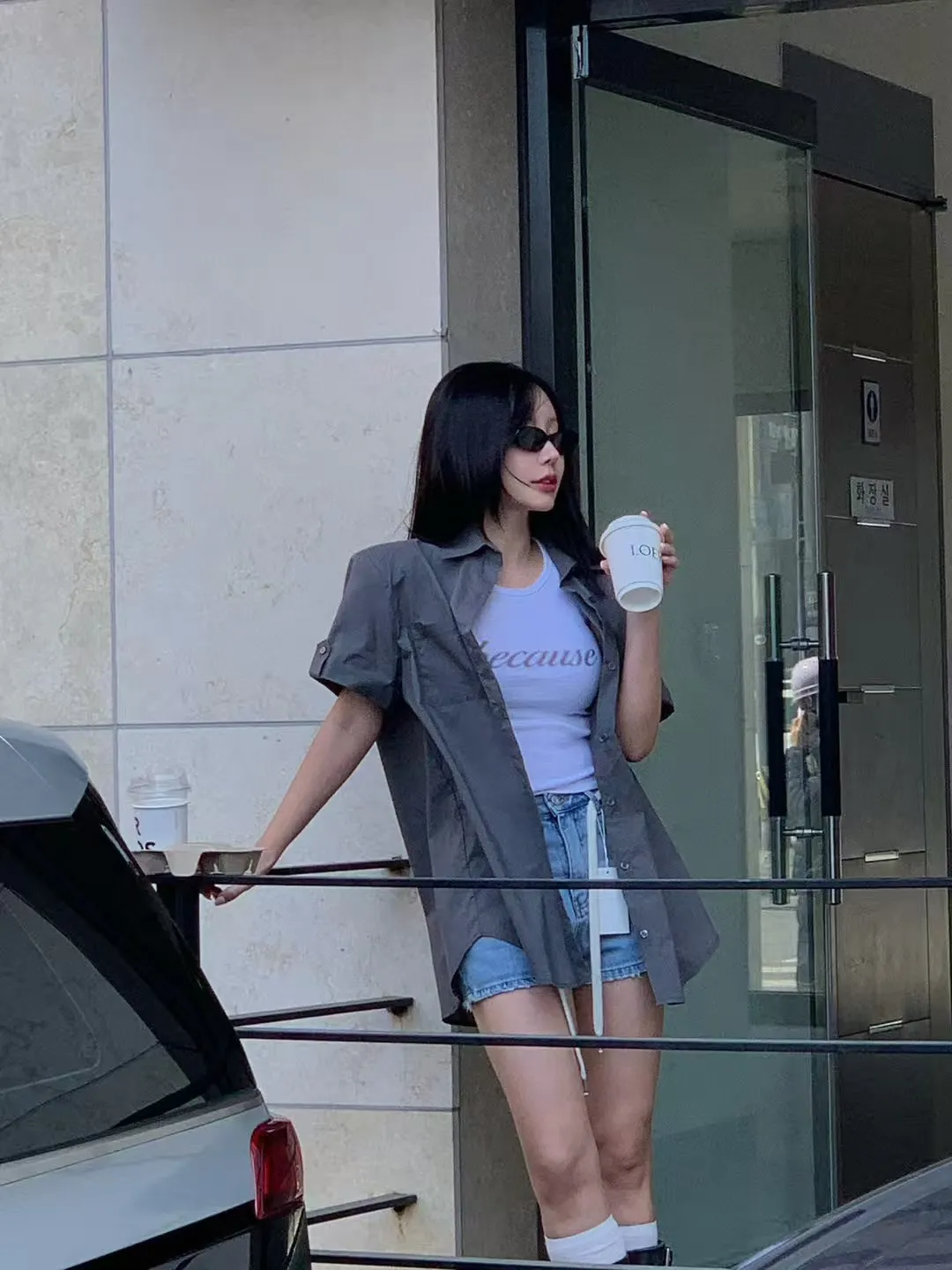26EG09 短袖透氣棉中長版多扣襯衫 3色