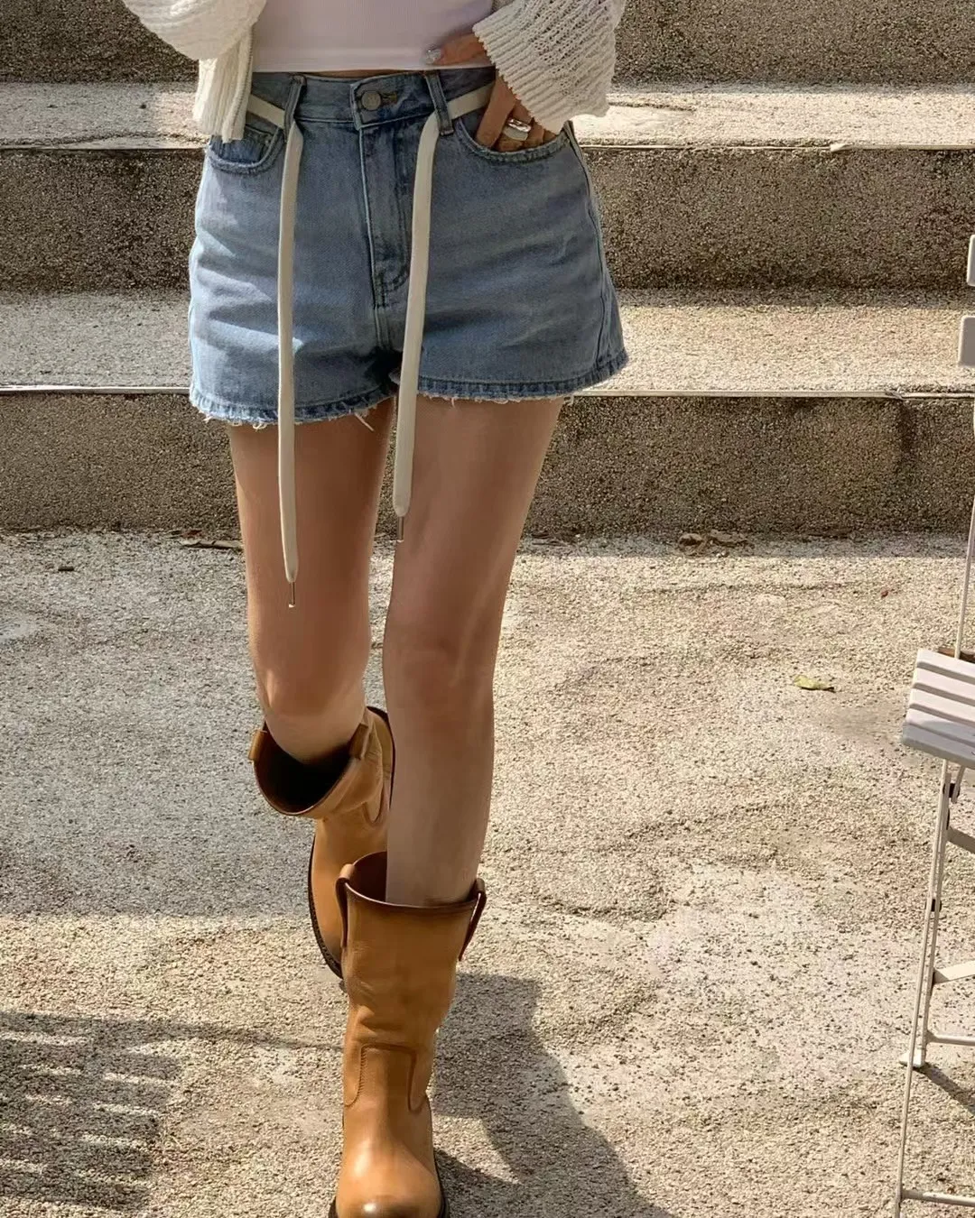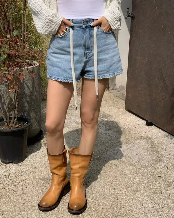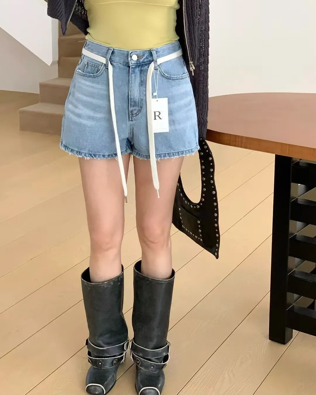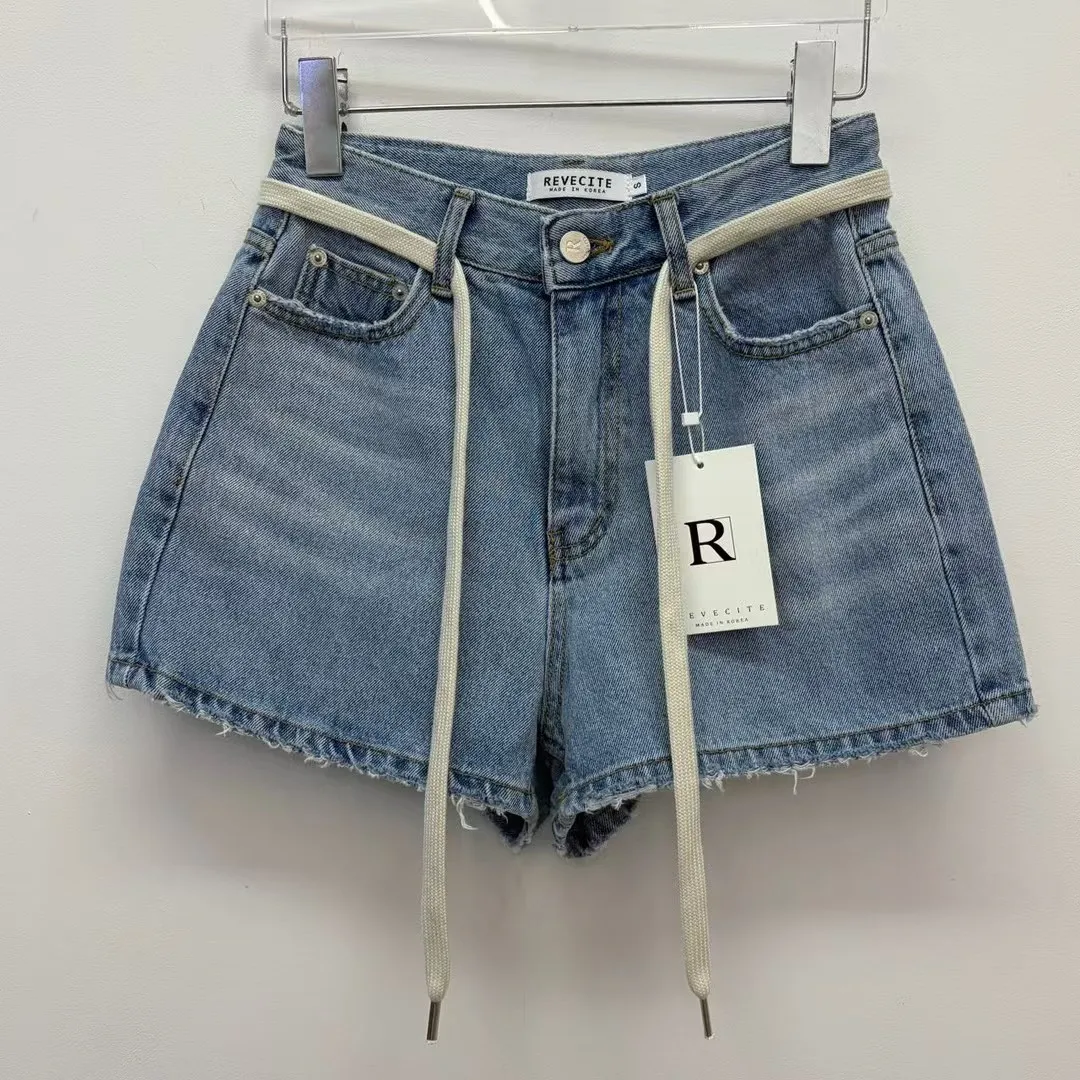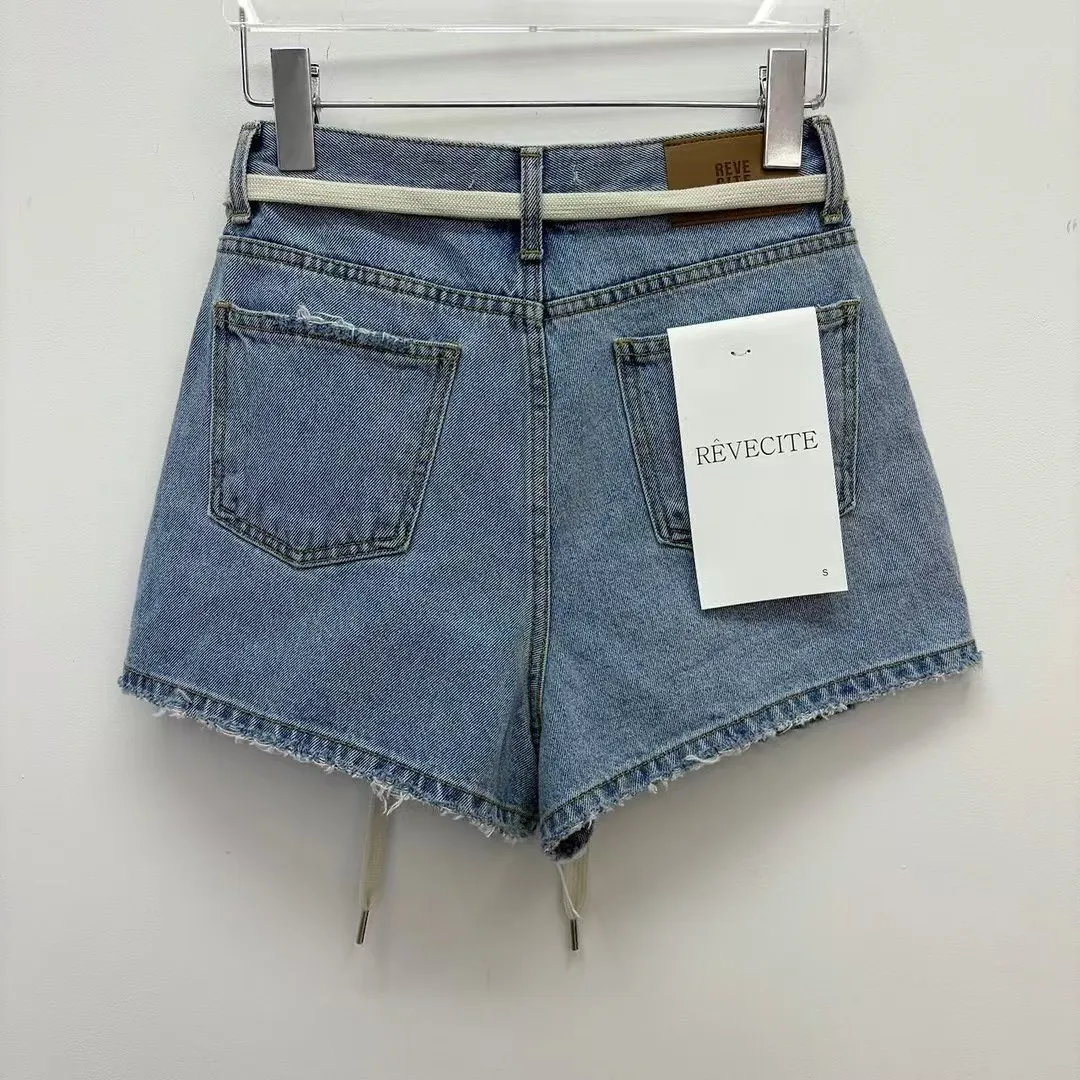 26EG12 腰繩洗色磨破牛仔短褲 SML
