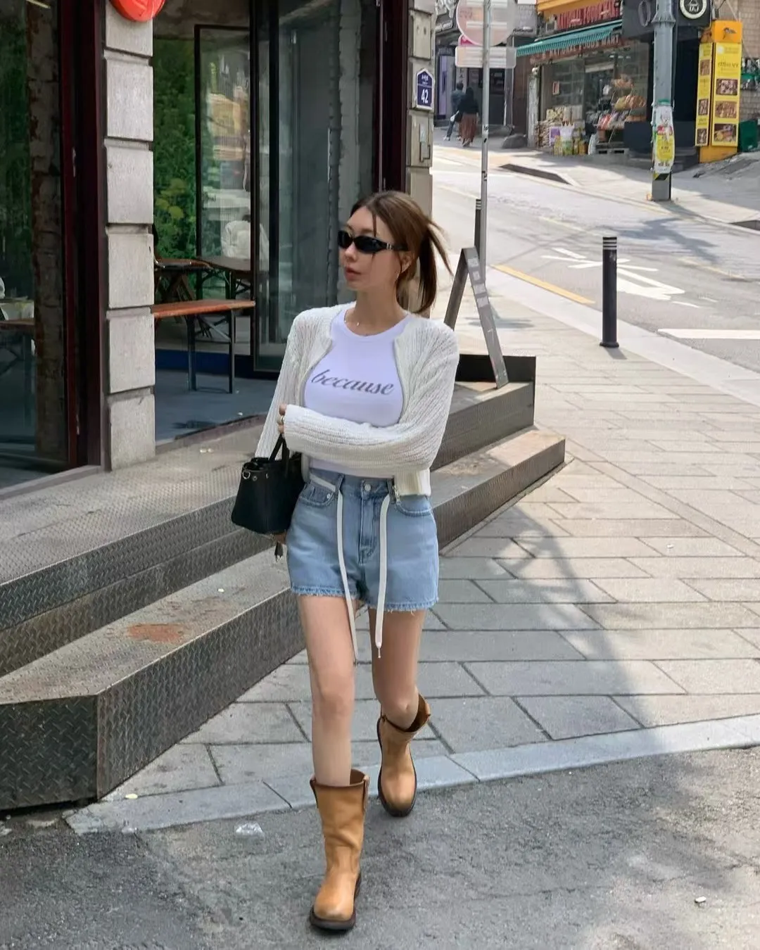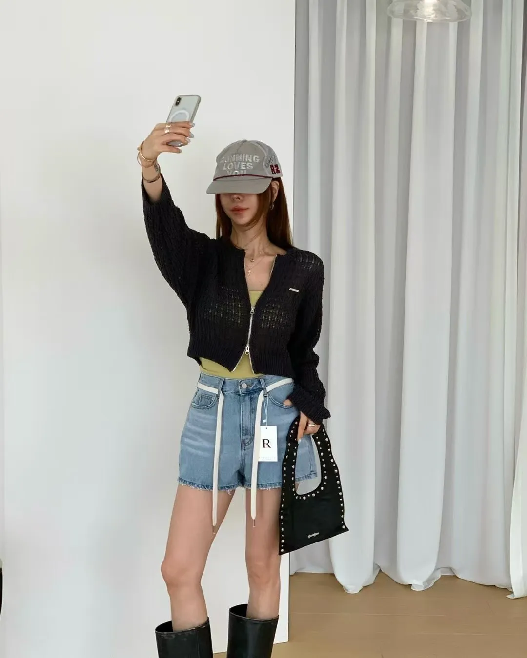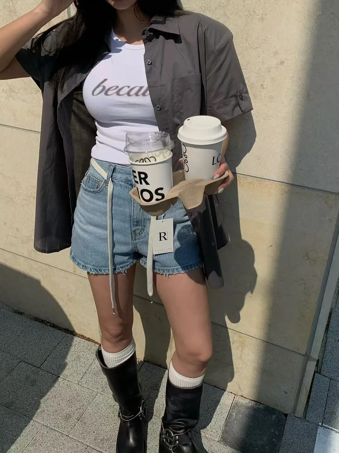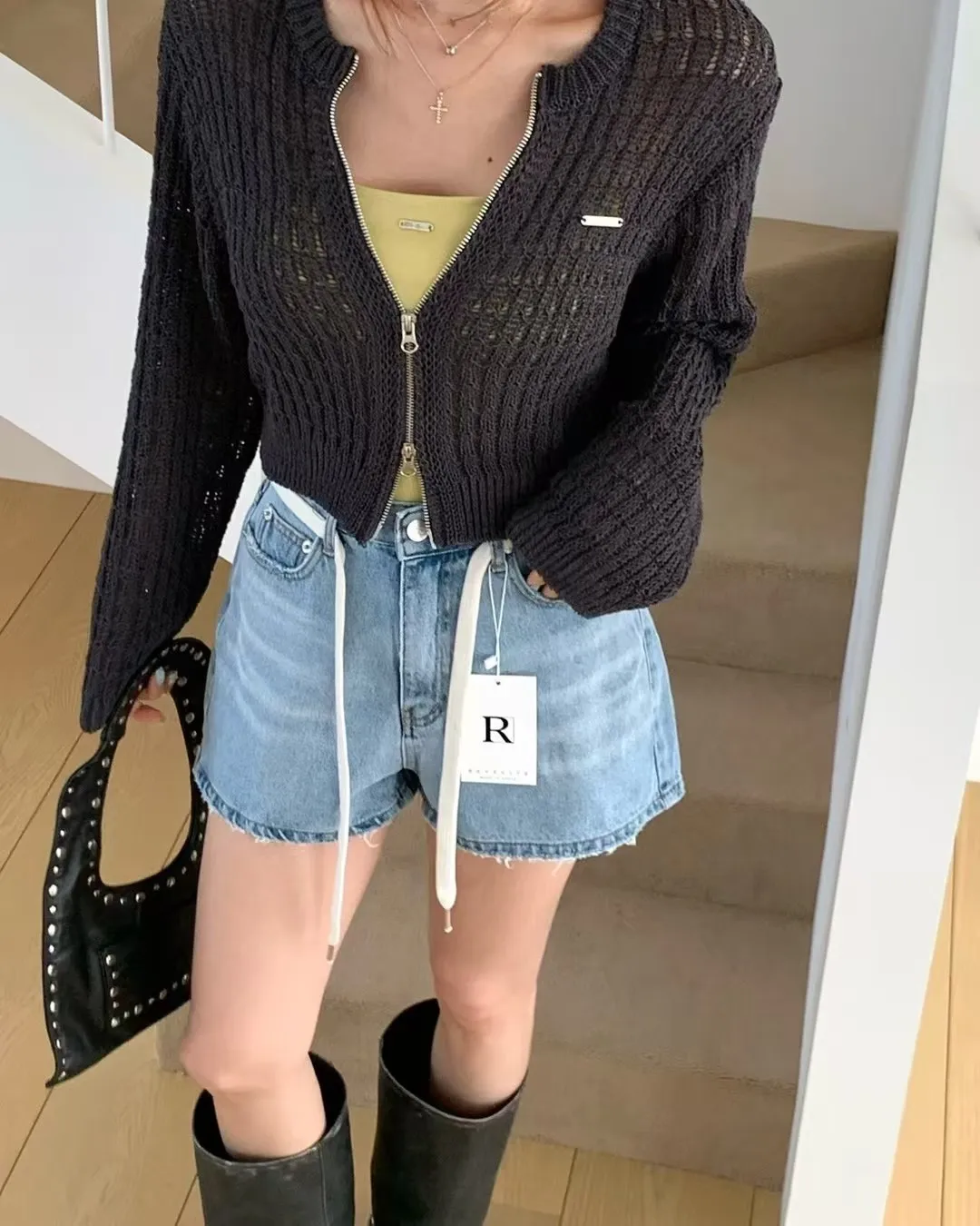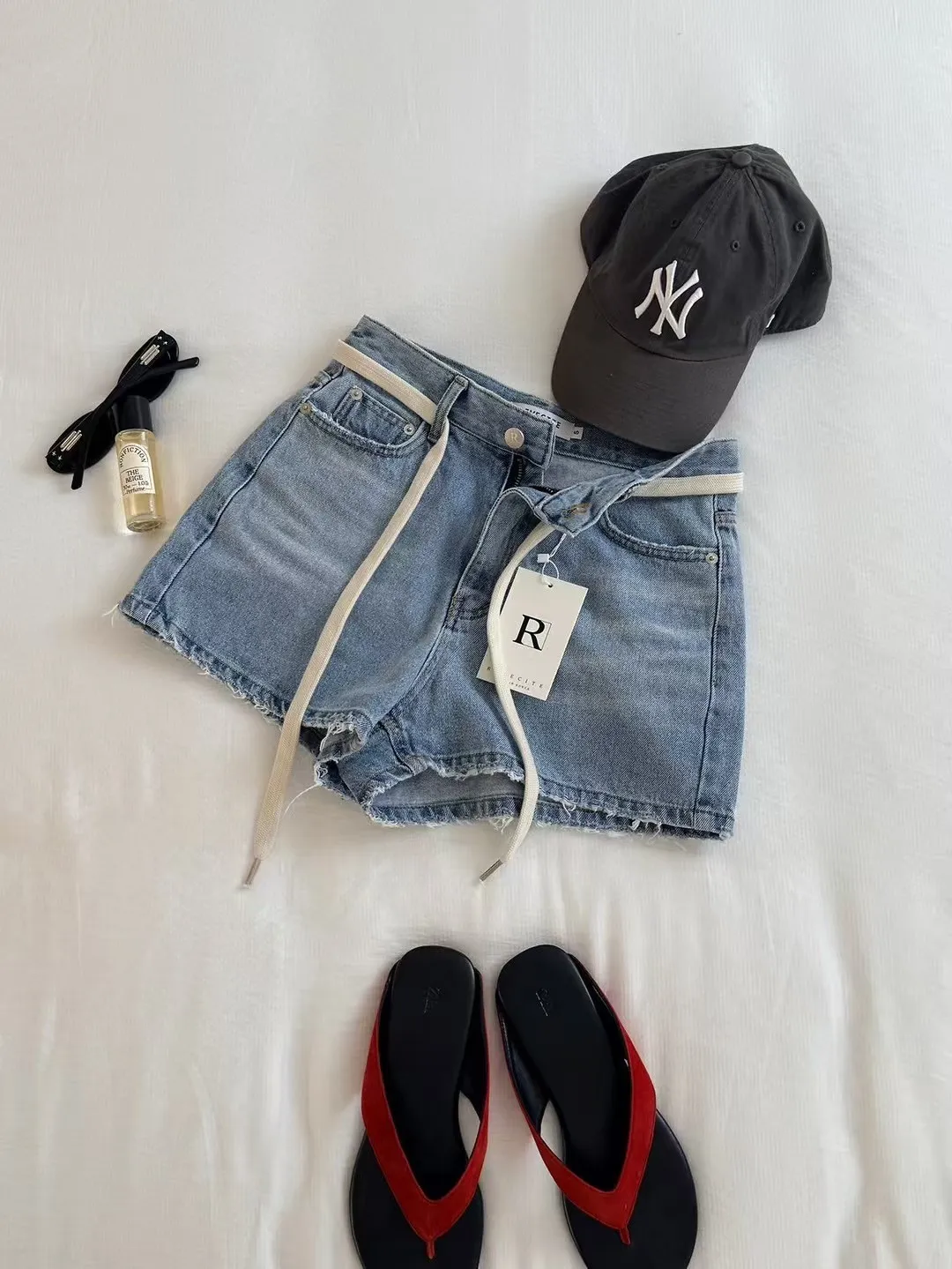 26EG12 腰繩洗色磨破牛仔短褲 SML