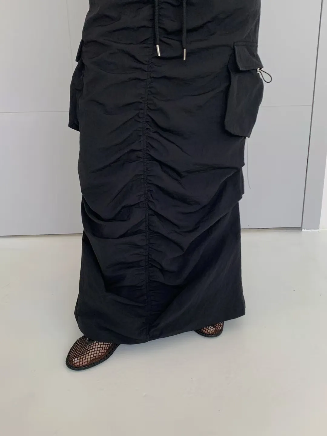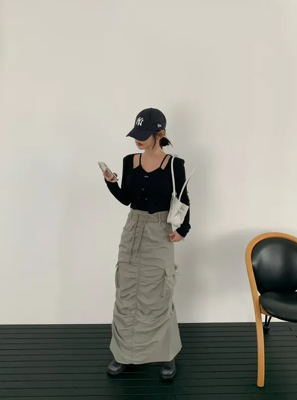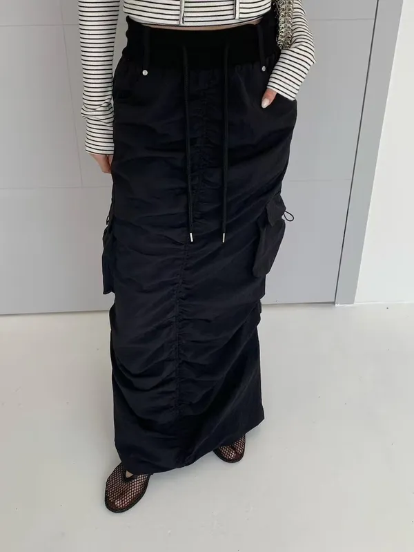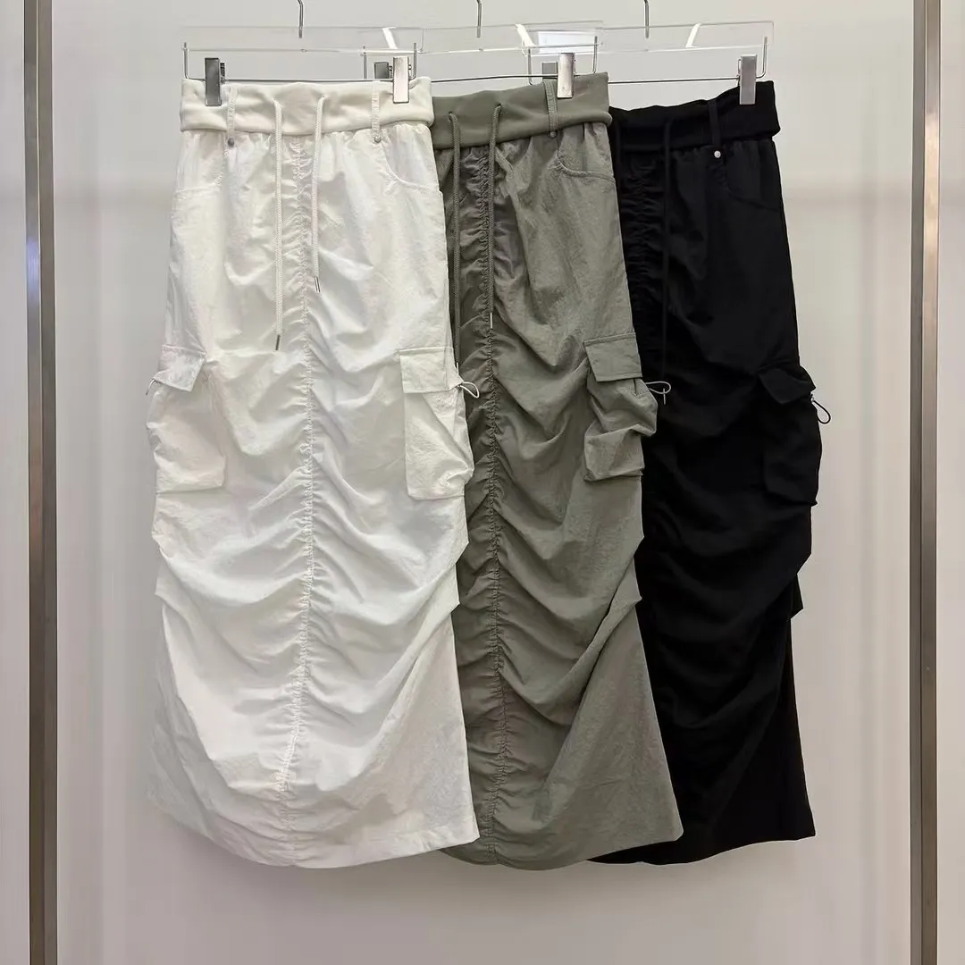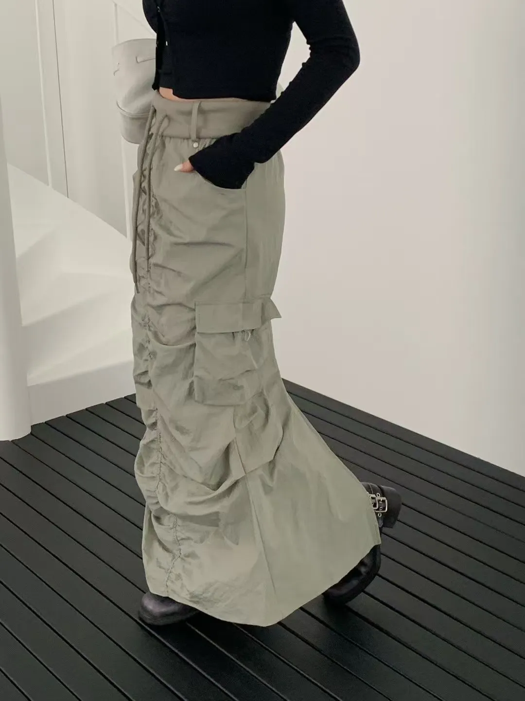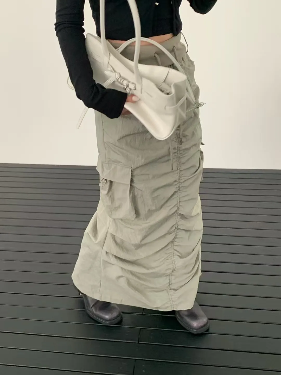 26EG14 鬆緊腰滑料堆堆長裙 3色