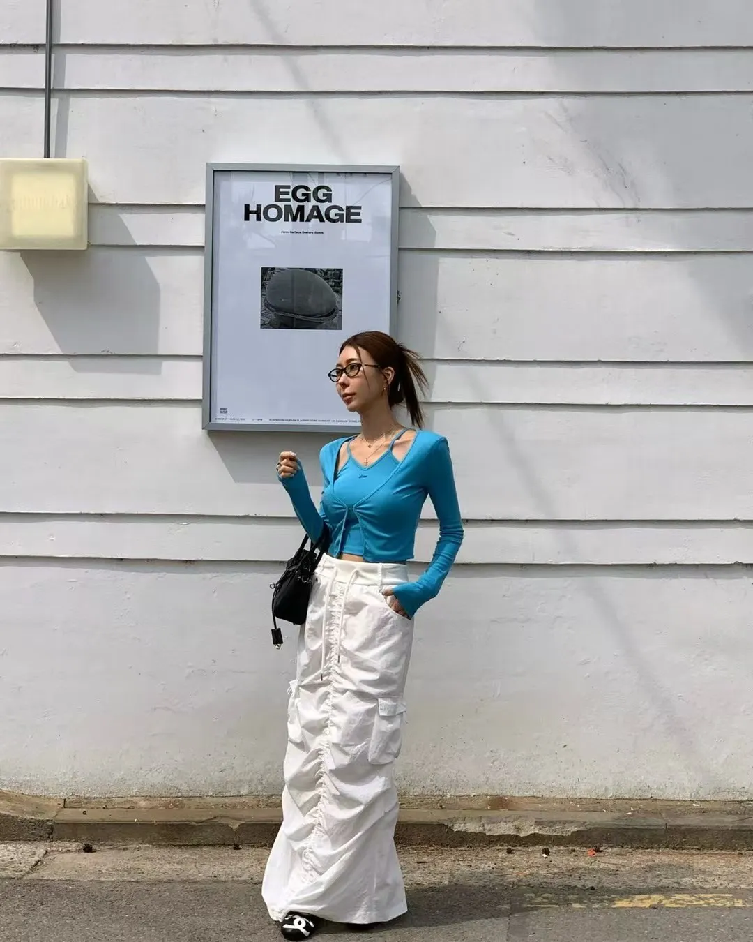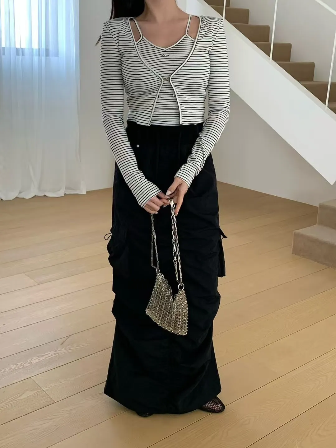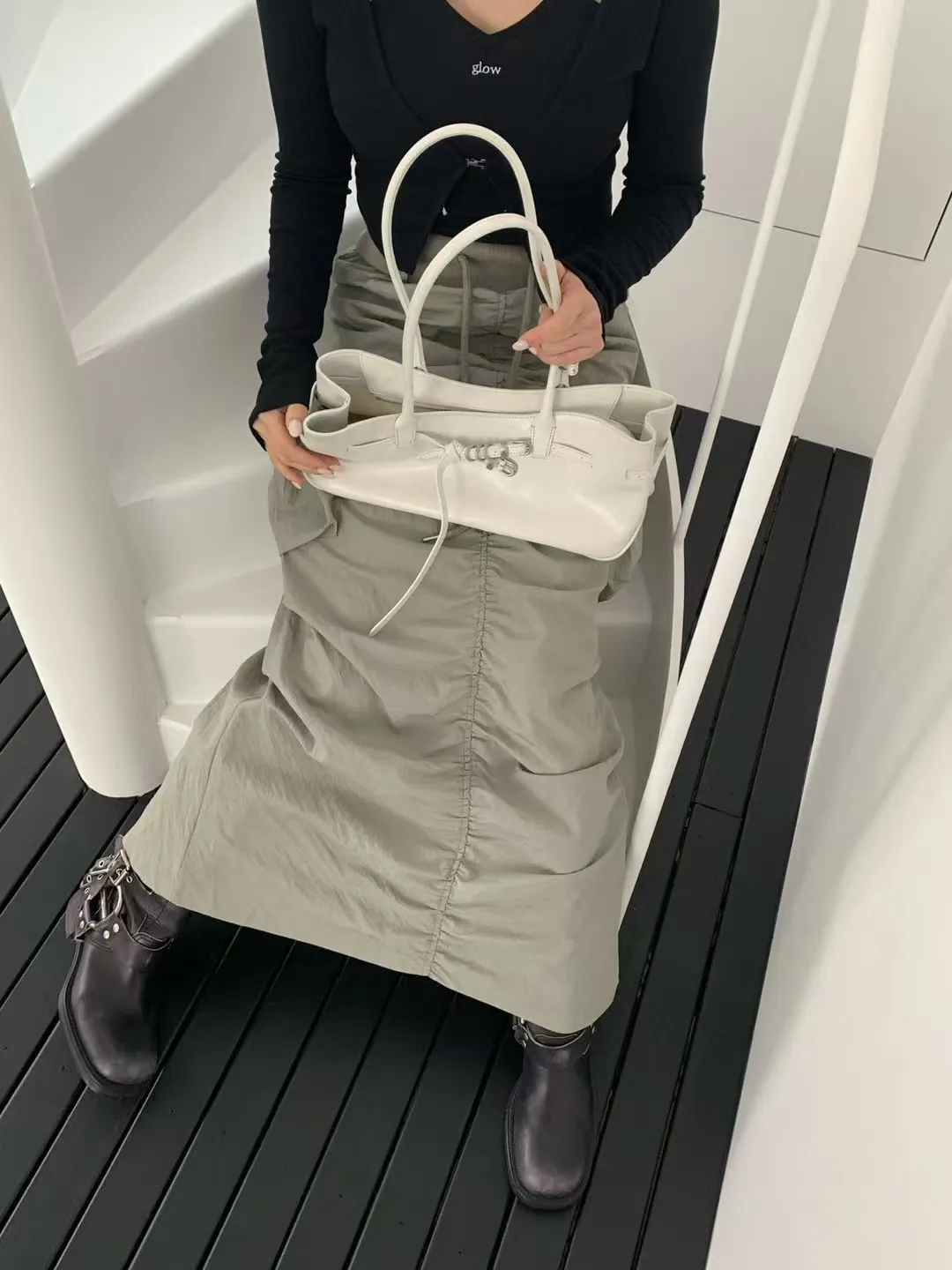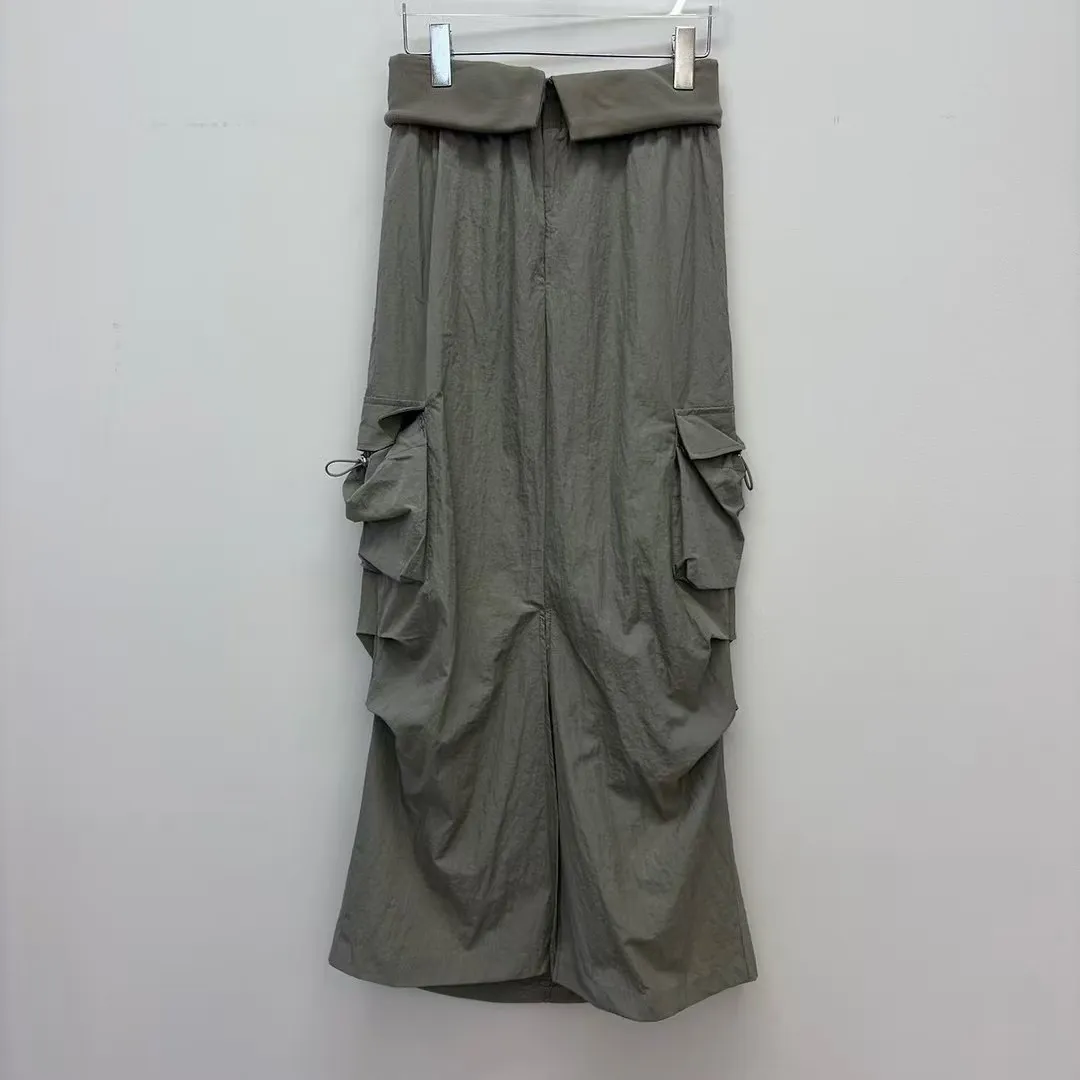 26EG14 鬆緊腰滑料堆堆長裙 3色