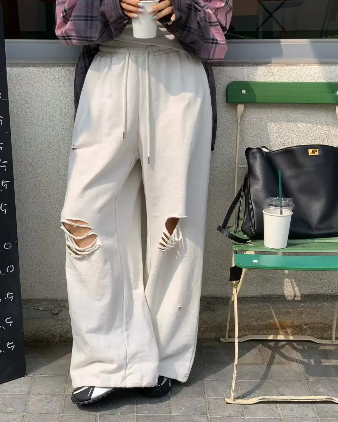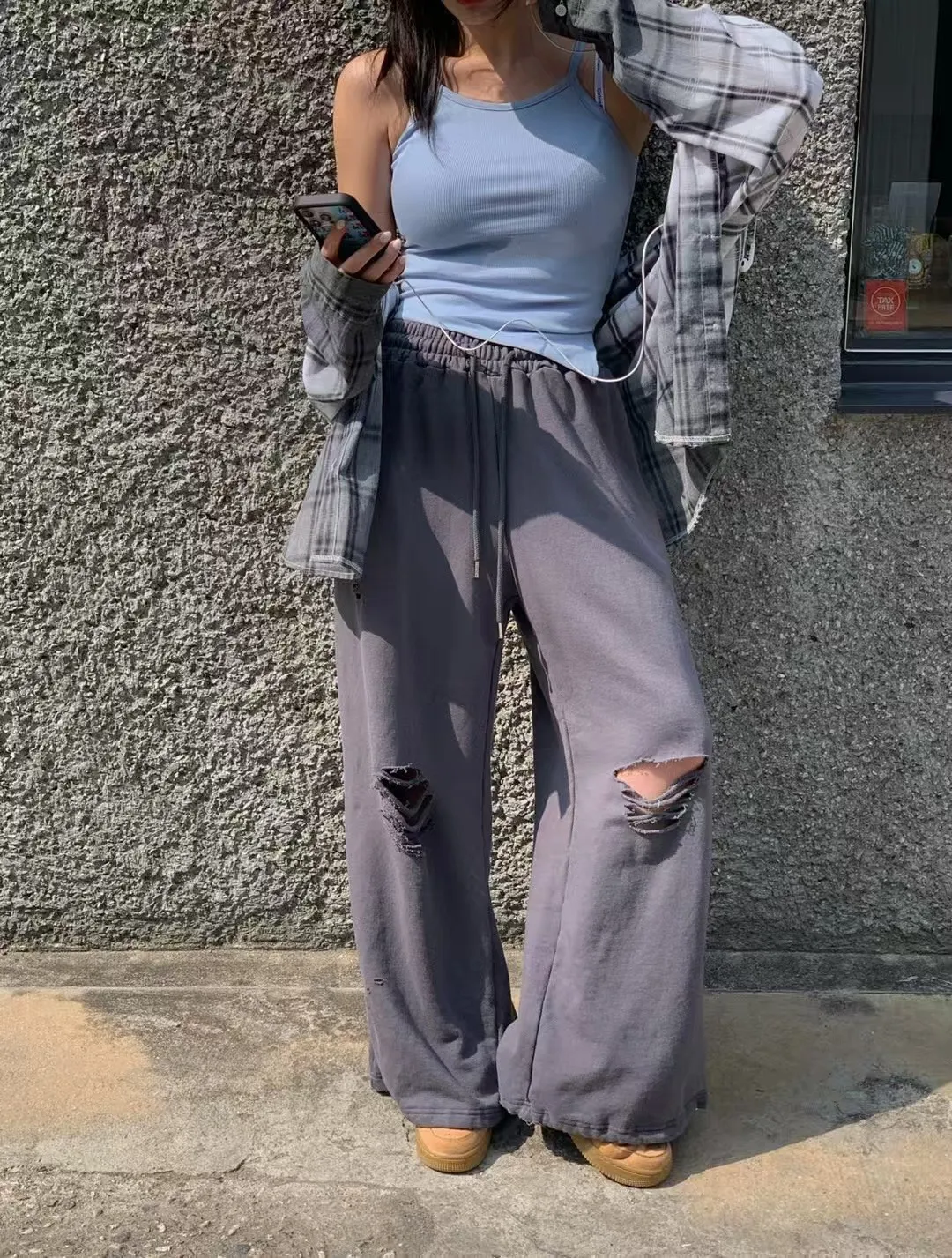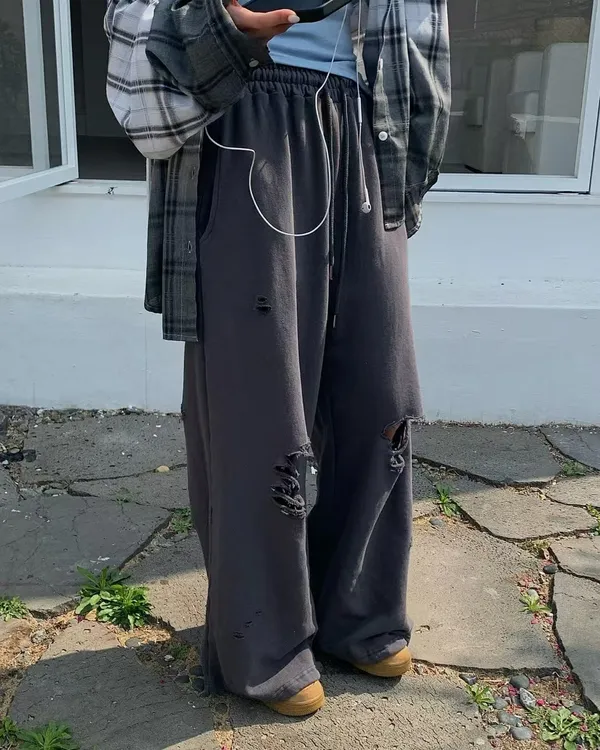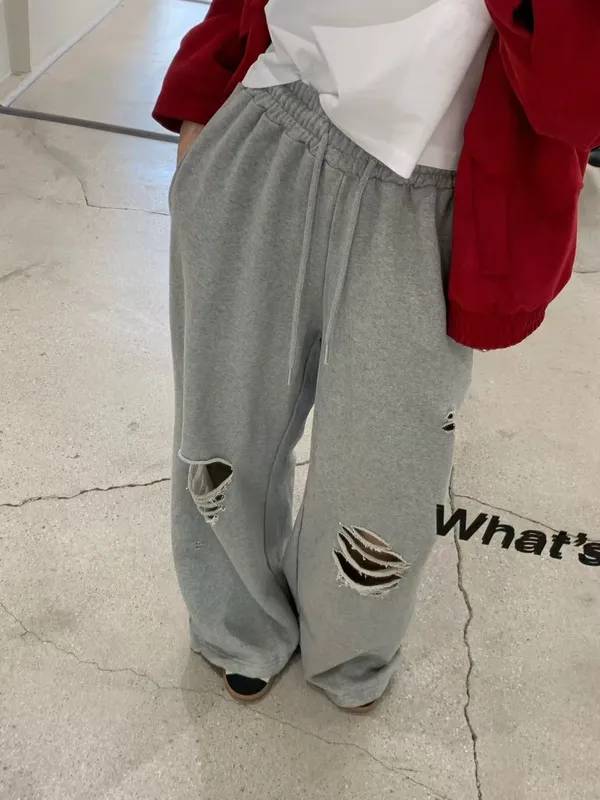 26EG21 薄毛巾破壞鬆緊兩穿縮腳棉長褲 3色