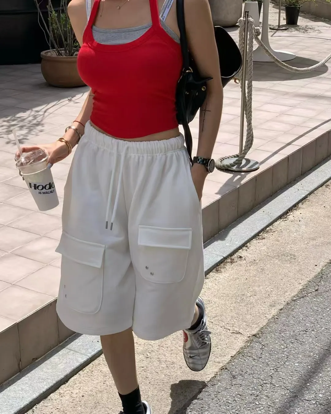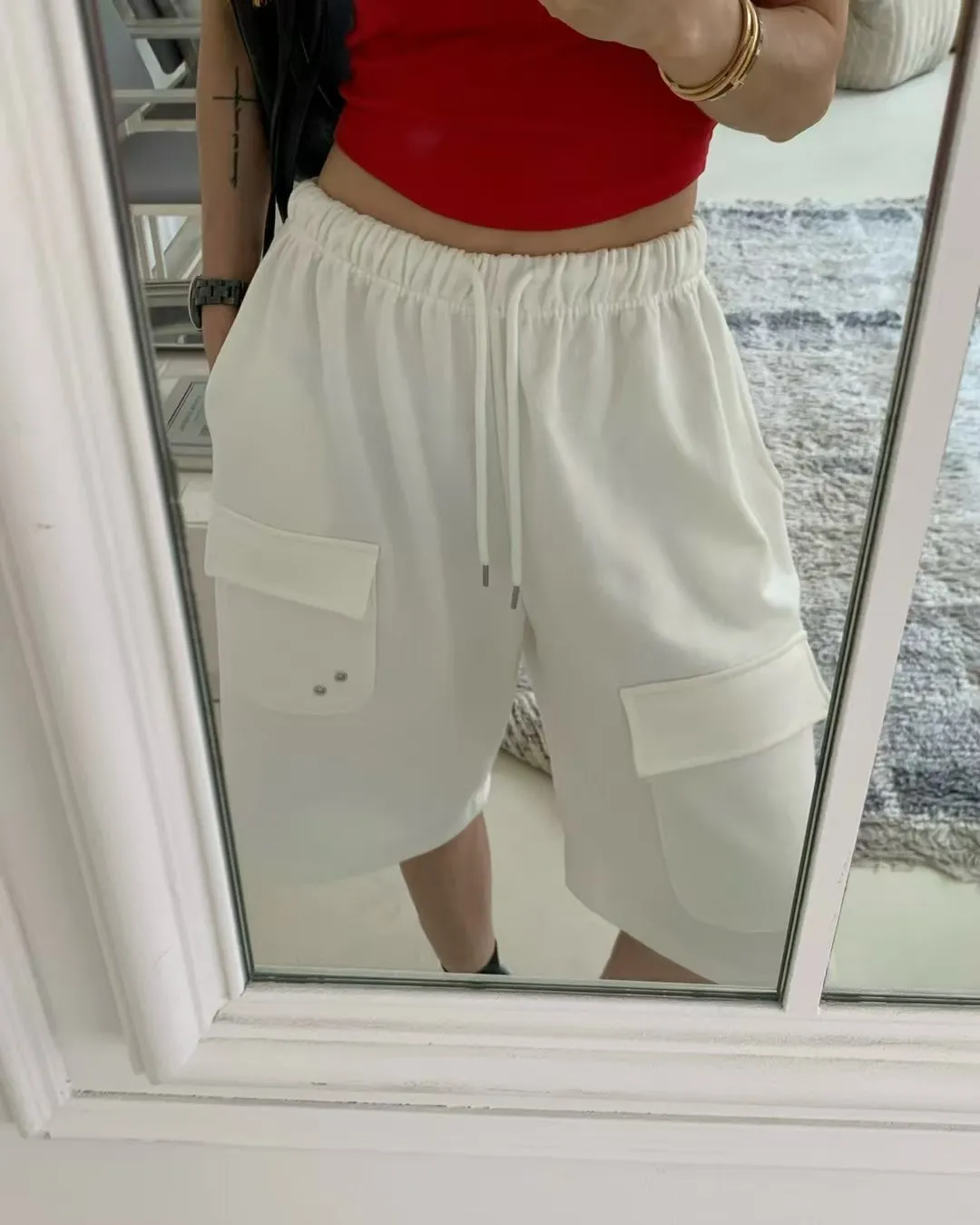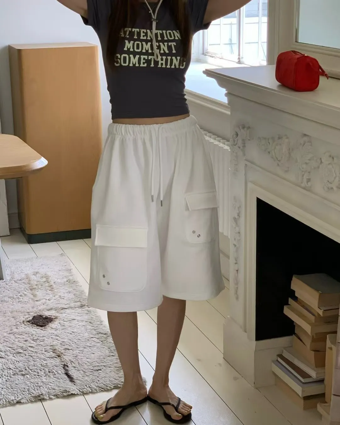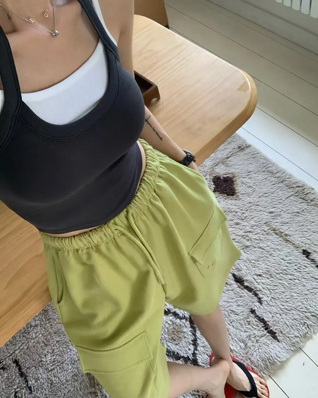26EG24 薄毛巾六分工裝棉褲 3色