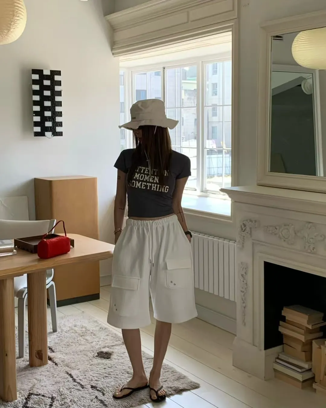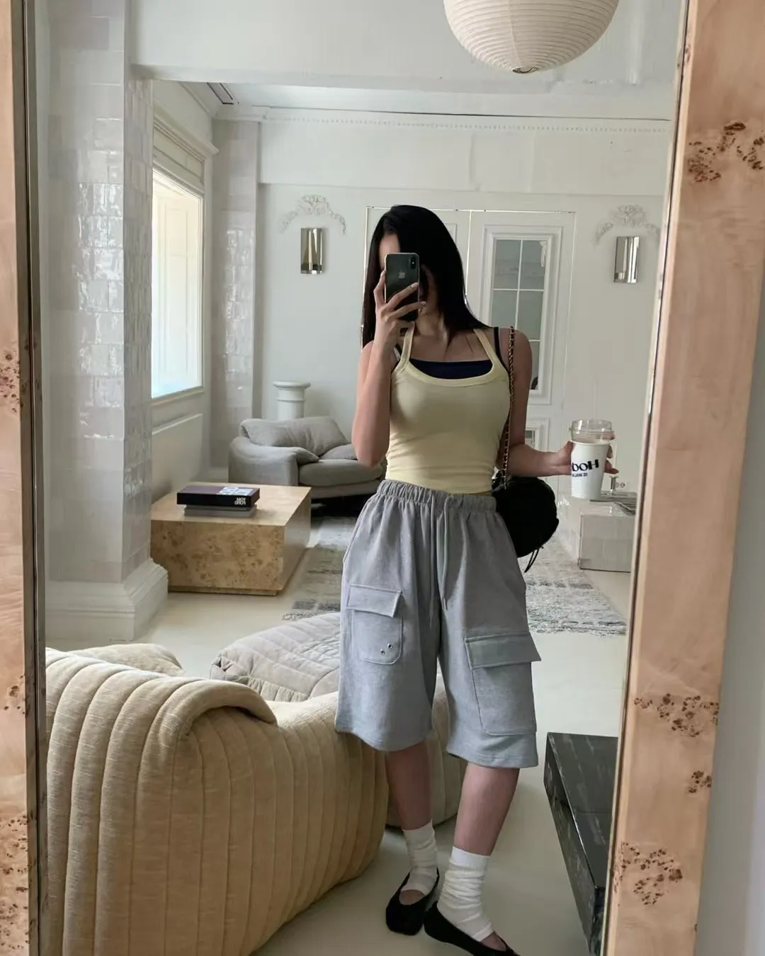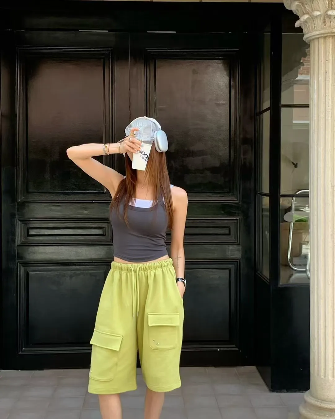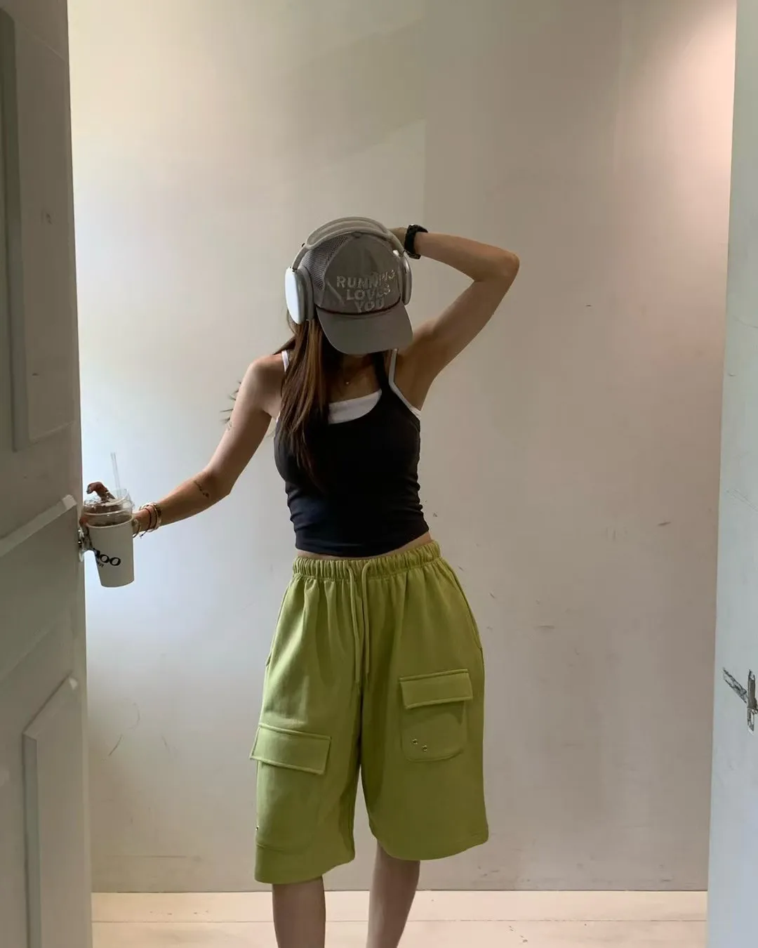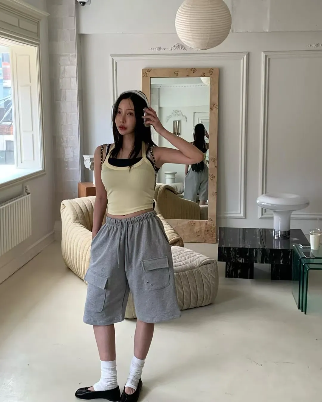 26EG24 薄毛巾六分工裝棉褲 3色