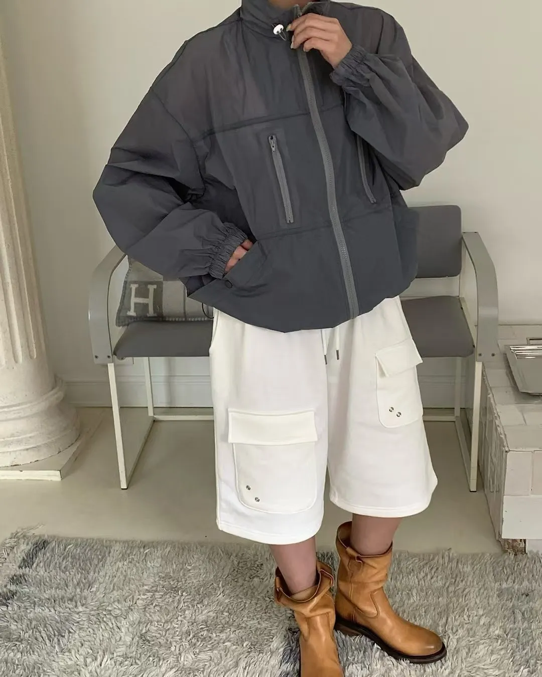 26EG25 尼龍滑料防風下縮繩外套 4色