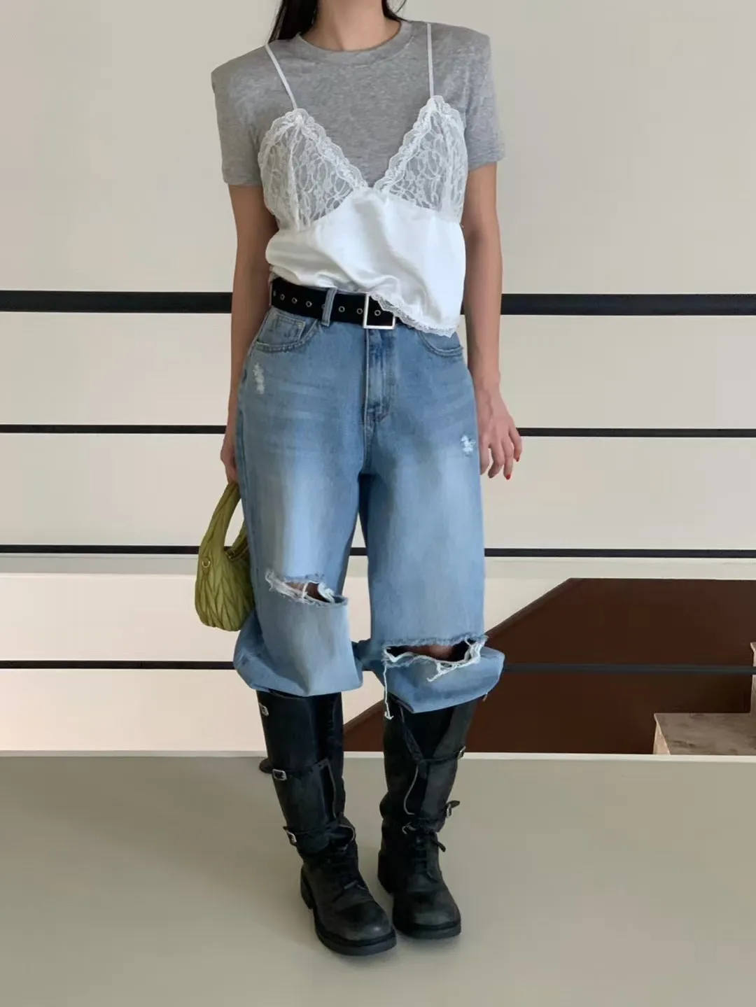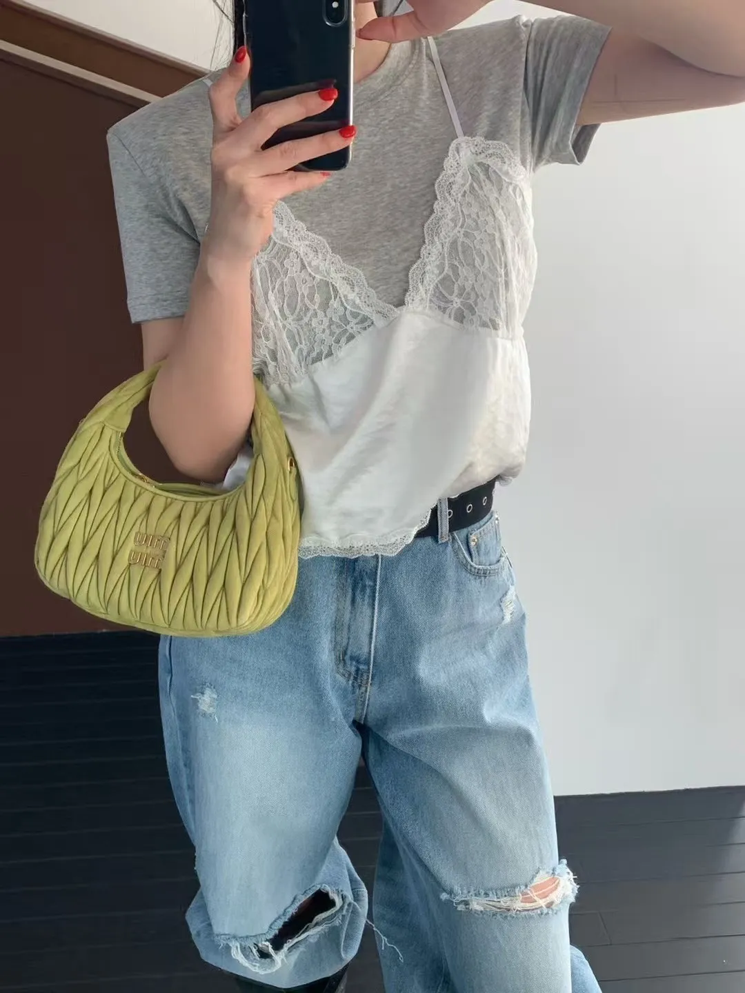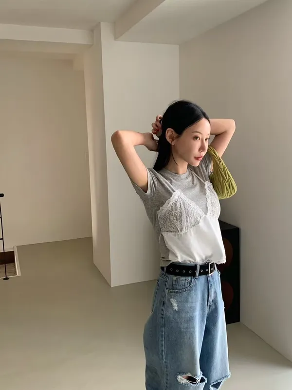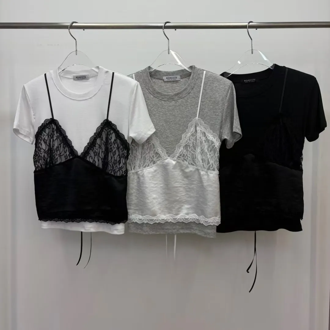 26EG30 (直播未介紹直接上架)假兩件蕾絲背心短T 3色