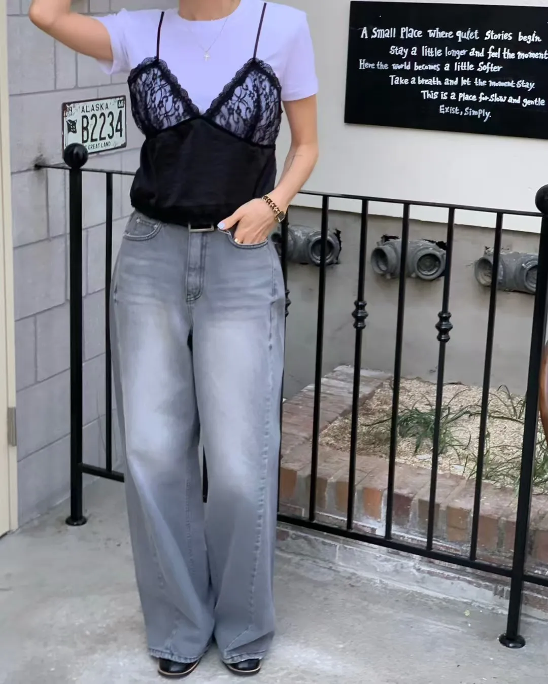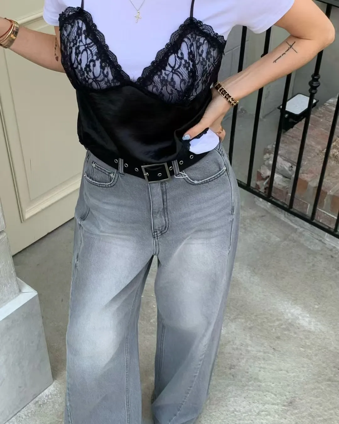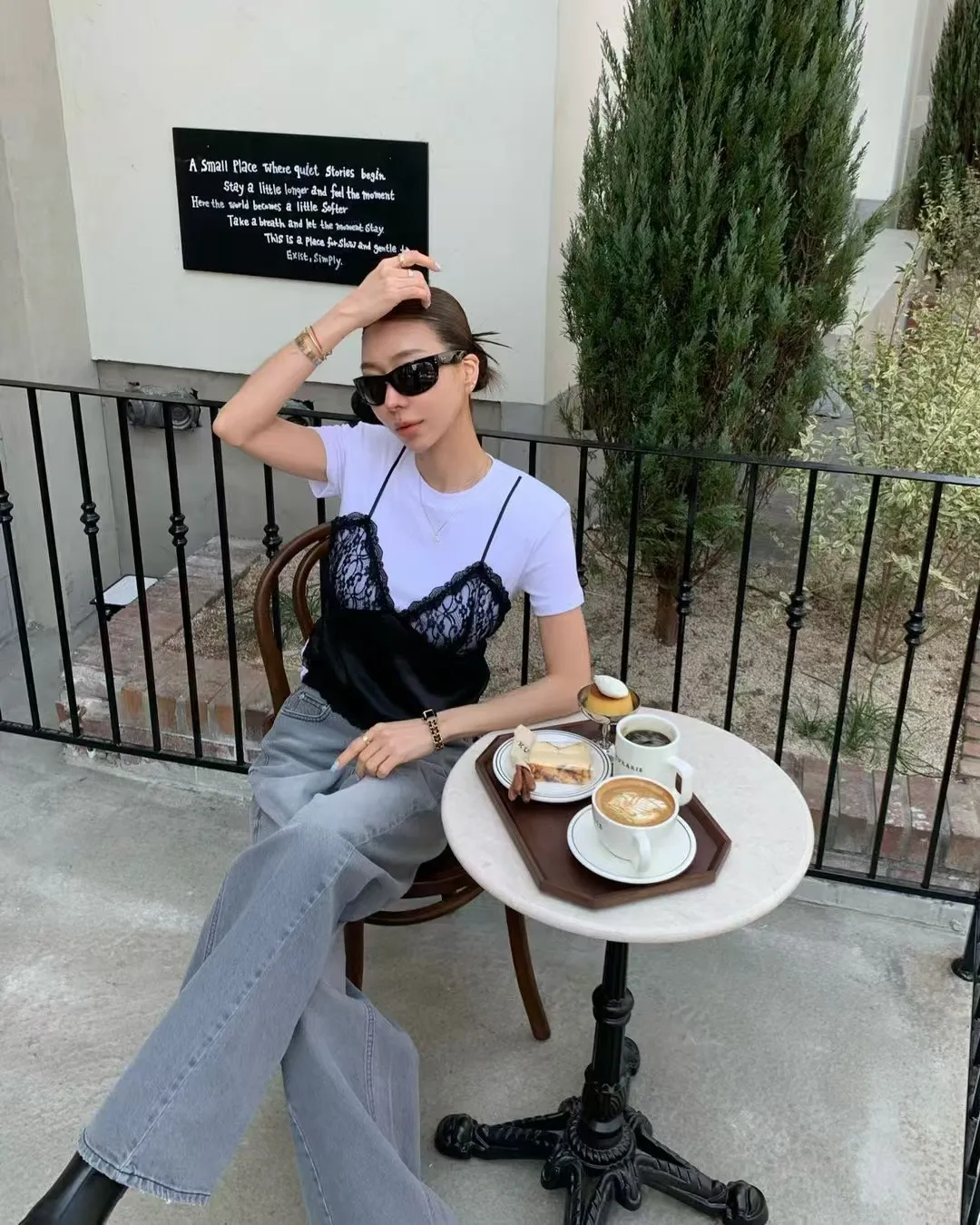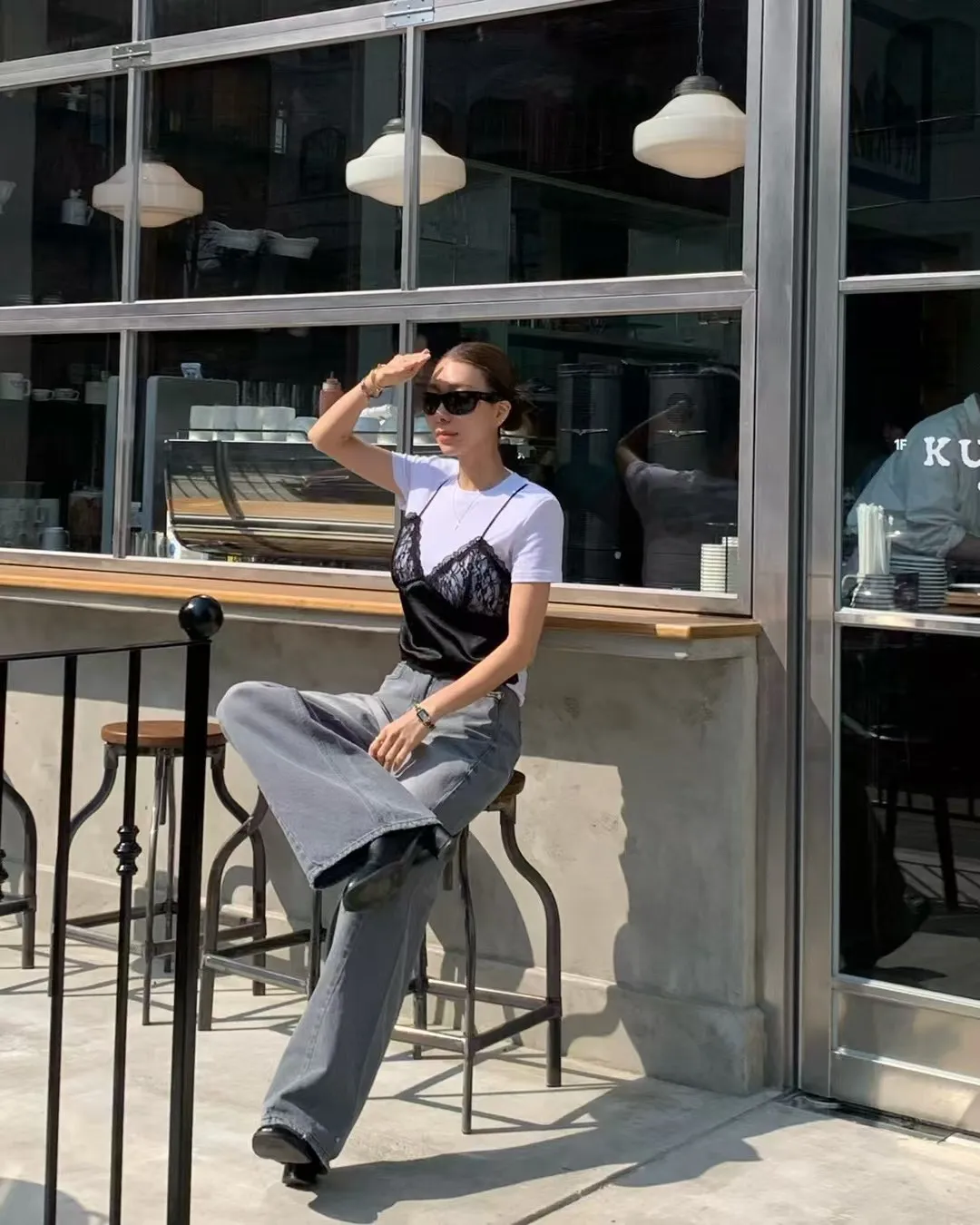 26EG30 (直播未介紹直接上架)假兩件蕾絲背心短T 3色