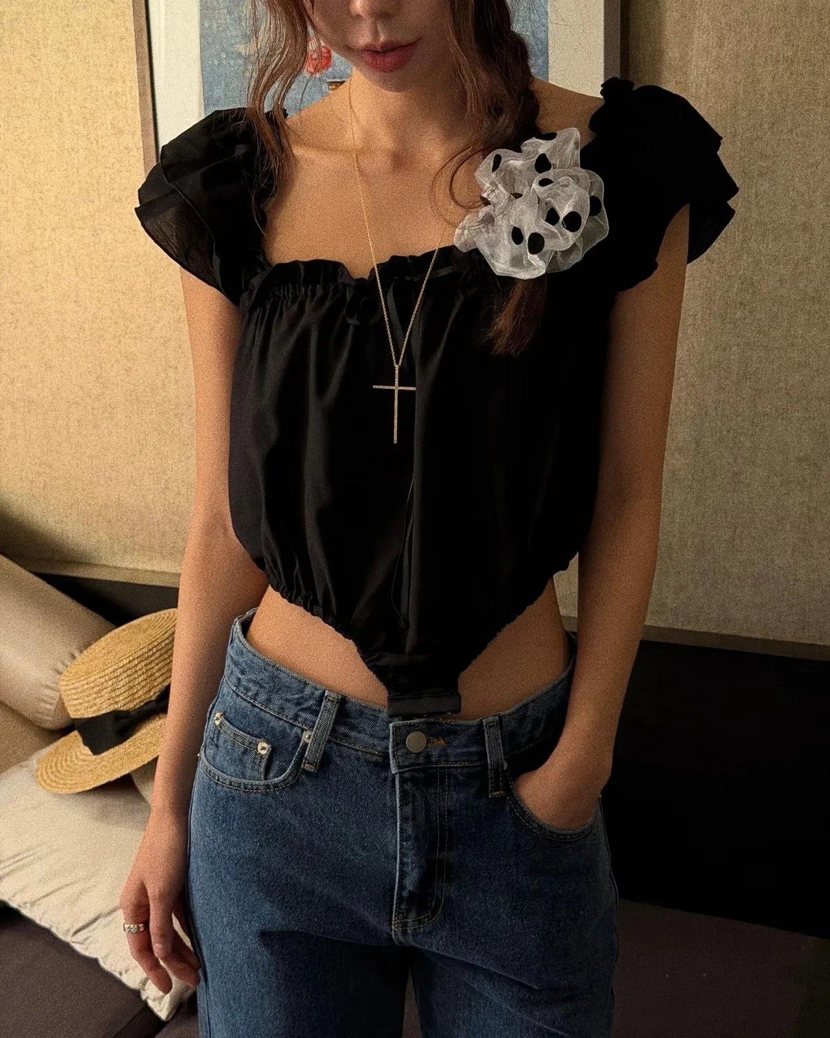 26EH11 短版公主包袖一字可愛包屁衣 3色