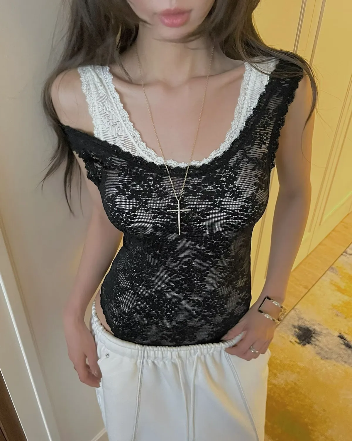 26EH14 彈力透透蕾絲包屁背心 4色