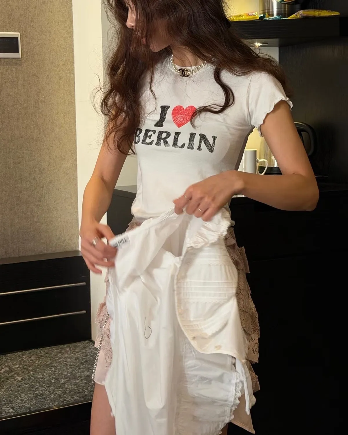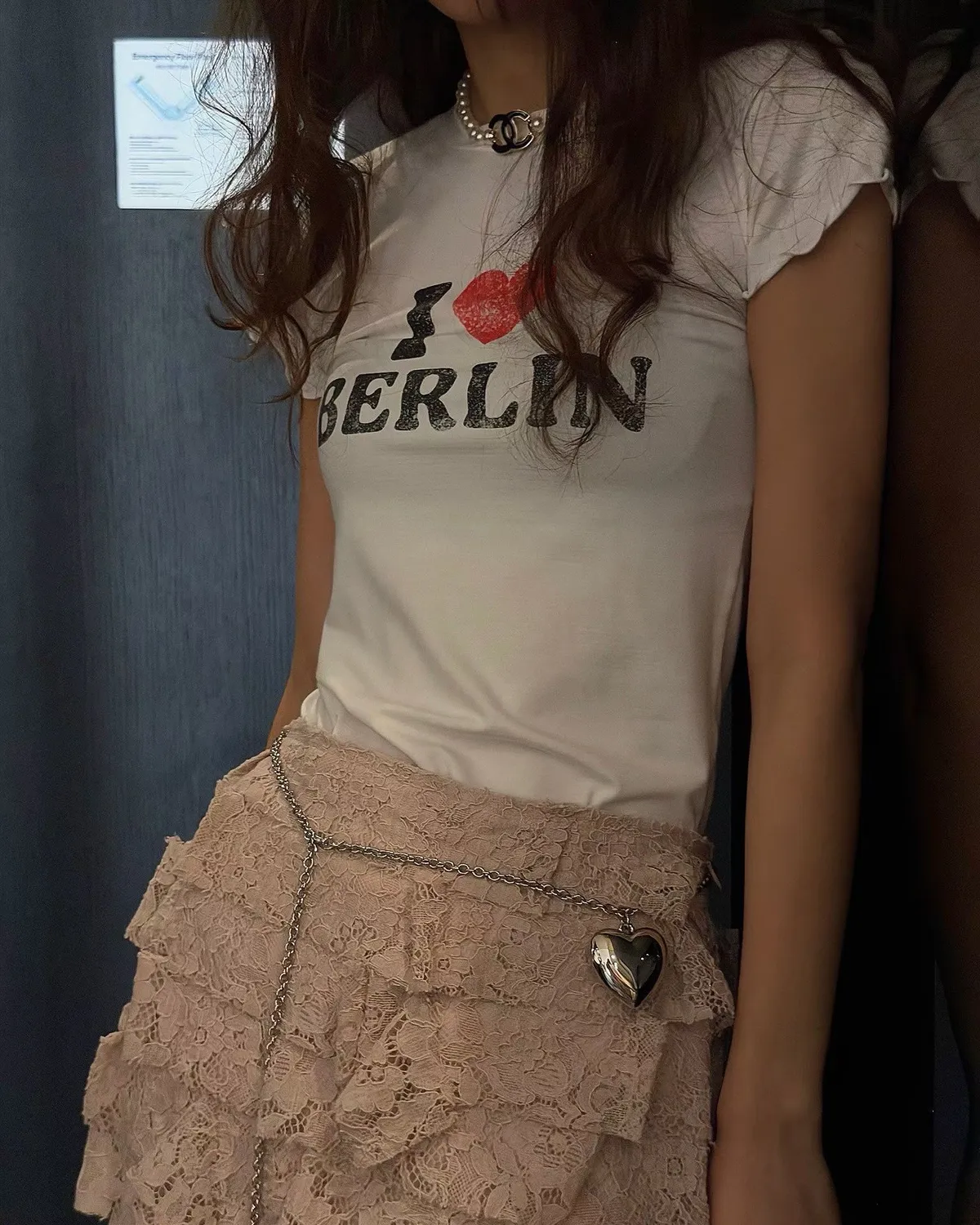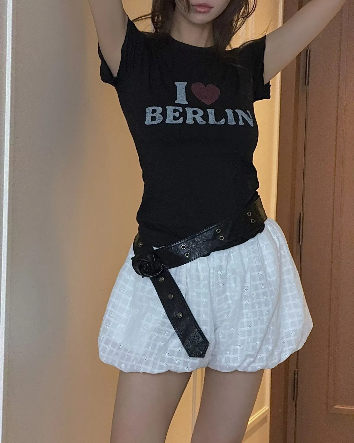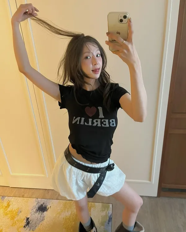 26EH18 英字合身彈力愛心木耳滾邊短T 2色