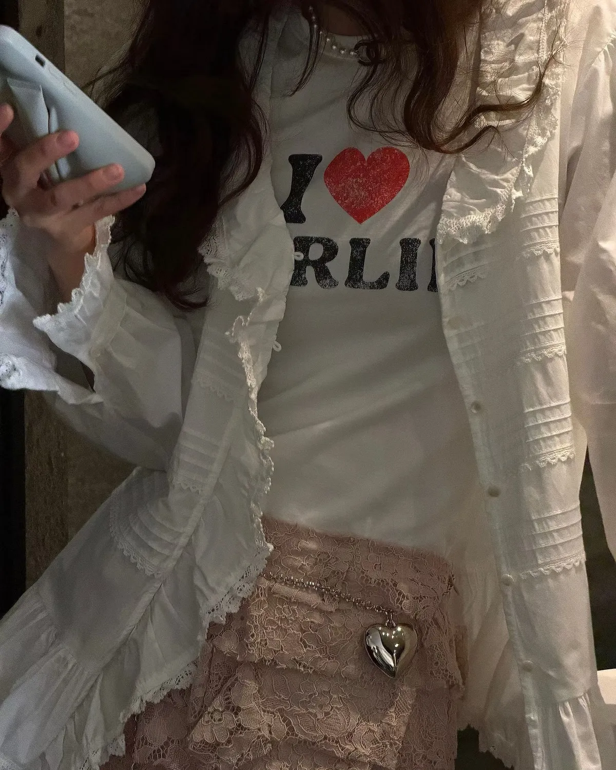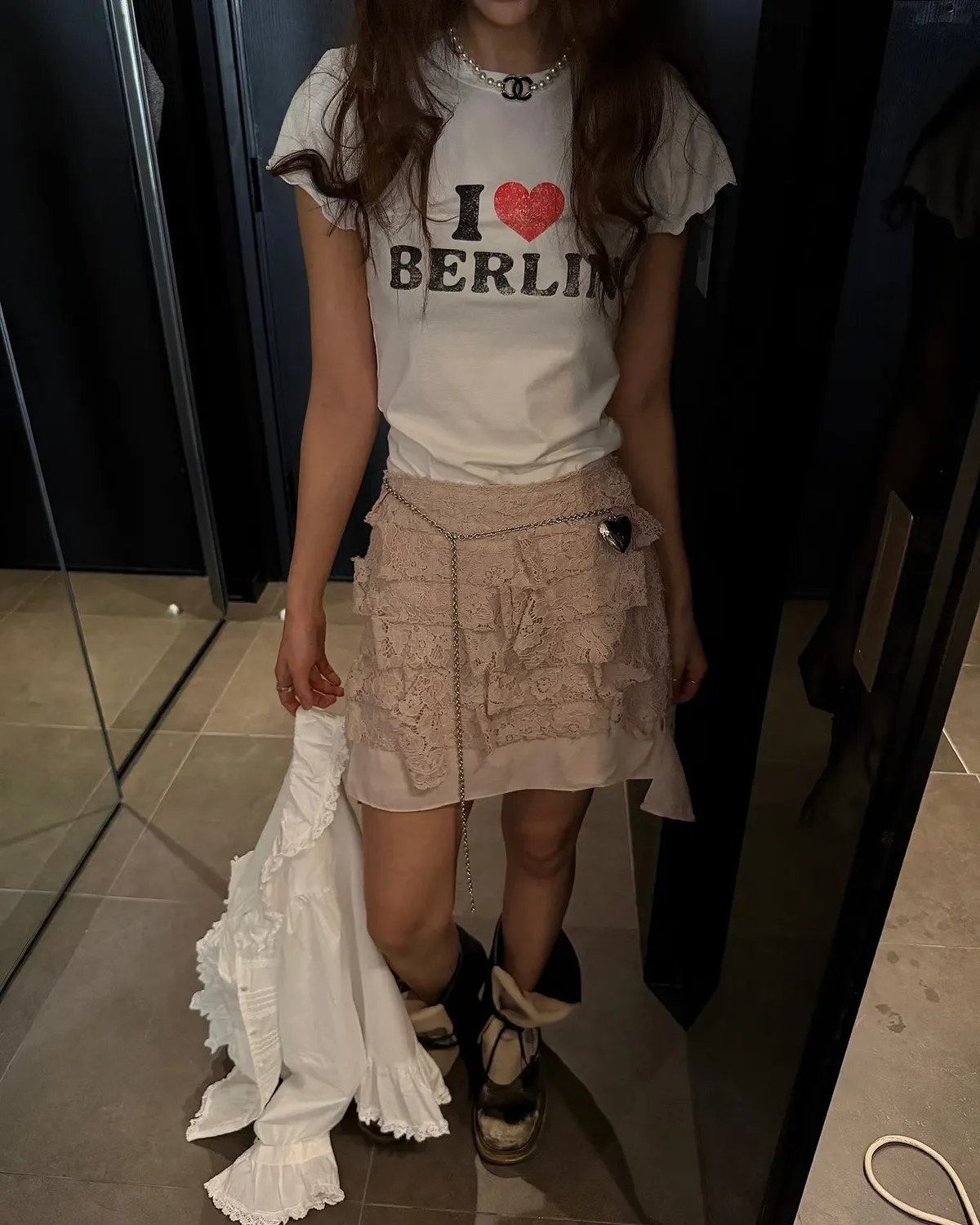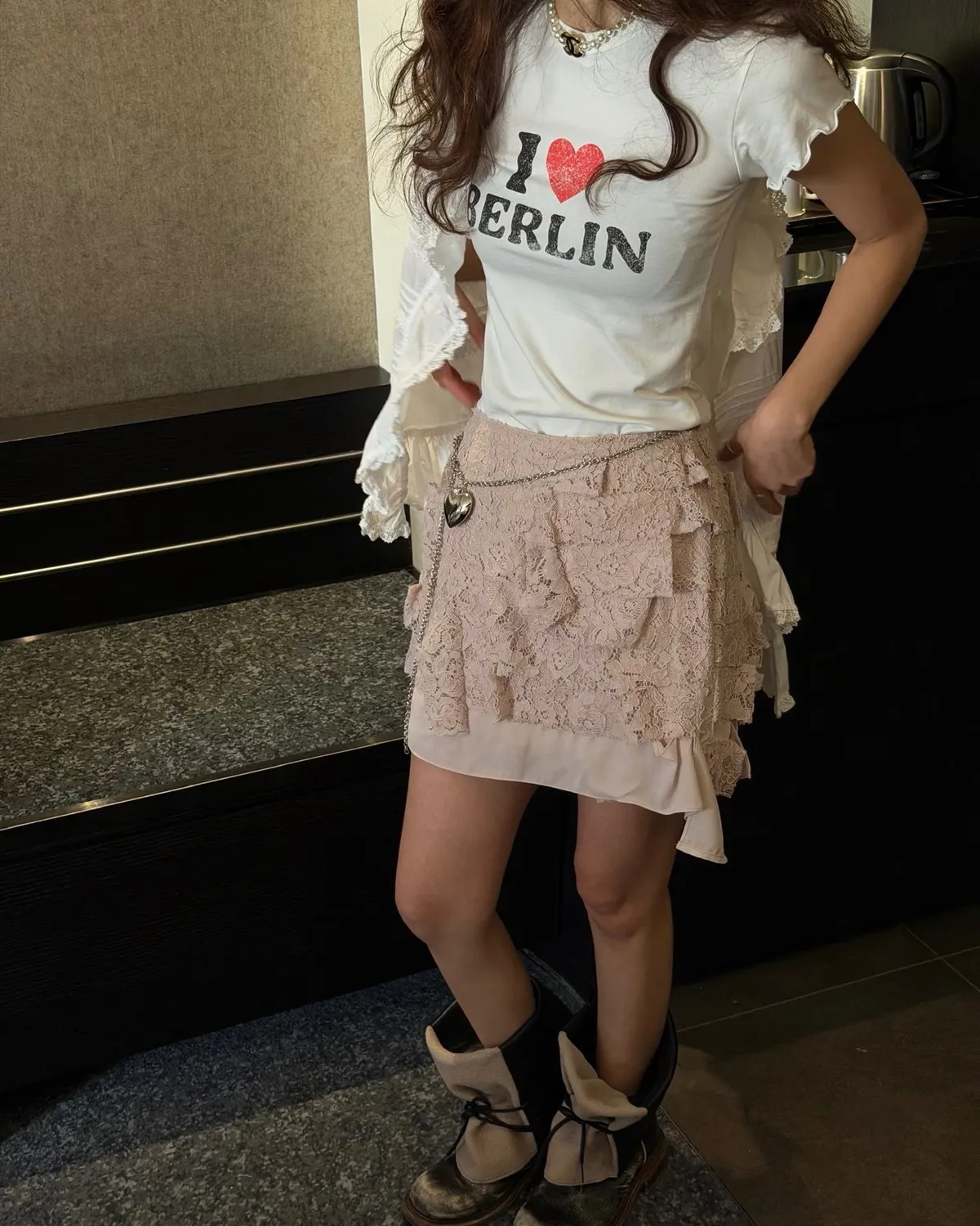26EH18 英字合身彈力愛心木耳滾邊短T 2色