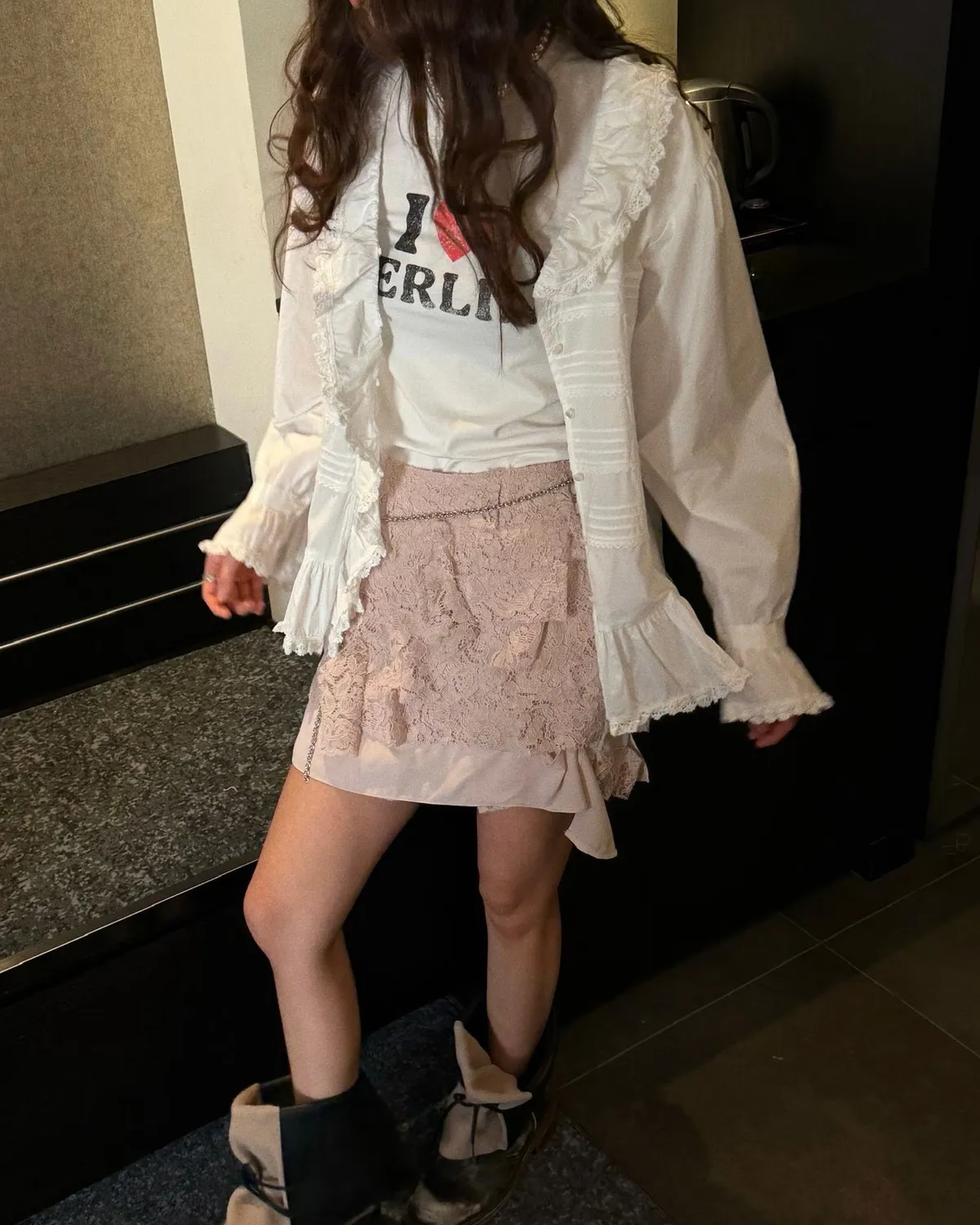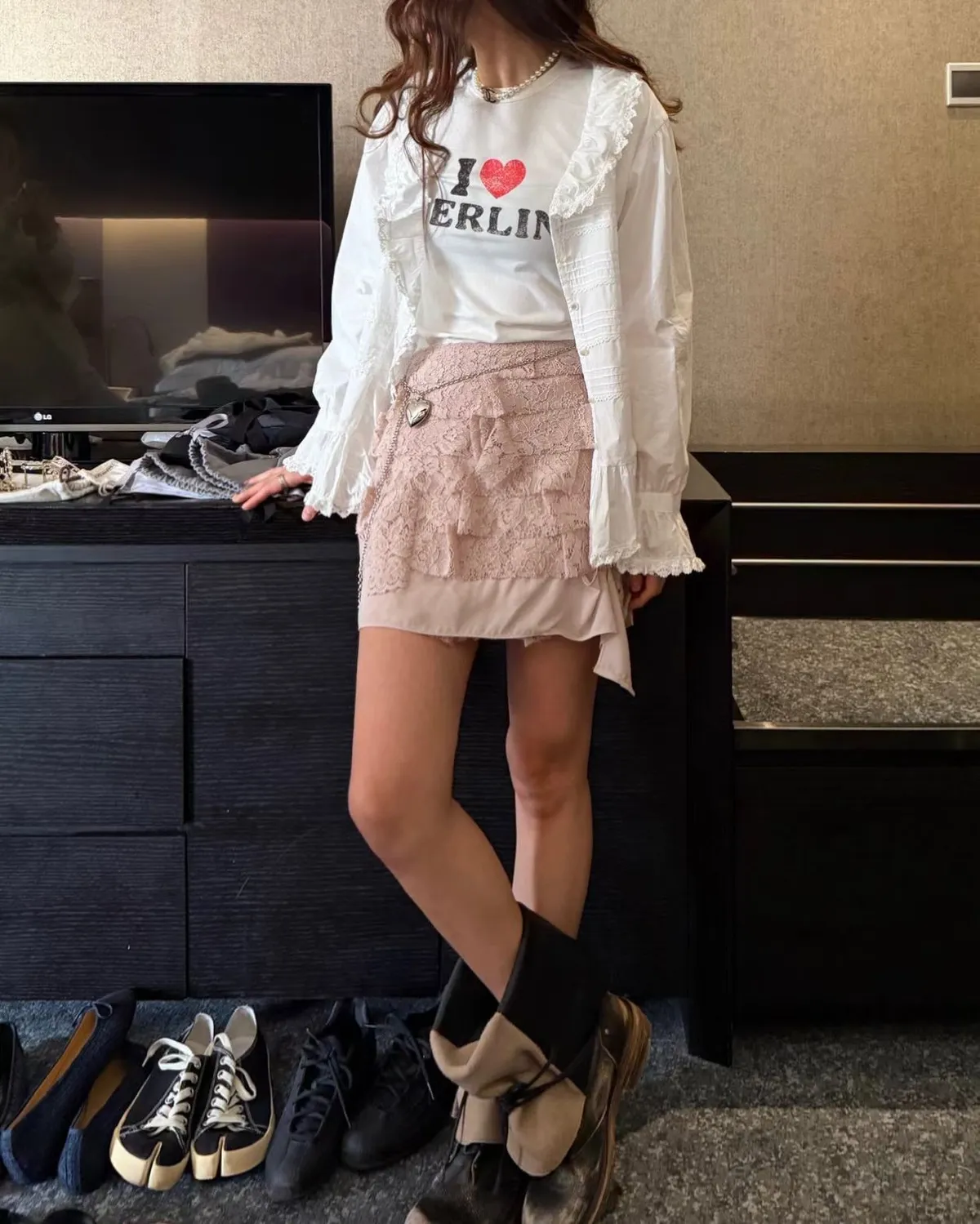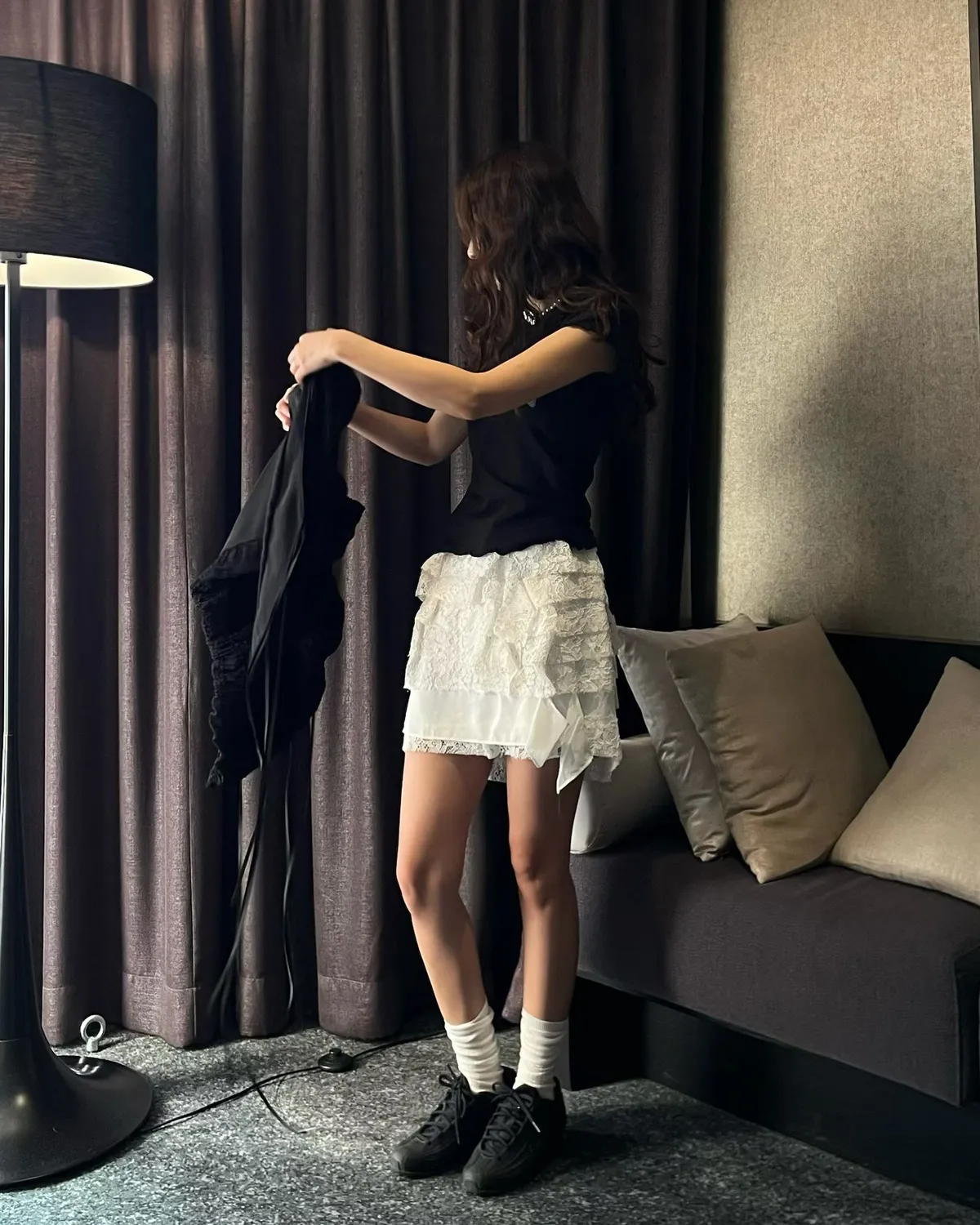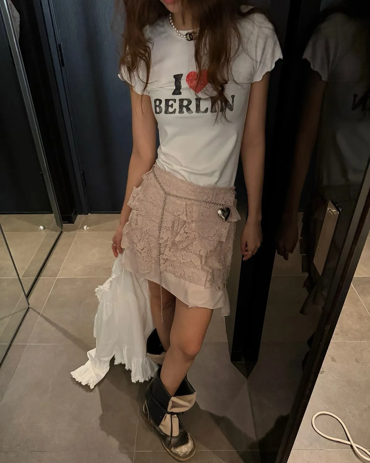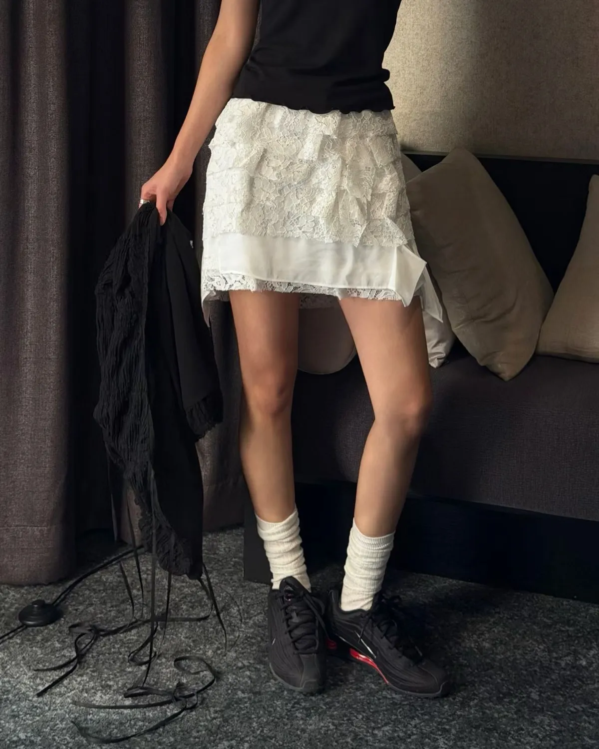 26EH19 多層次軟彈力蕾絲短裙 3色