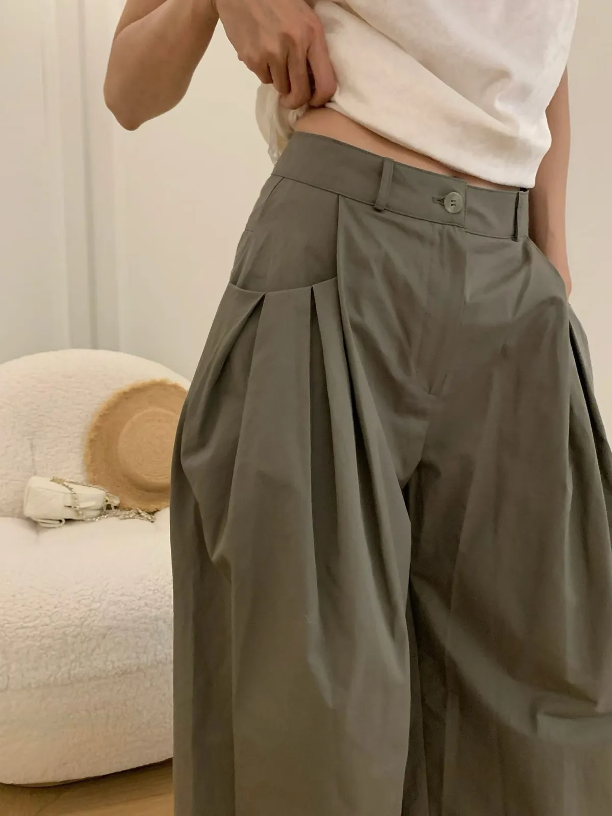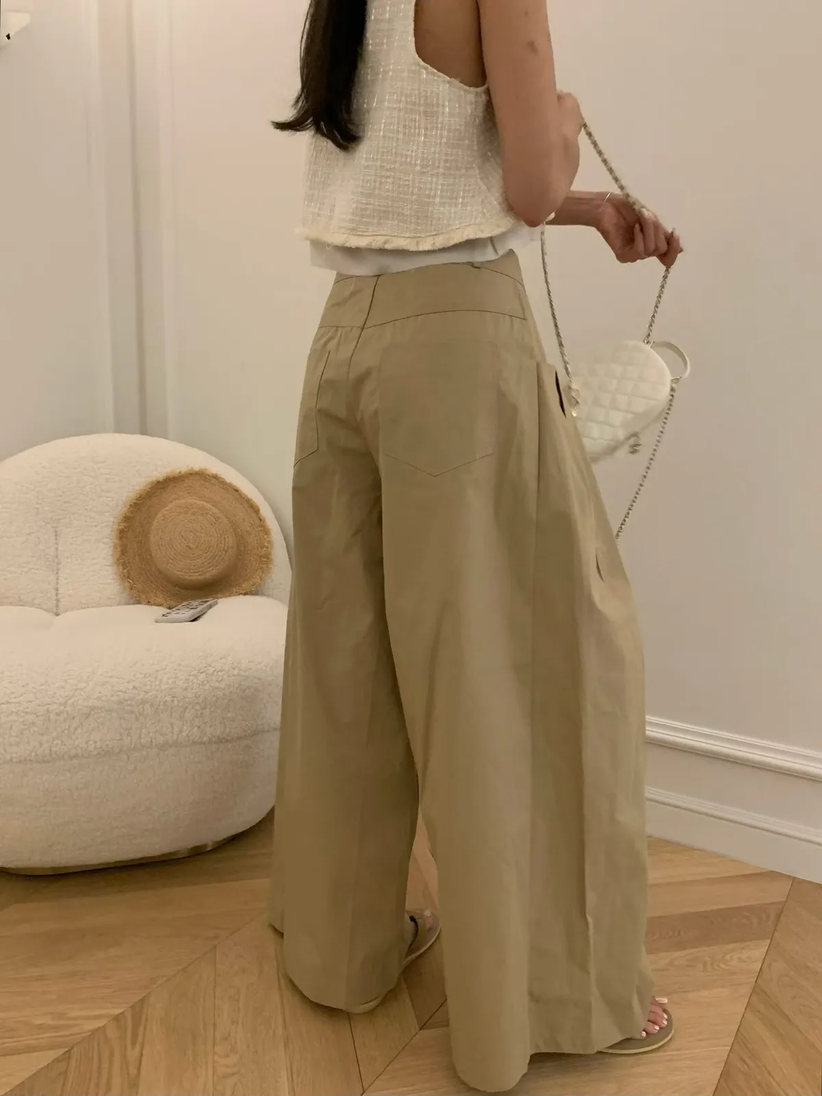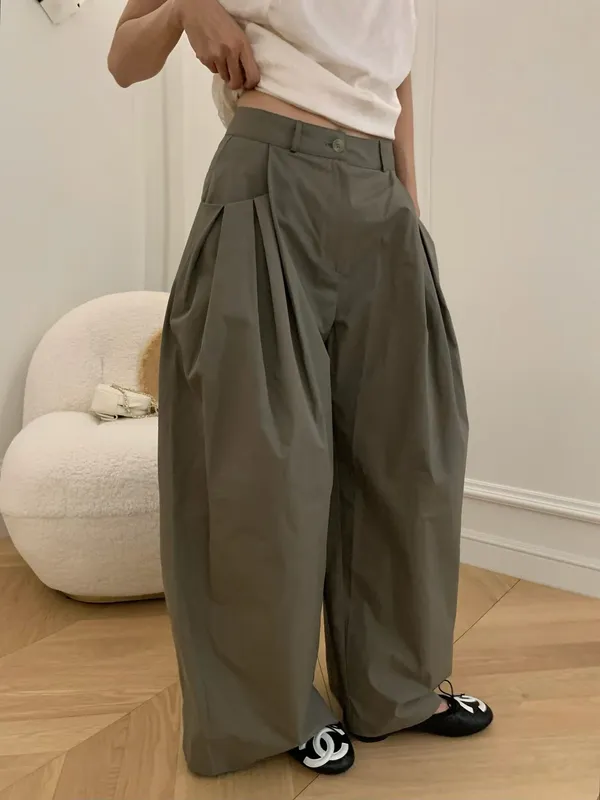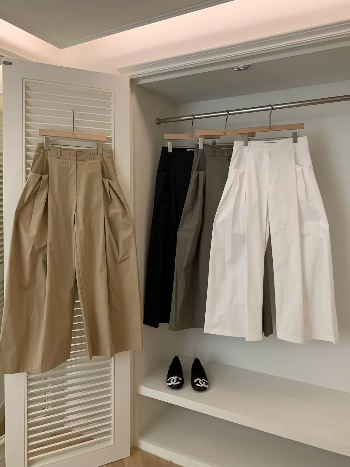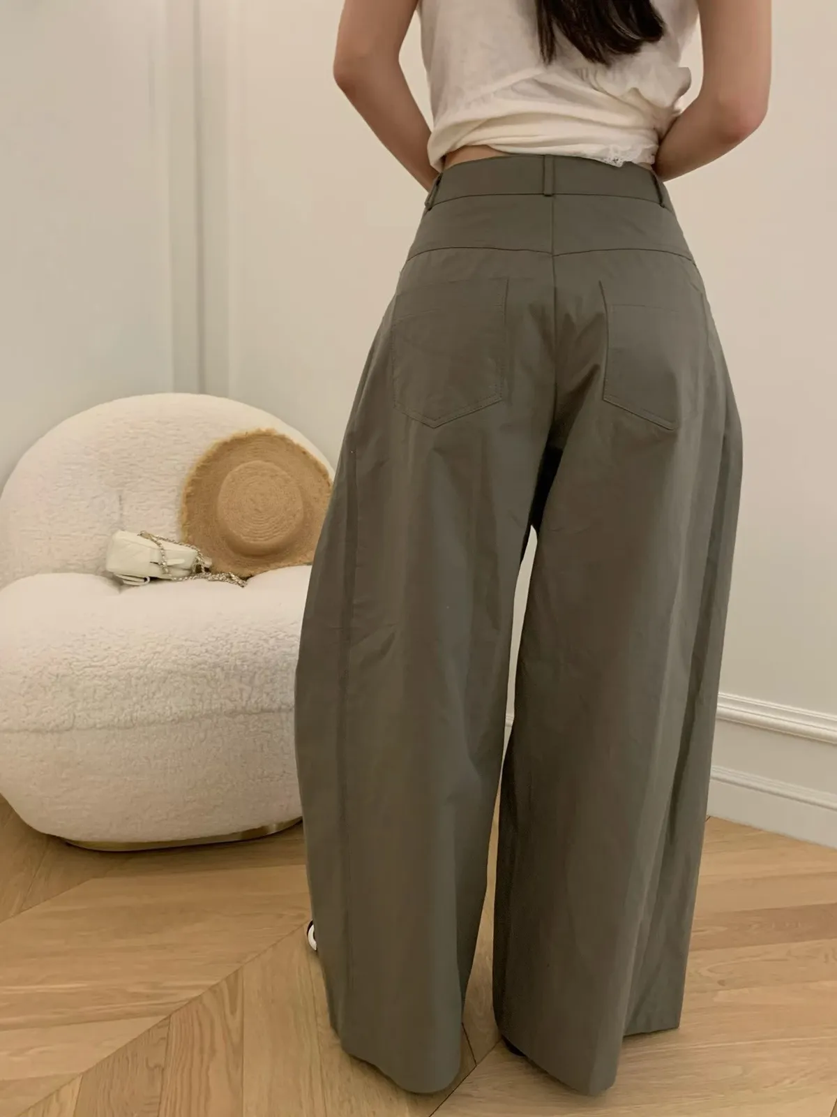 26EI08 多打褶中低腰密織線挺料長褲 4色 SM