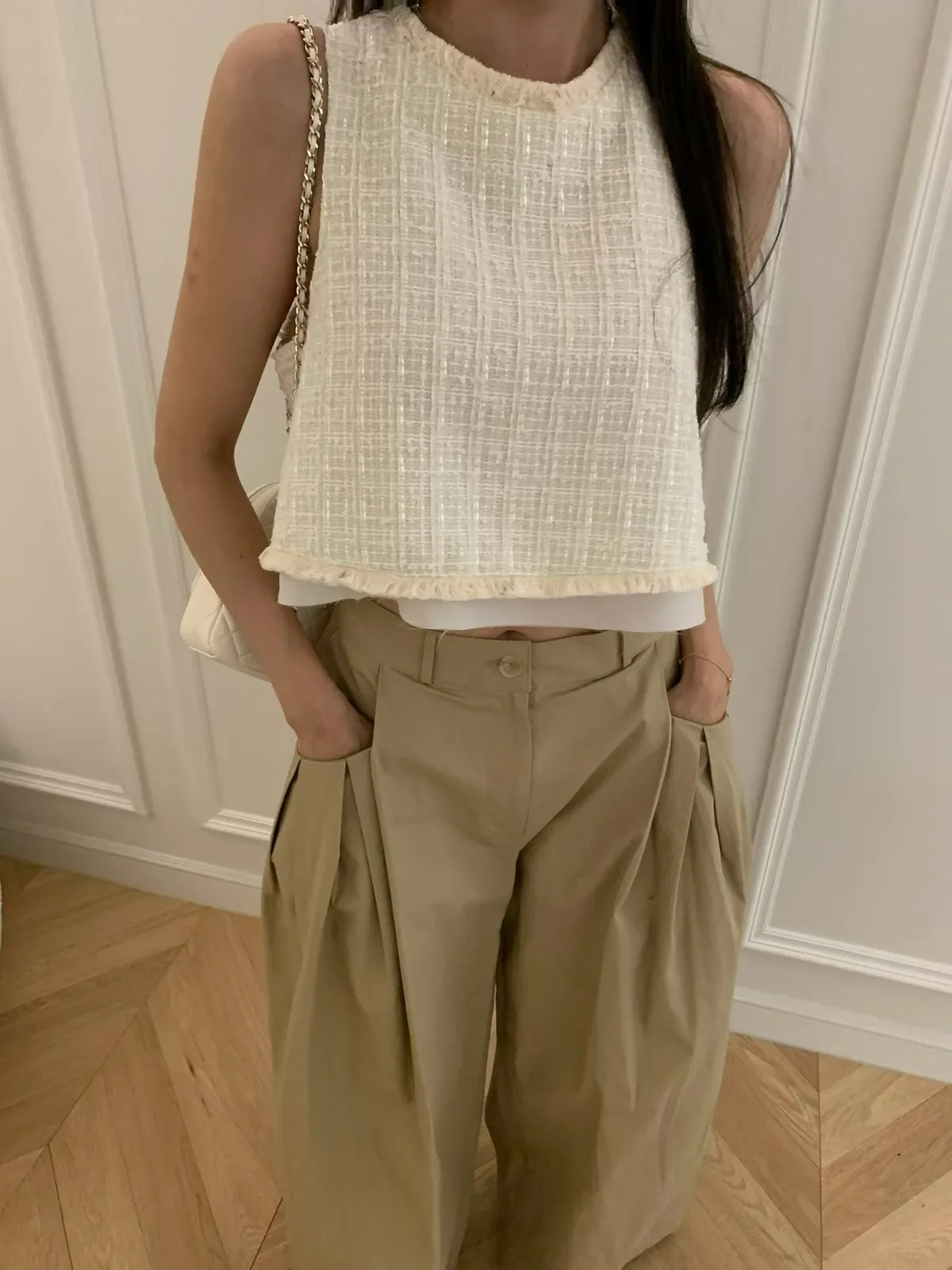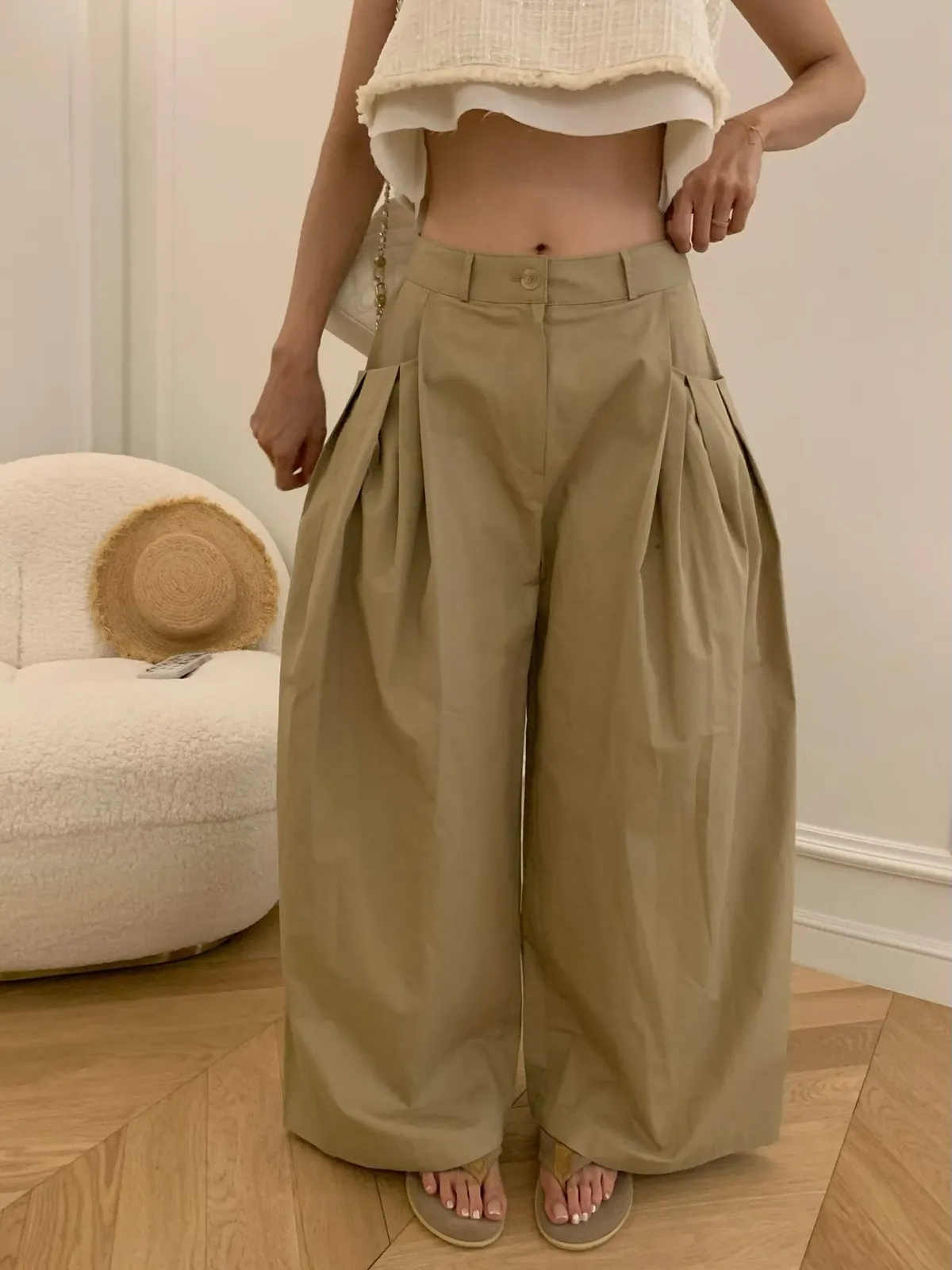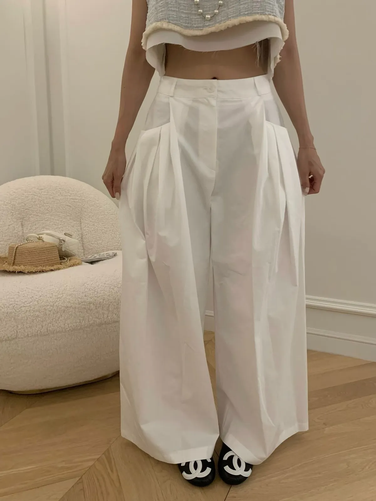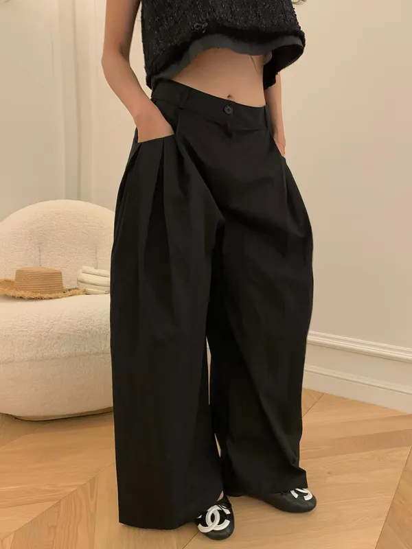 26EI08 多打褶中低腰密織線挺料長褲 4色 SM