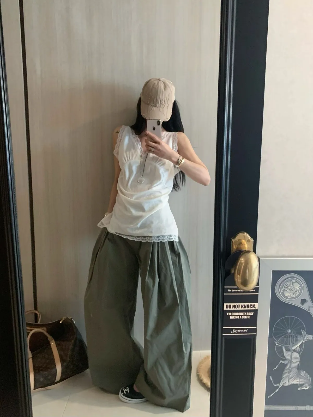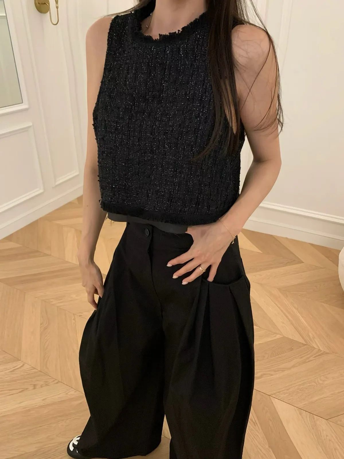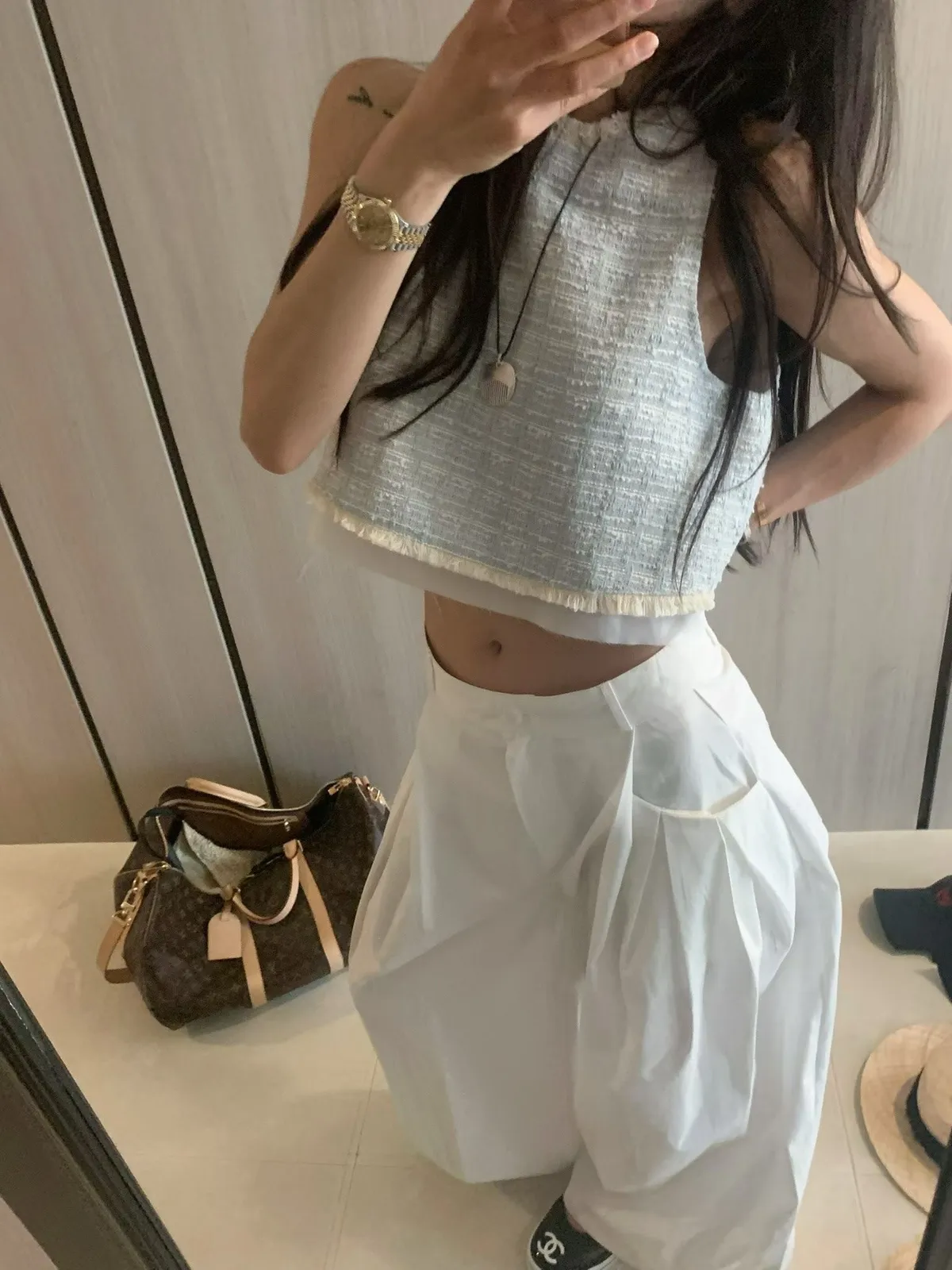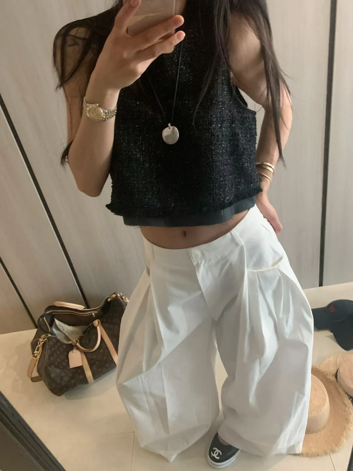 26EI08 多打褶中低腰密織線挺料長褲 4色 SM