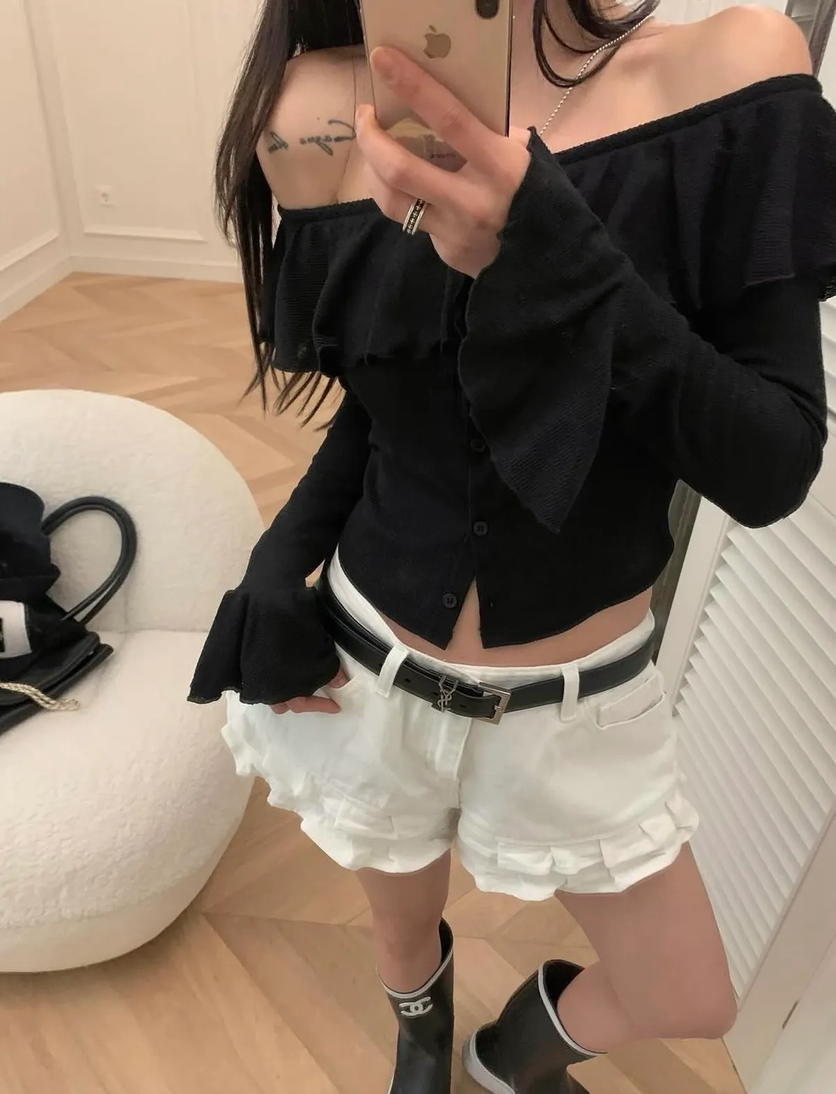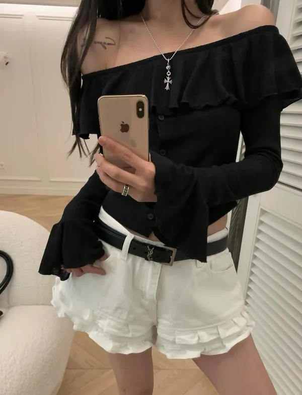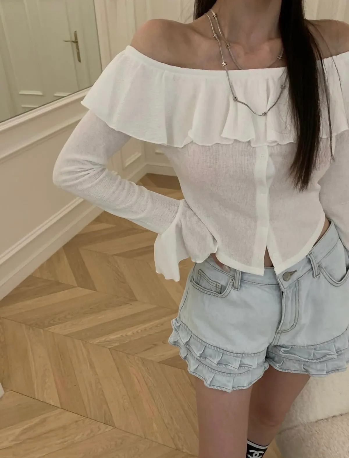 26EI17 平口荷葉排扣棉紗上衣 4色