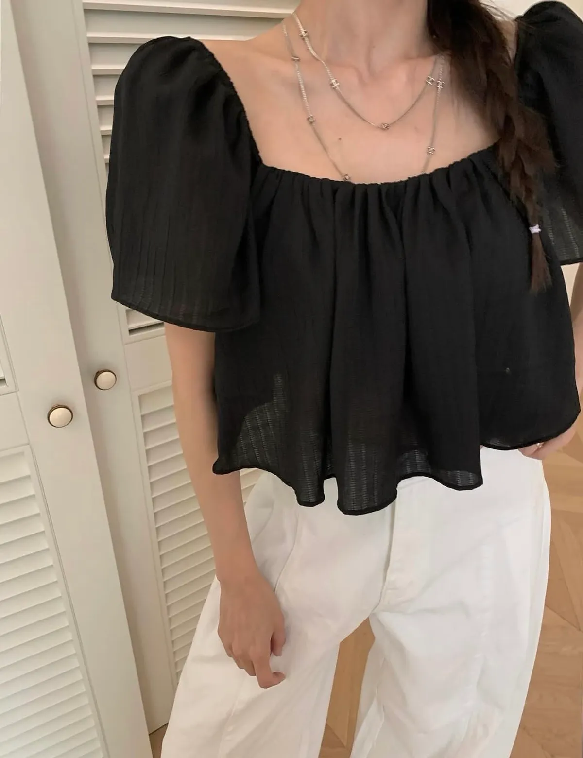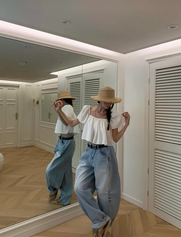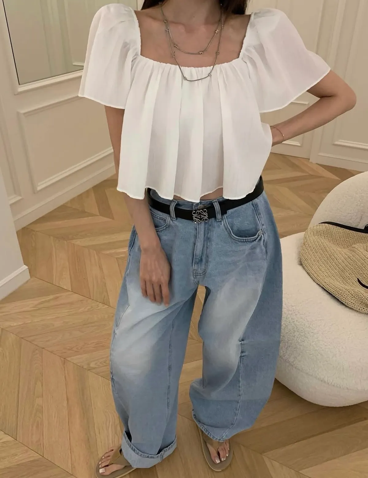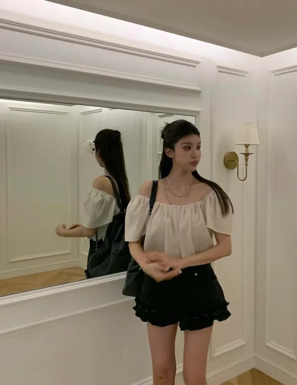 26EI19 大U領荷葉袖短版上衣 4色