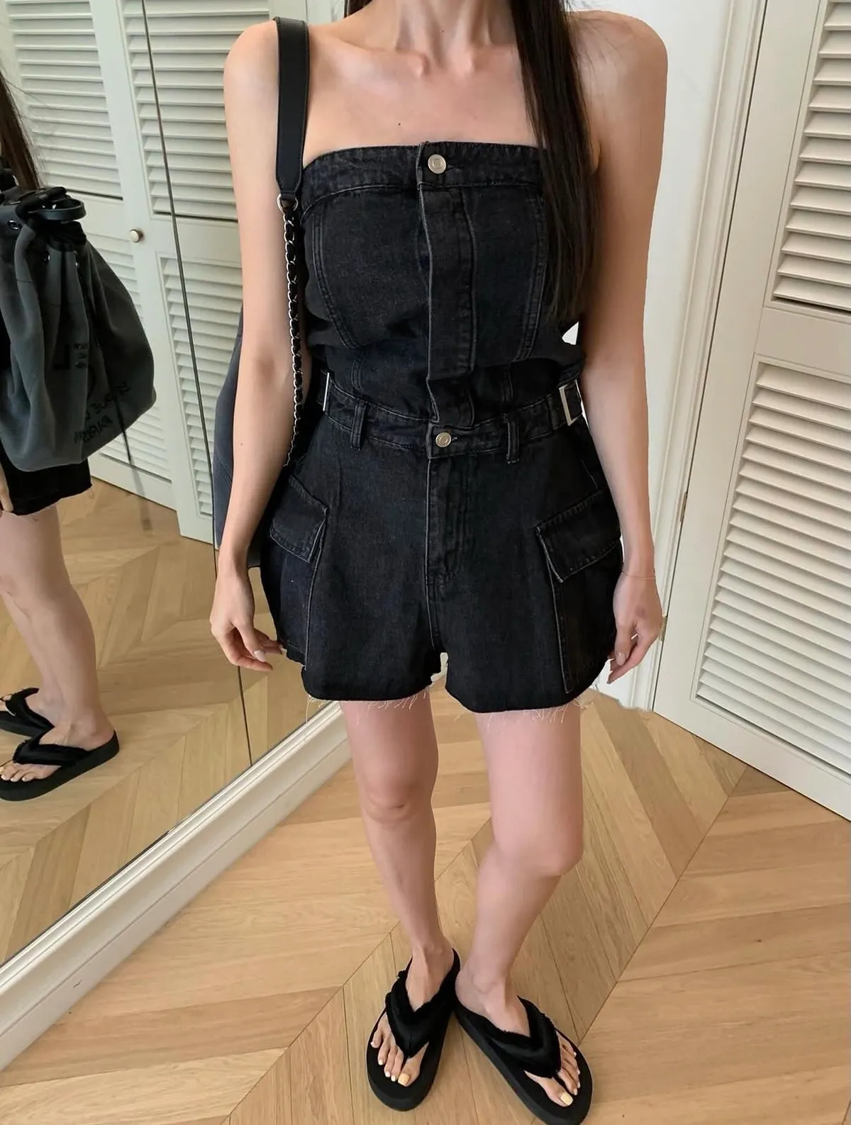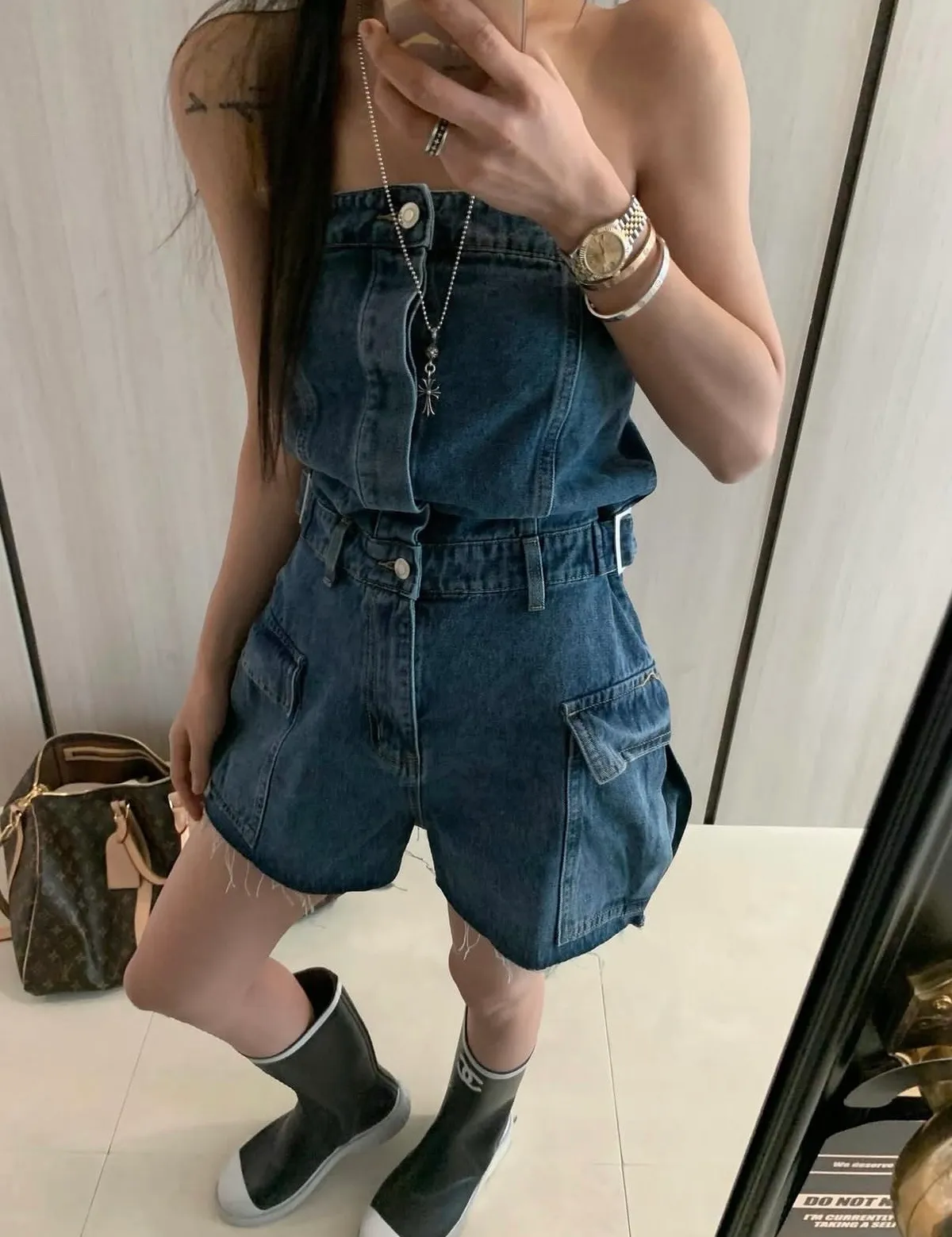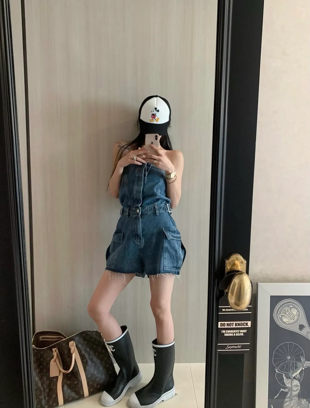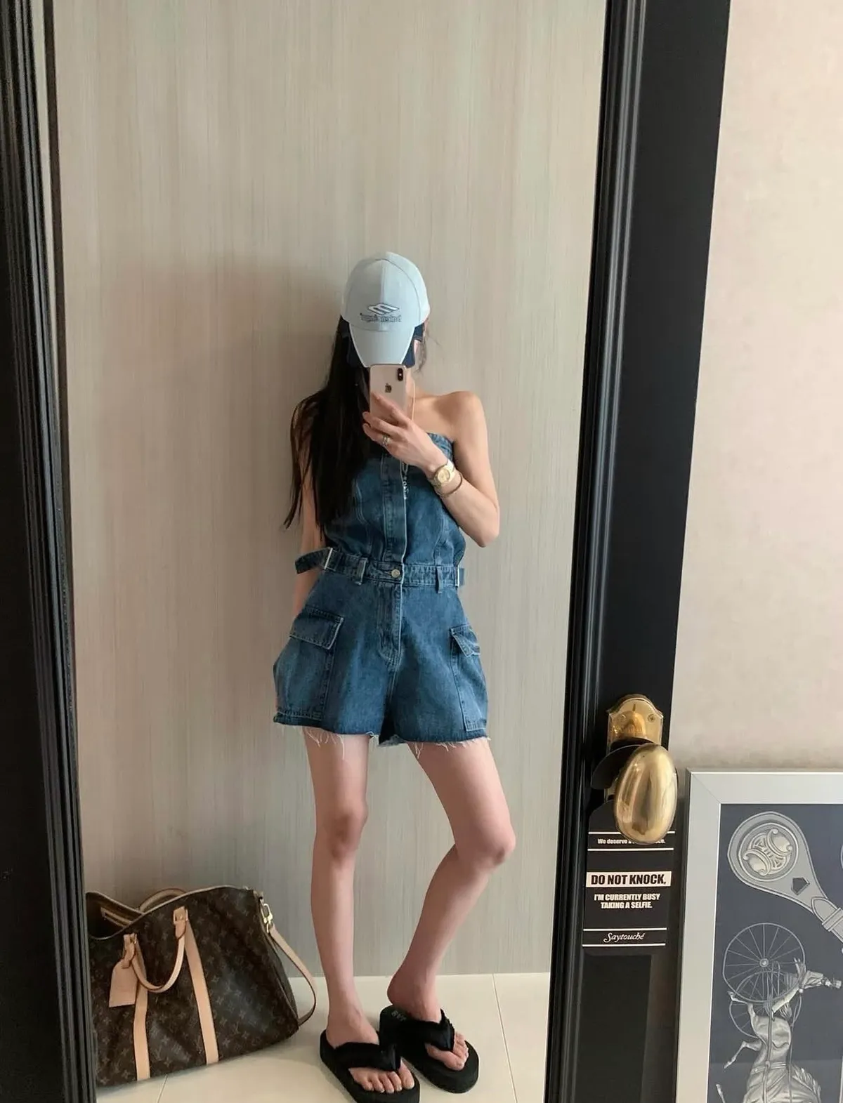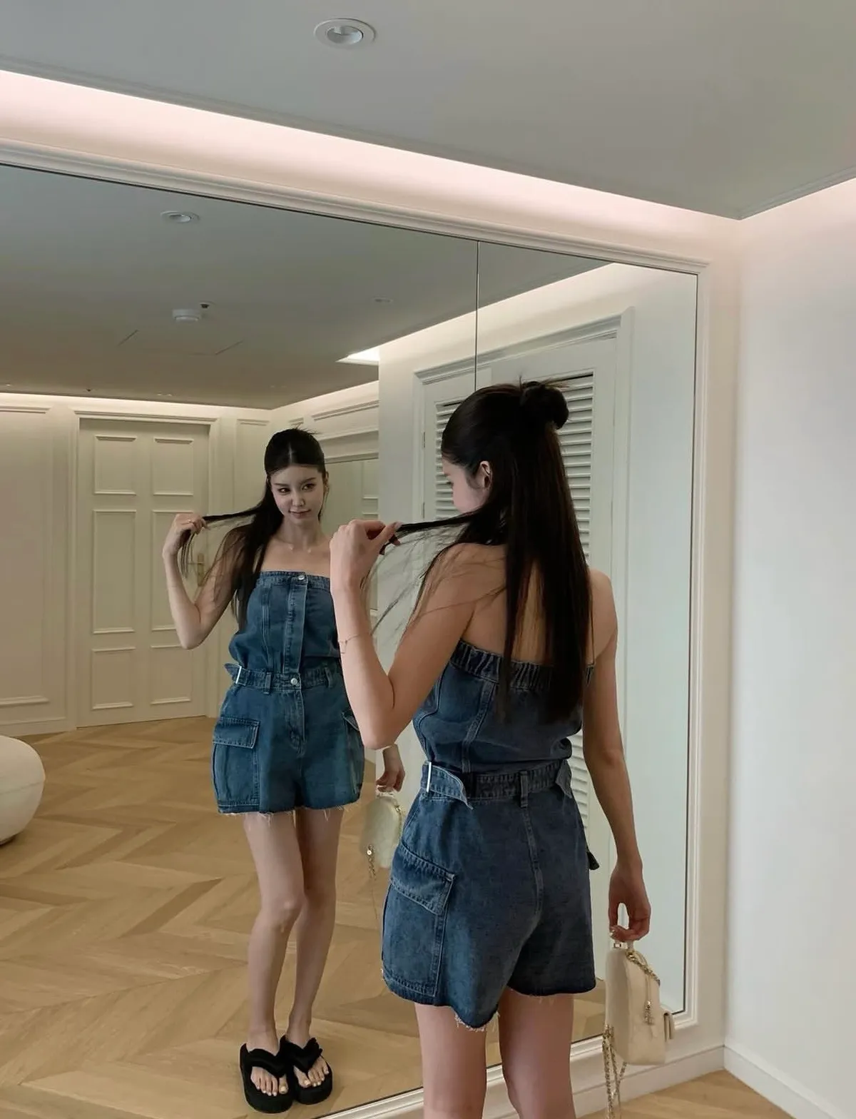 26EI23 平口牛仔連身收腰短褲 3色 SM