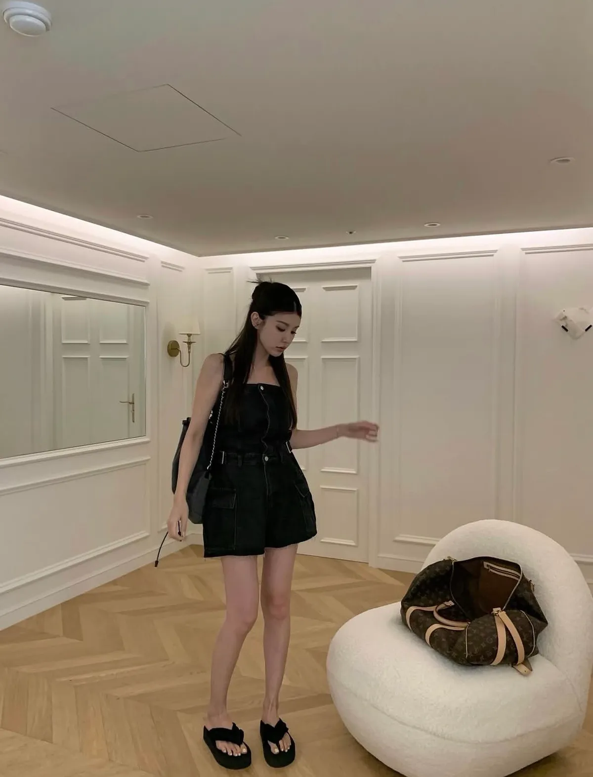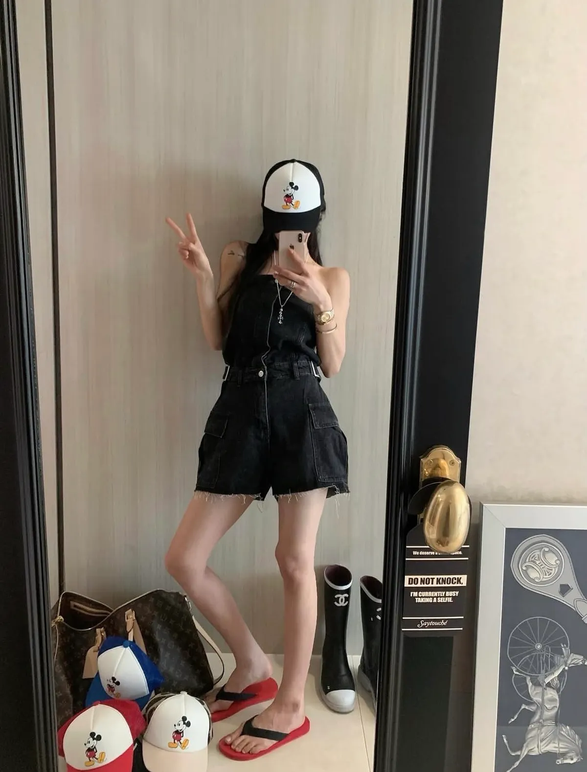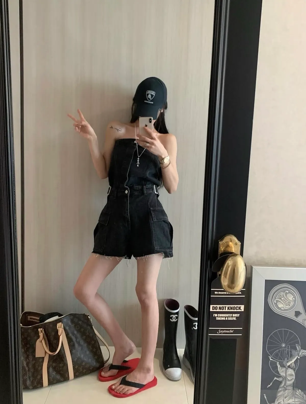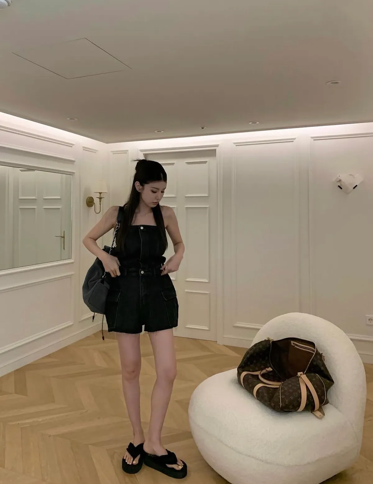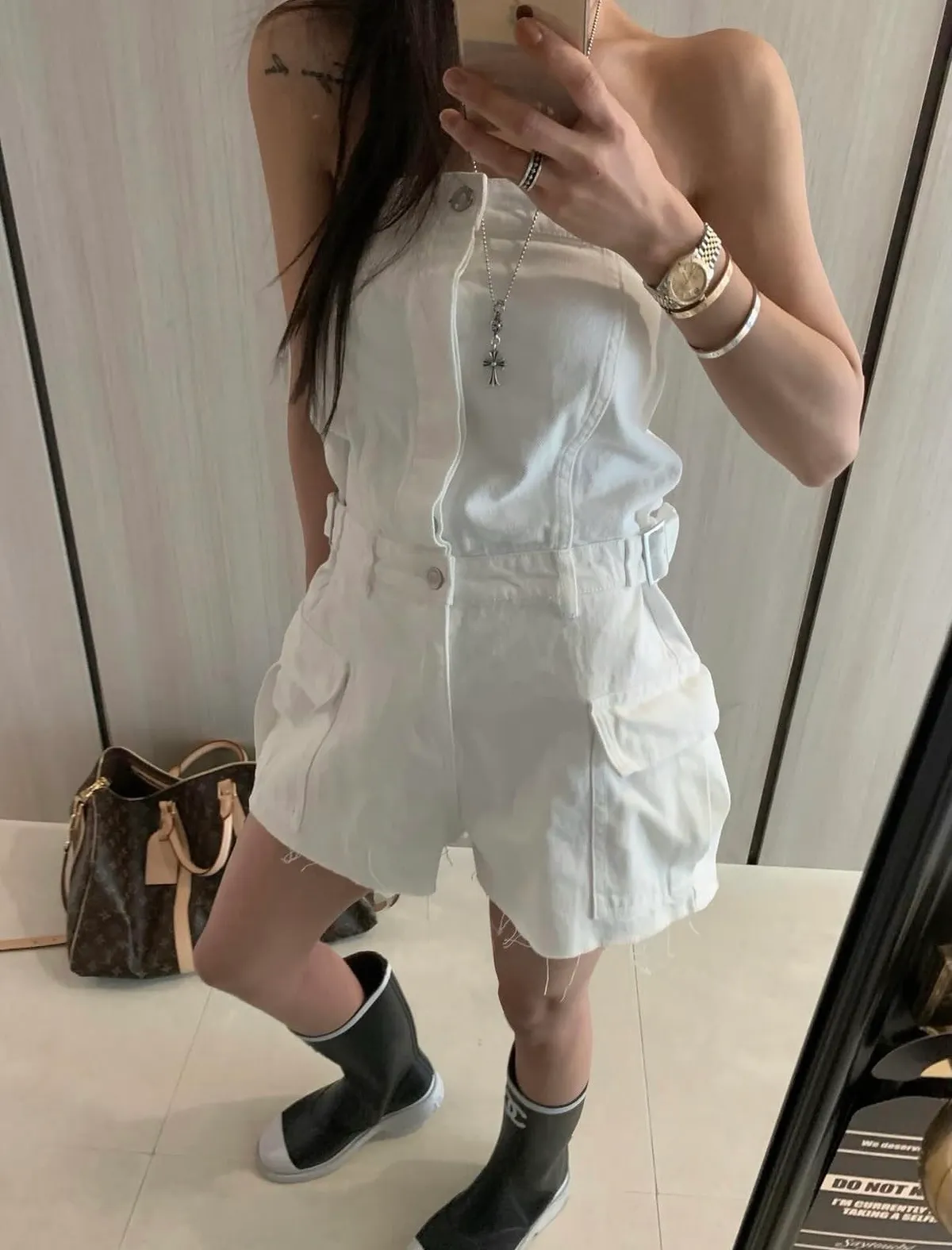 26EI23 平口牛仔連身收腰短褲 3色 SM