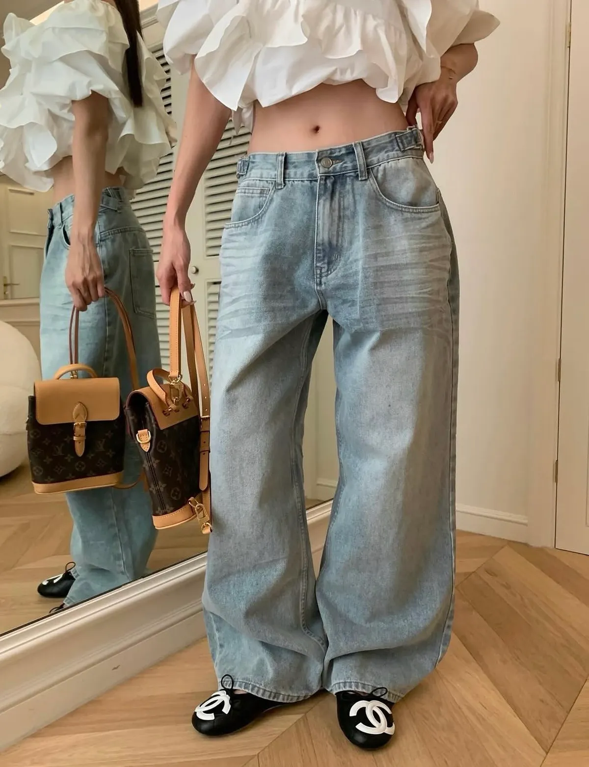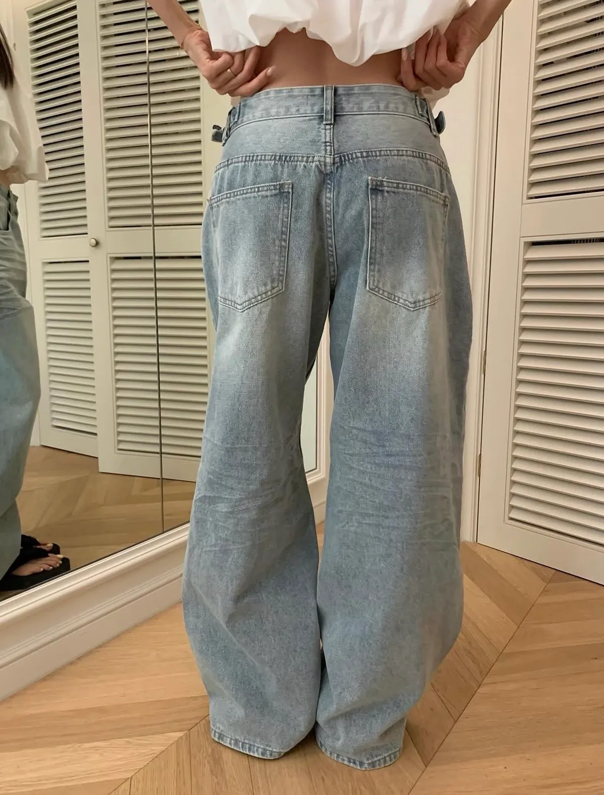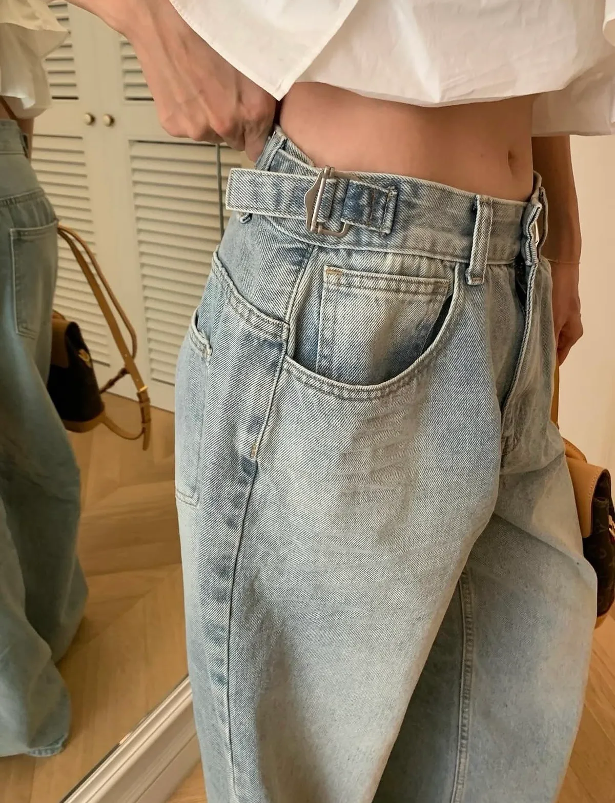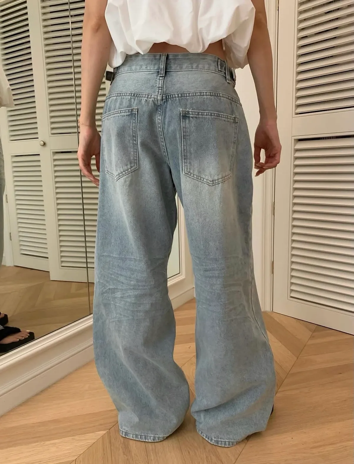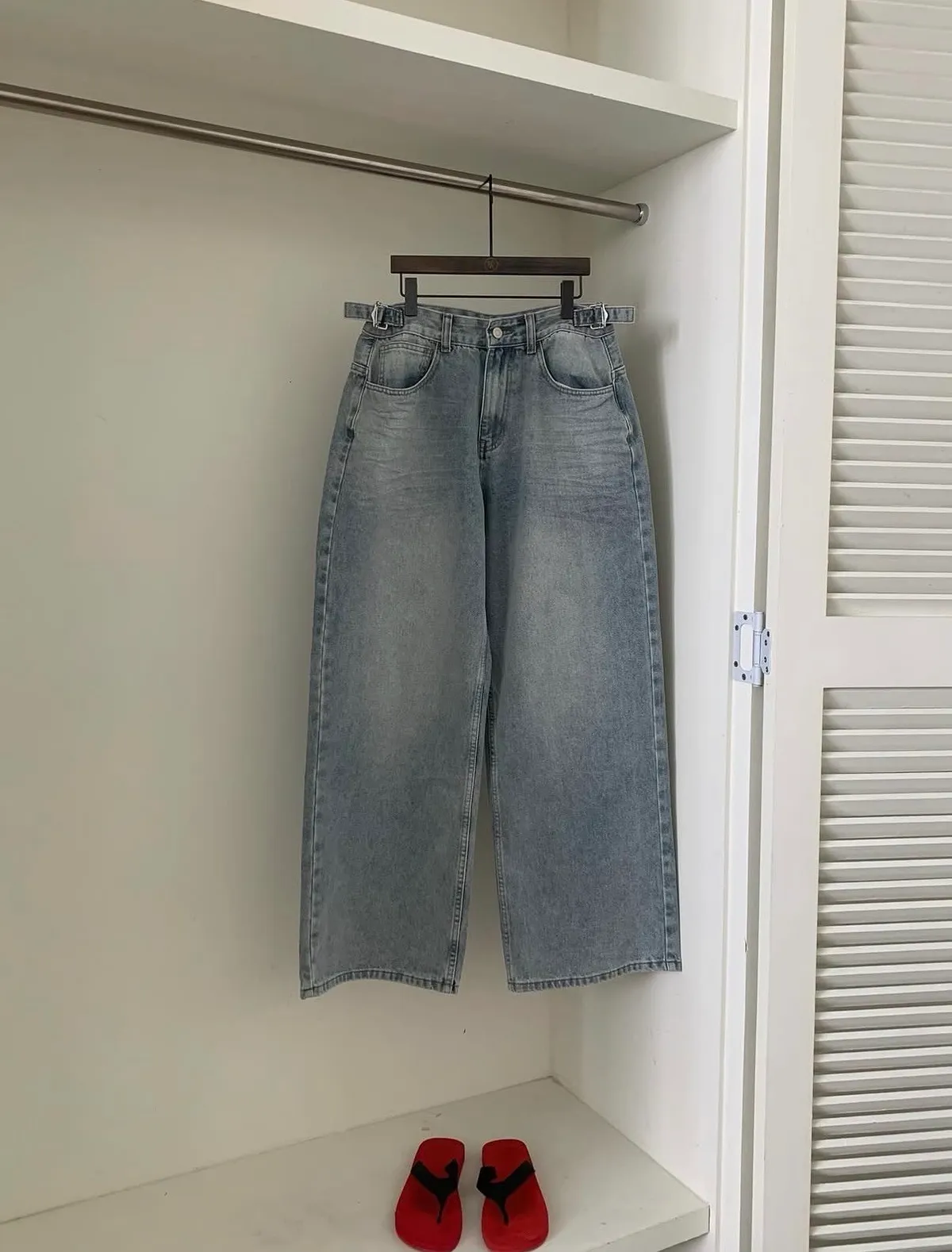 26EI29 腰條扣洗色牛仔長褲 SML