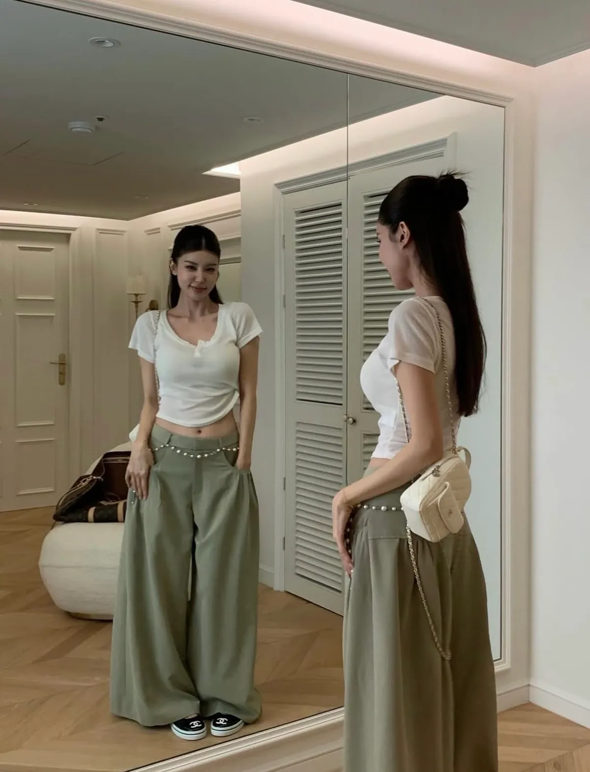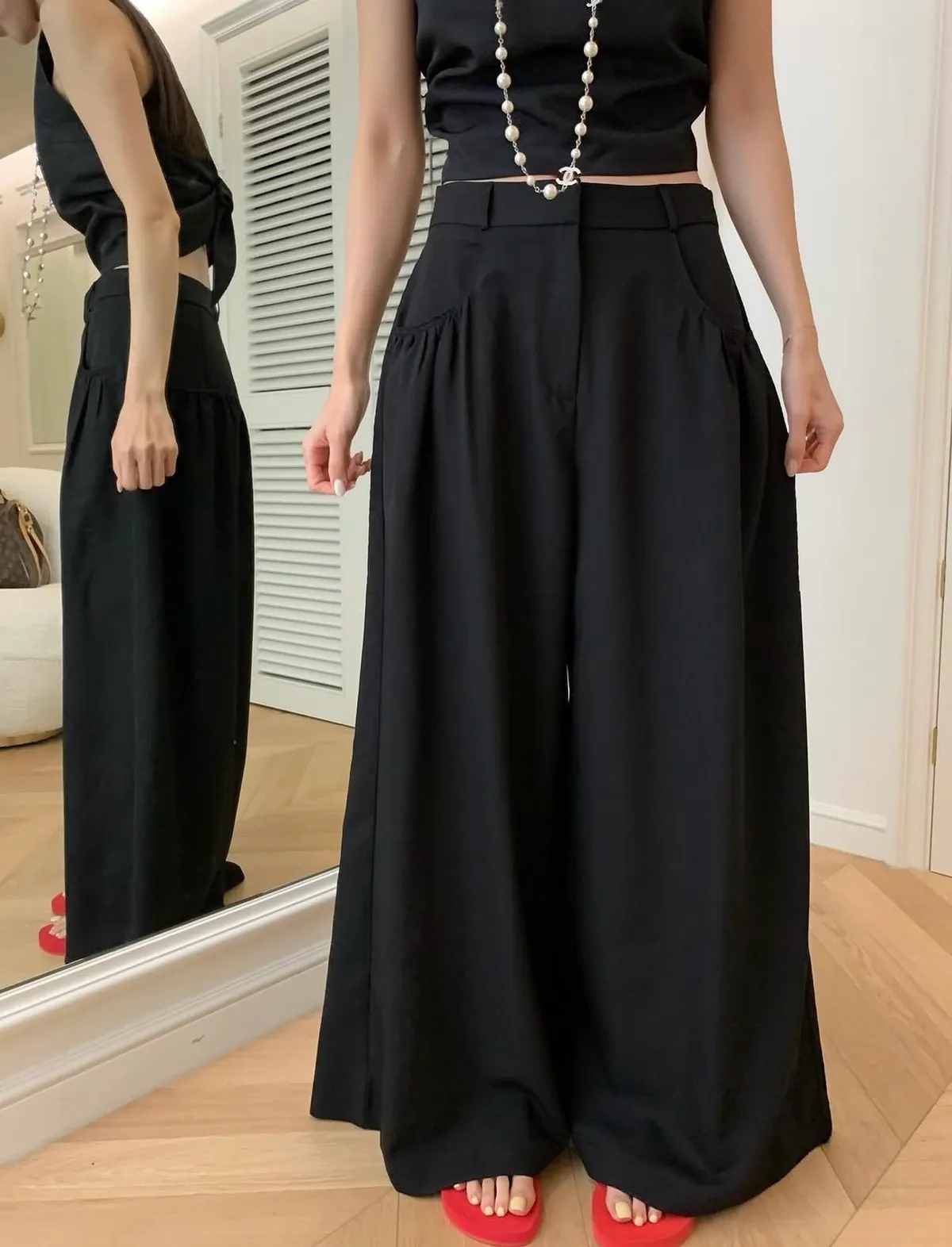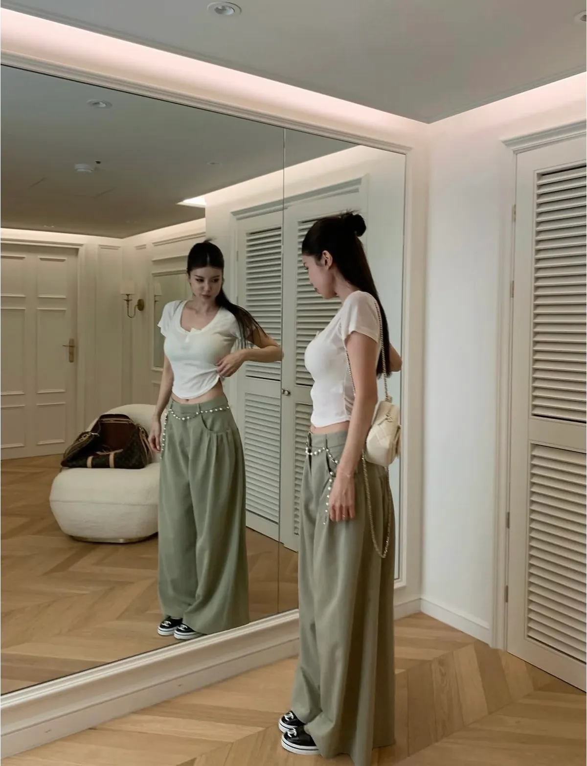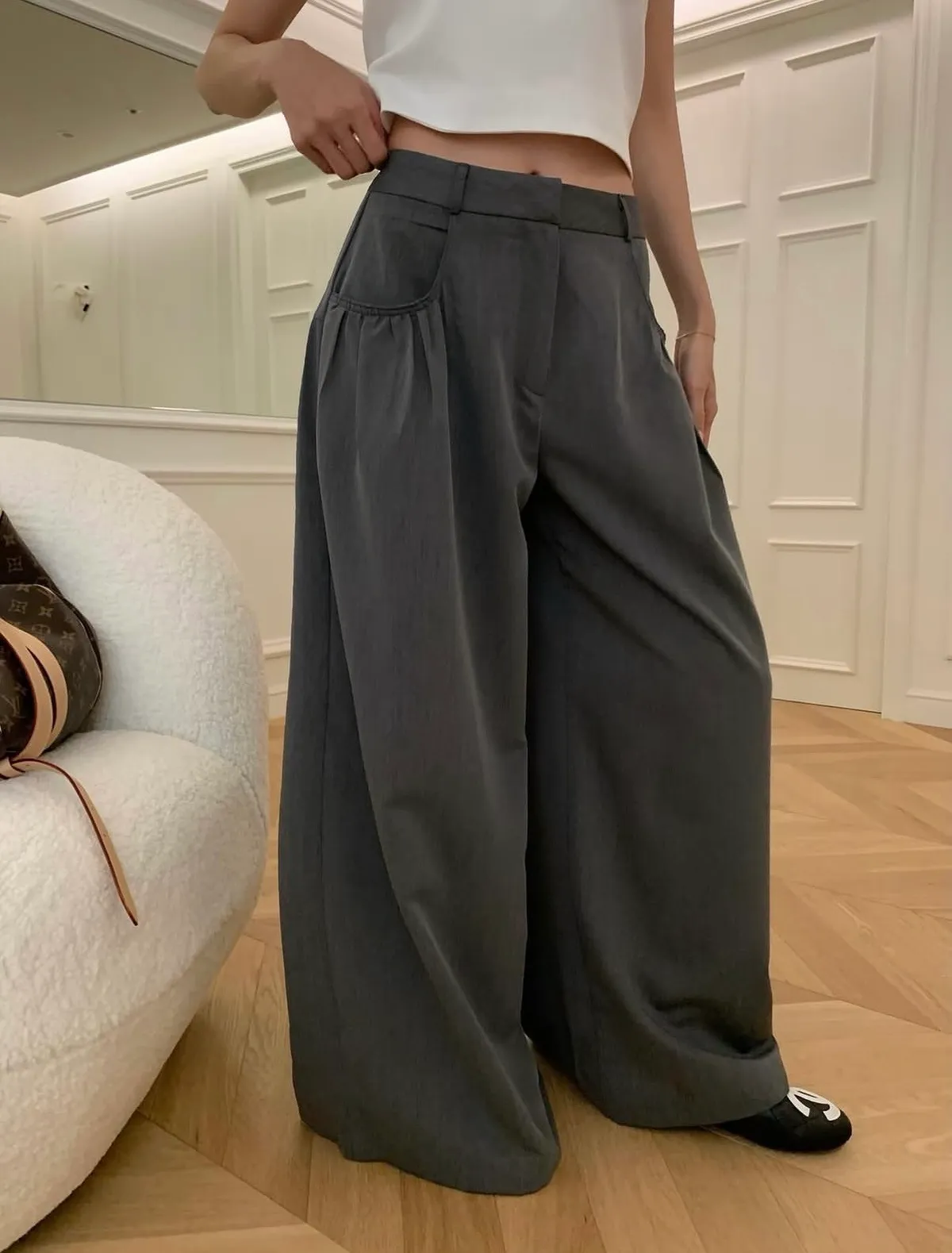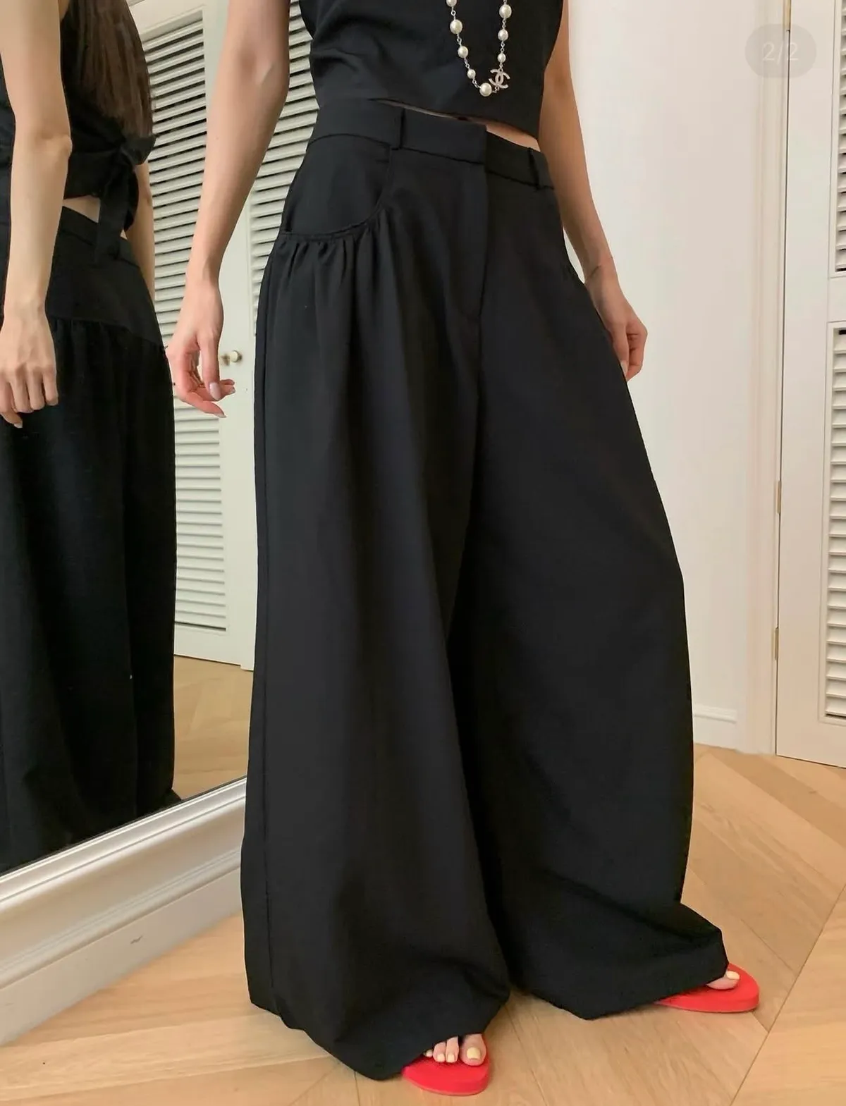 26EI32 垂墜打褶中低腰西裝長褲 3色 SM