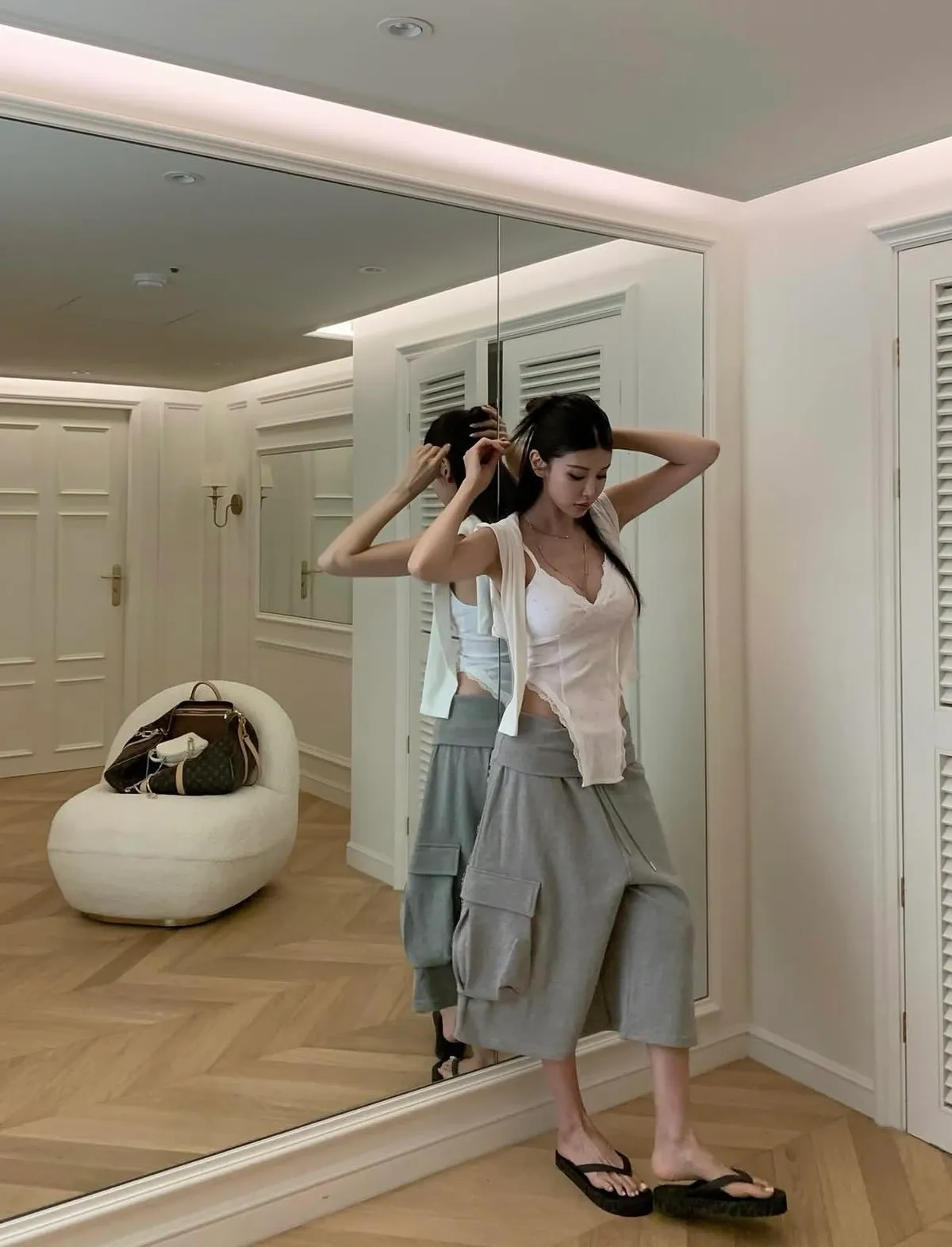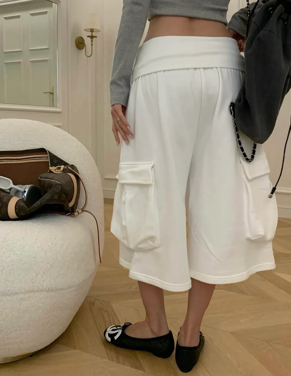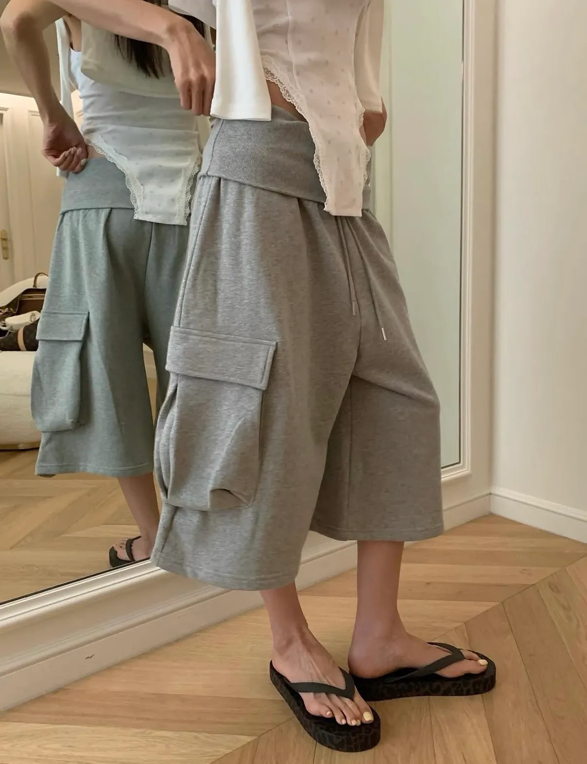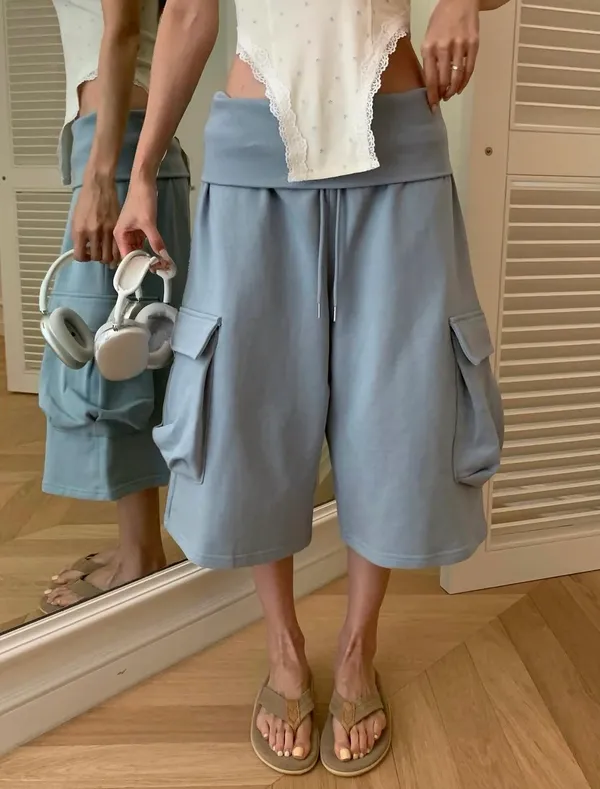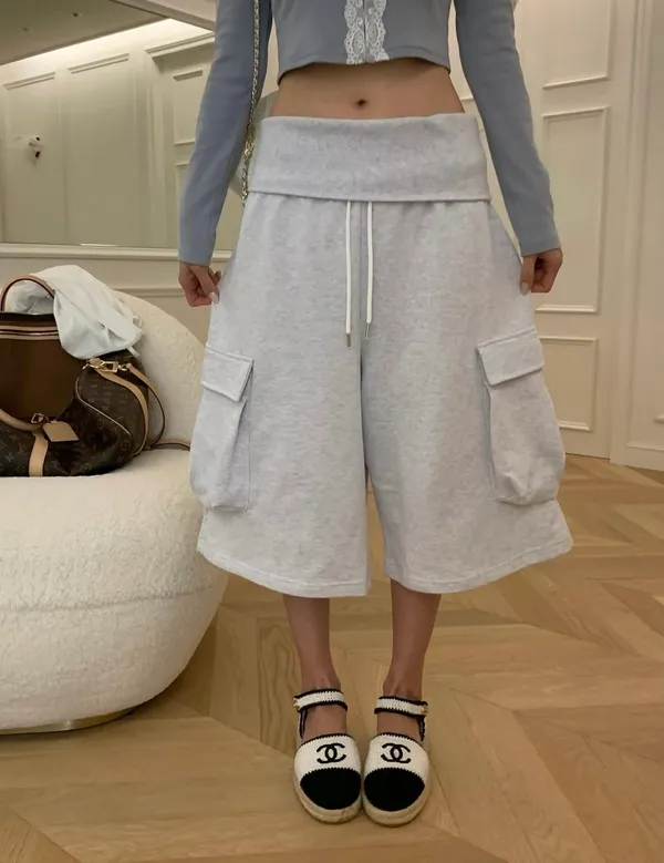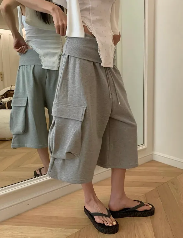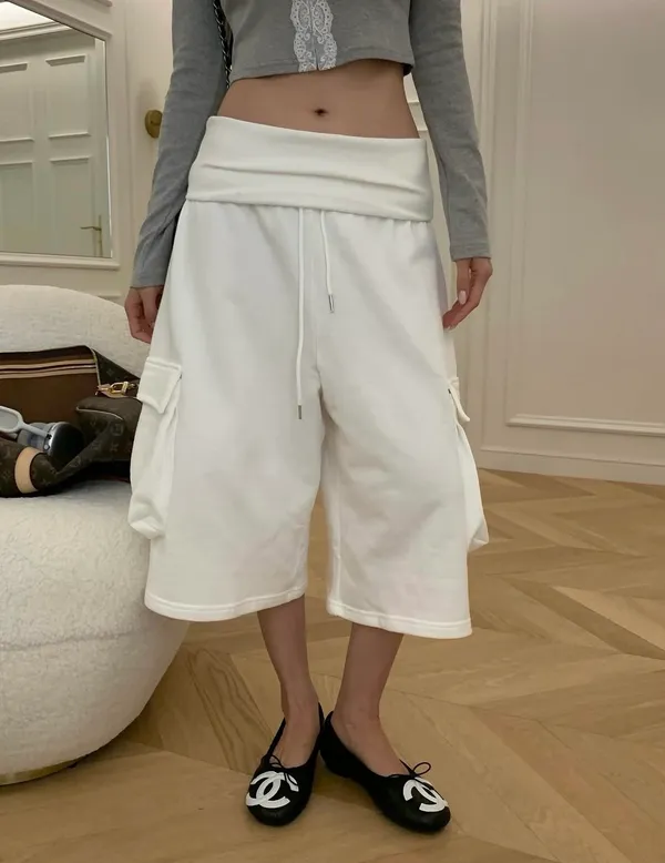 26EI36 翻腰頭工裝薄毛巾七分棉褲 6色