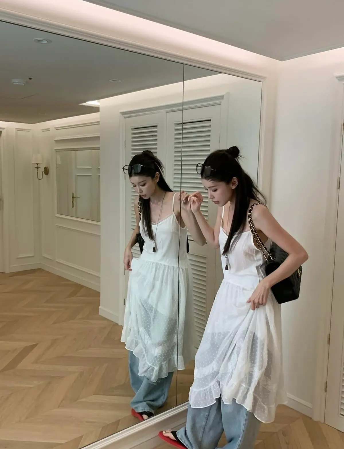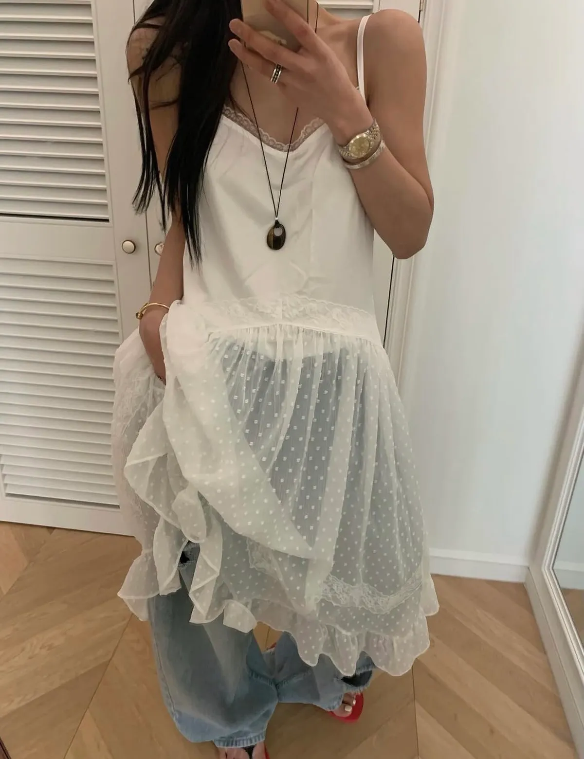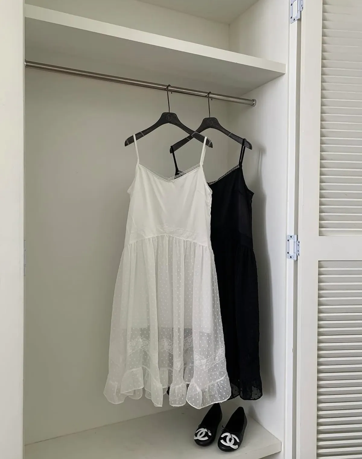 26EI45 球球點點細肩帶蕾絲洋裝 2色