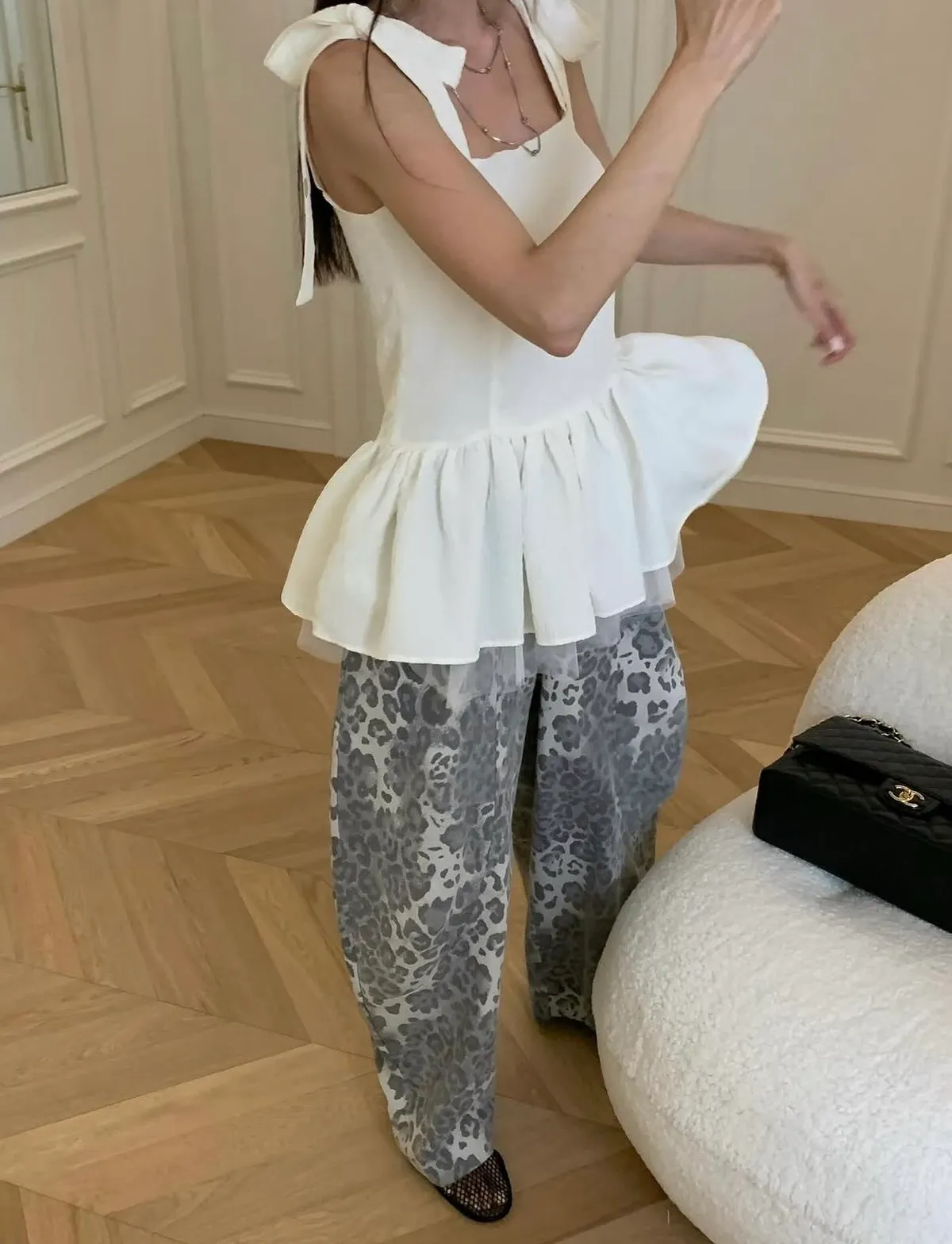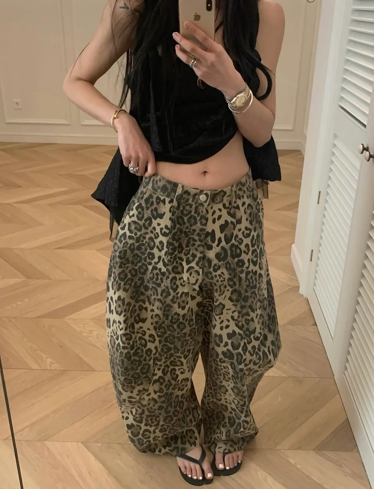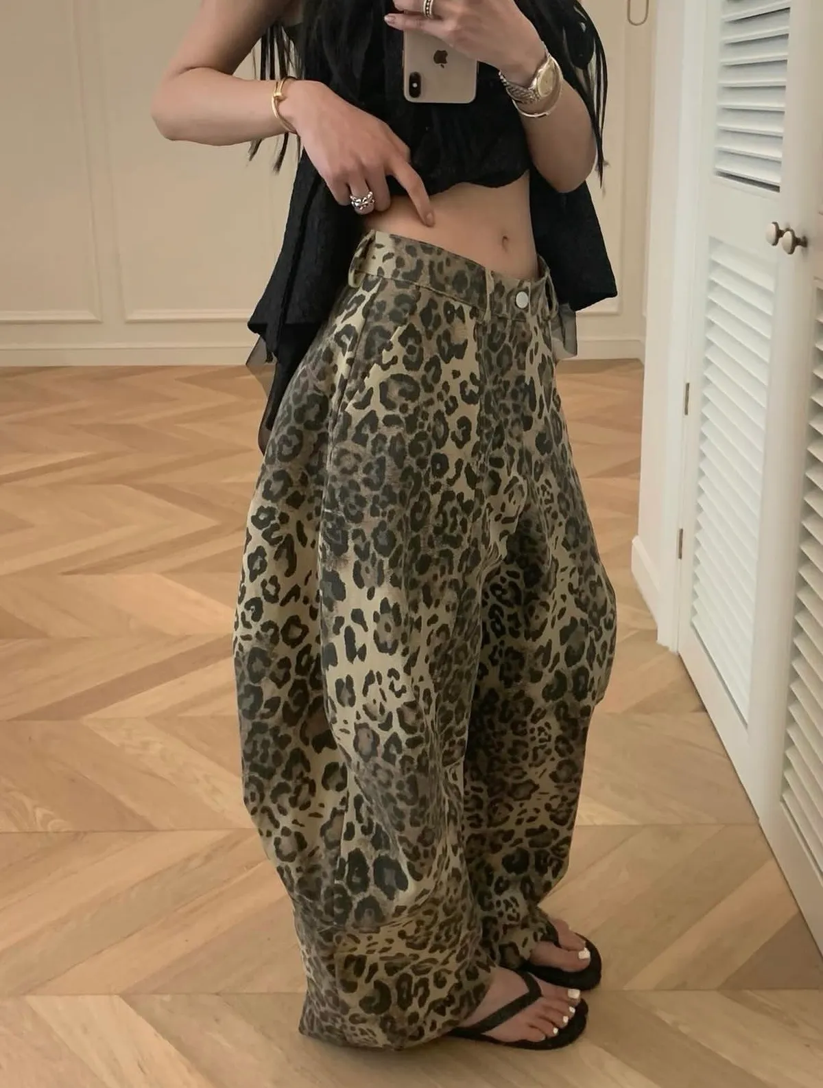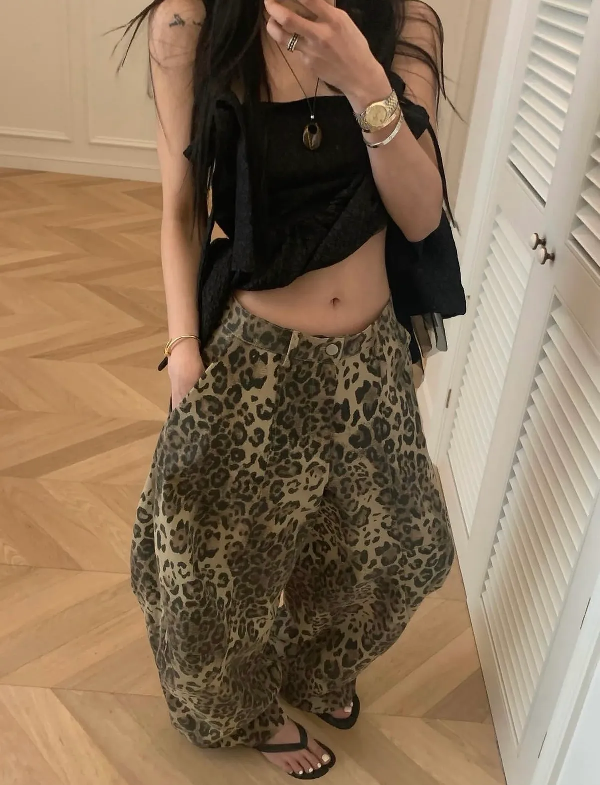 26EI48 中低腰豹紋薄斜紋彎彎長褲 2色 SM