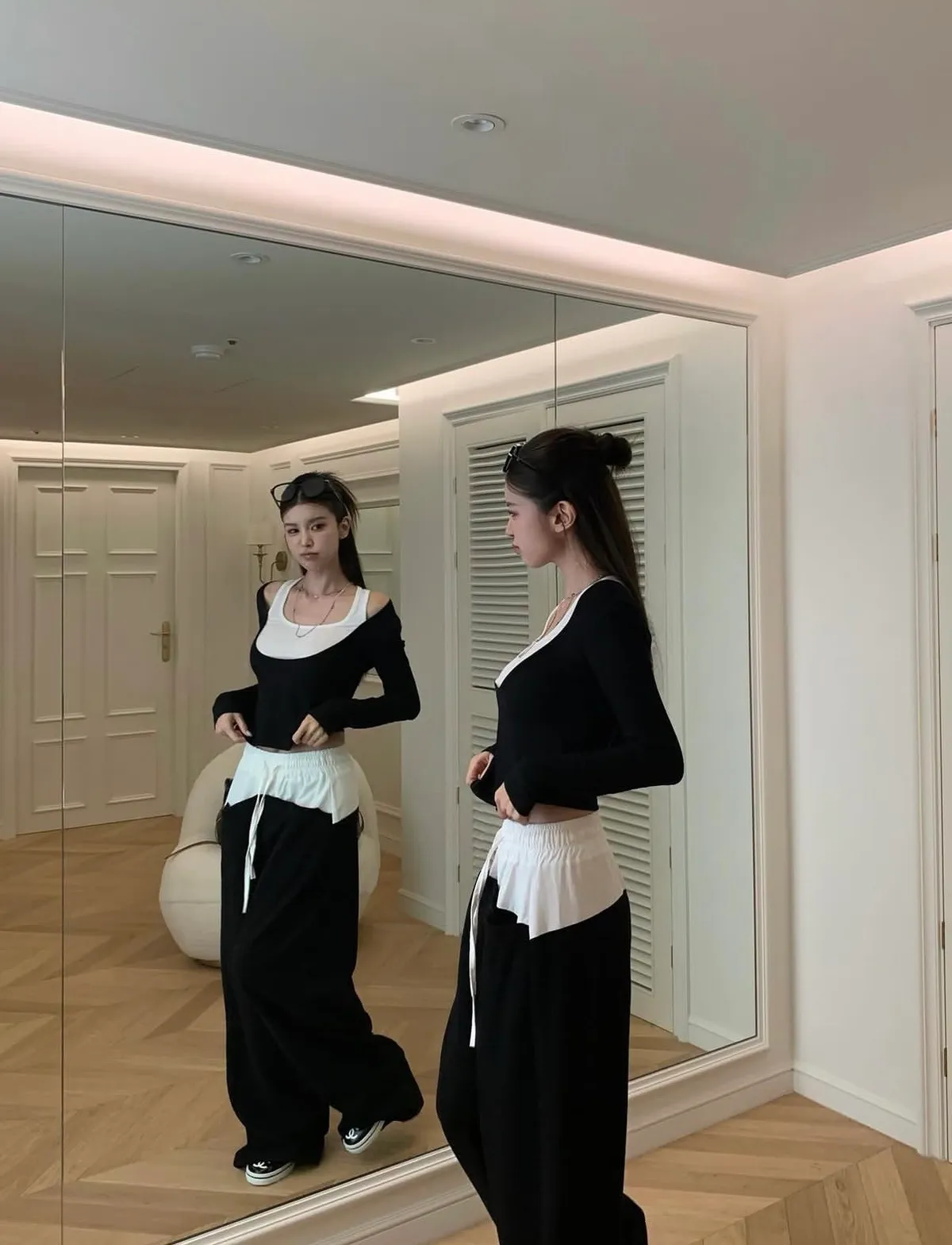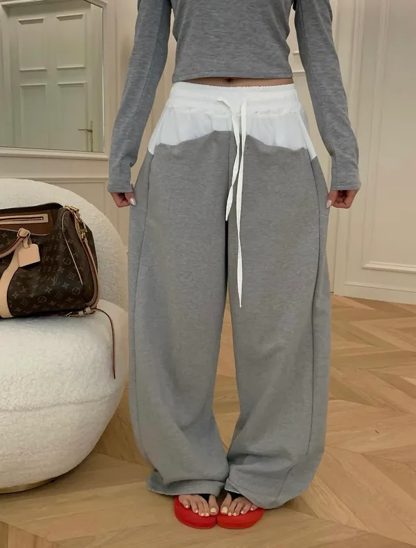 26EI53 拼接褲頭薄毛巾棉長褲 3色